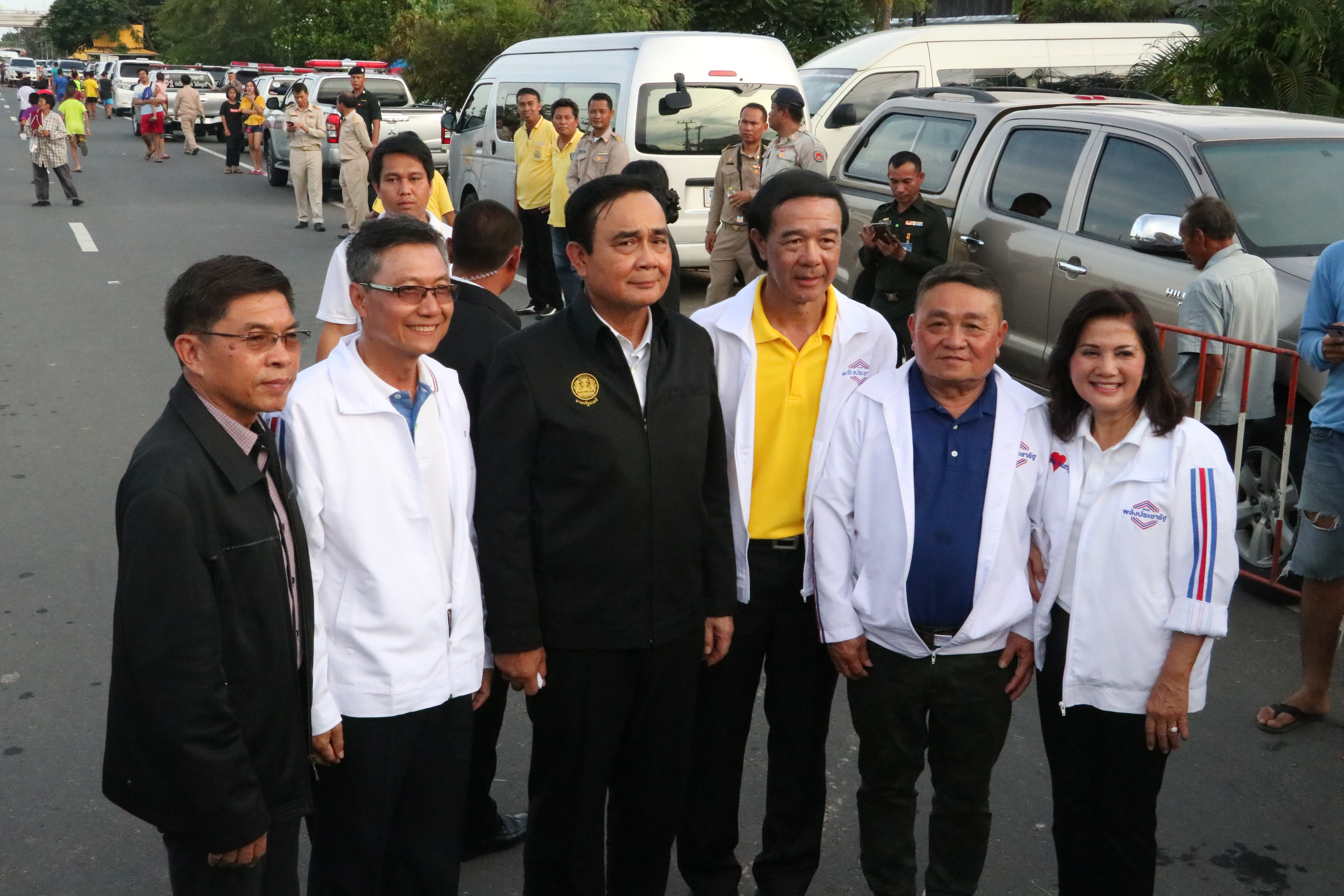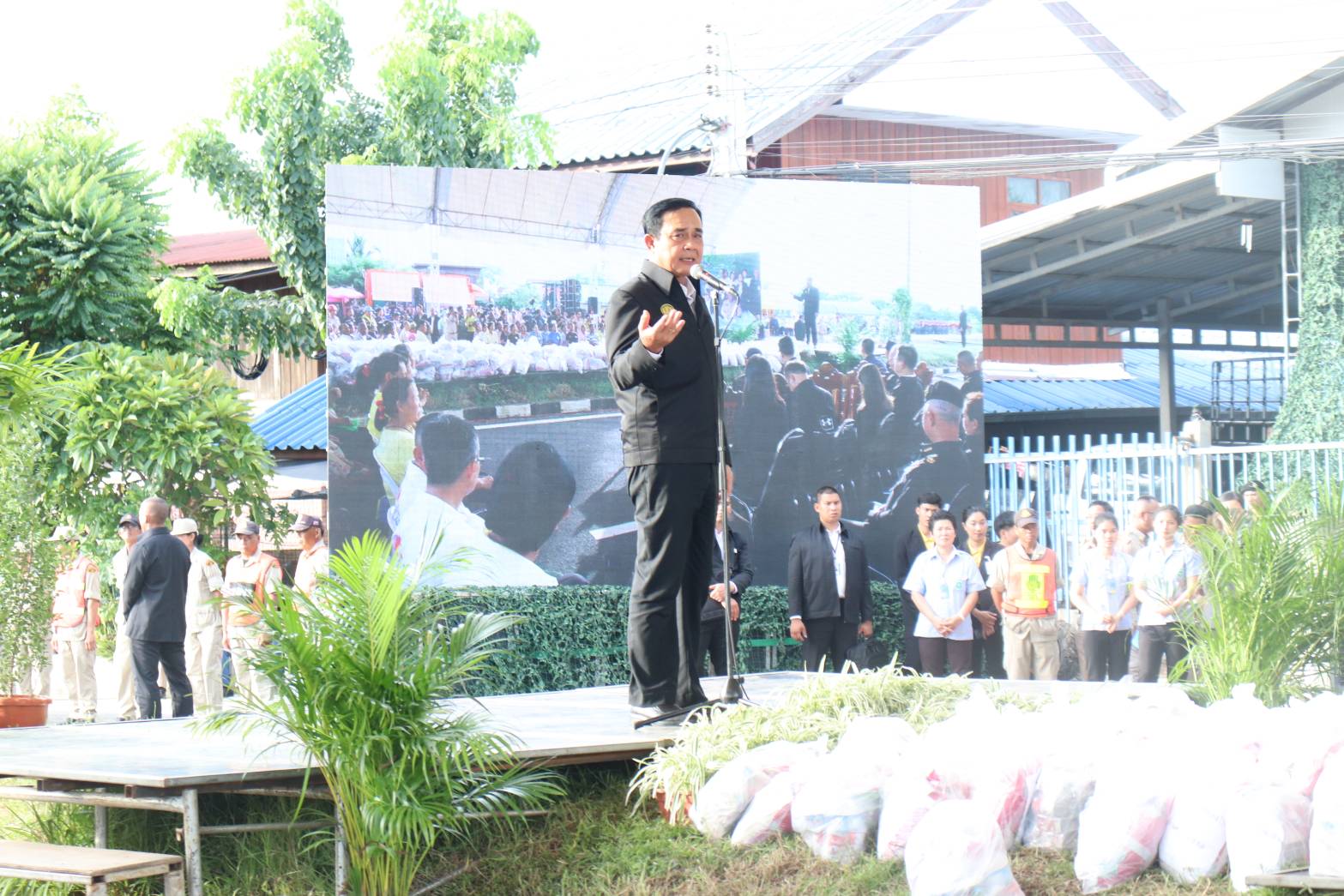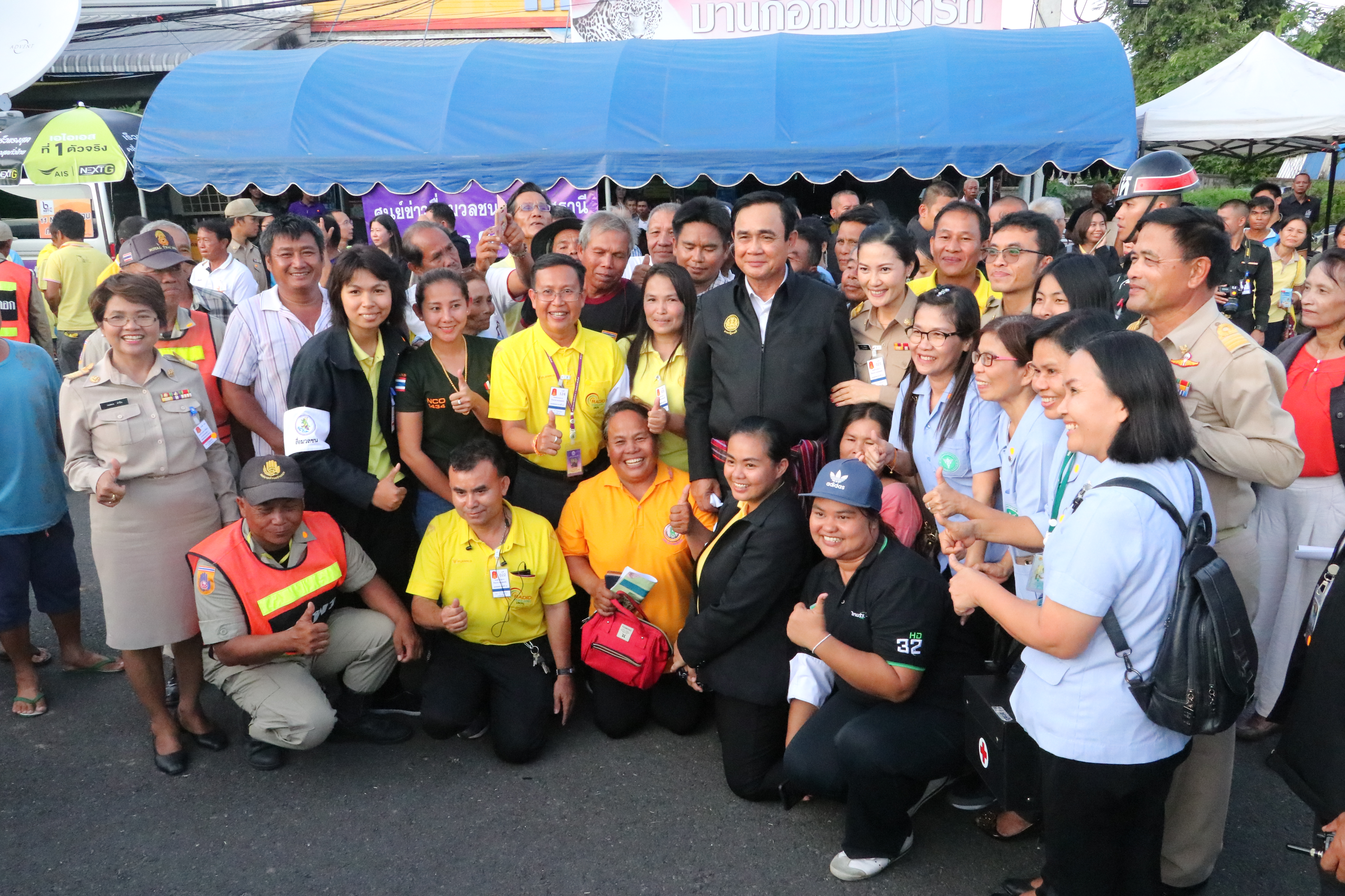 นายกรัฐมนตรี ได้กล่าวทักท้ายประชาชน โดยรู้ว่าทุกคนลำบาก ทุกคนเดือดร้อน ก็เป็นห่วงทุกจังหวัด ที่ได้รับผลกระทบจากพายุ ส่วนการซ่อมแซมต้องรอให้น้ำลด รัฐบาลมีความห่วงใย ซึ่งพระบาทสมเด็จพระเจ้าอยู่หัว และสถาบันทุกพระองค์มีความห่วงใย และมีพระมหากรุณาธิคุณพระราชทานสิ่งของช่วยเหลือ พร้อมกันนี้ ทุกอย่างรัฐบาลดูแลให้ตามขั้นตอน กติกา และยืนยันว่า รัฐบาลจะใช้เม็ดเงินในการดูแลที่เกิดประโยชน์สูงสุด