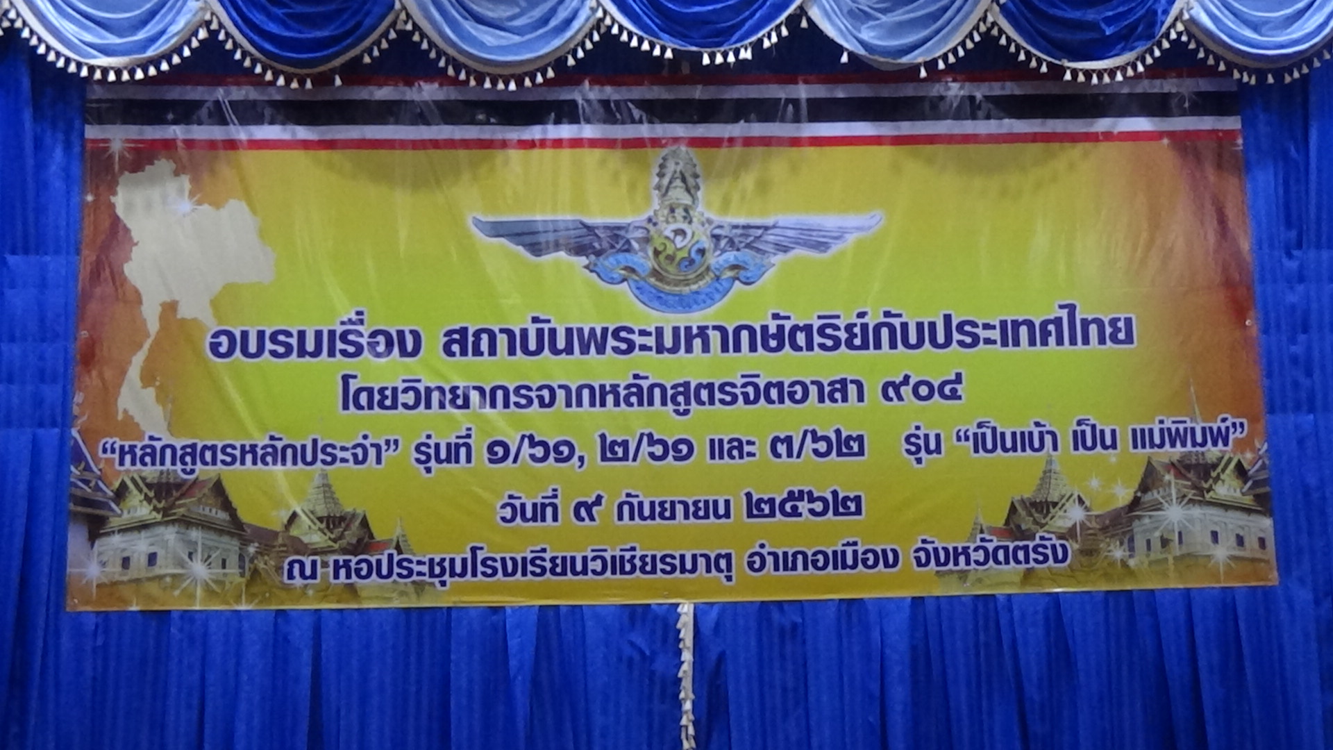 ที่หอประชุมโรงเรียนวิเชียรมาตุ อ.เมืองตรัง จังหวัดตรัง นางณิทฐา แสวงทอง รองผู้ว่าราชการจังหวัดตรัง เป็นประธานในพิธีเปิดโครงการ “ขยายผลเผยแพร่ความรู้ตามโครงการจิตอาสาพระราชทาน 904 วปร” ให้กับกำลังพล ประชาชน และนักเรียน จำนวน 250 คน โครงการ “ขยายผลเผยแพร่ความรู้ตามโครงการจิตอาสาพระราชทาน 904 วปร” ที่จัดขึ้นในครั้งนี้เพื่อขยายผลเผยแพร่ความรู้ตามโครงการจิตอาสาพระราชทาน 904 วปร. ให้กับกำลังพลกองบัญชาการตำรวจตระเวนชายแดน ประชาชน และนักเรียน เพื่อเป็นการปลูกจิตสำนึกในการเป็นจิตอาสาที่ดีให้กับกำลังพล กองบัญชาการตำรวจตระเวนชายแดน และนักเรียนในพื้นที่ให้ร่วมกันดำเนินการให้เป็นไปตามพระราโชบาย