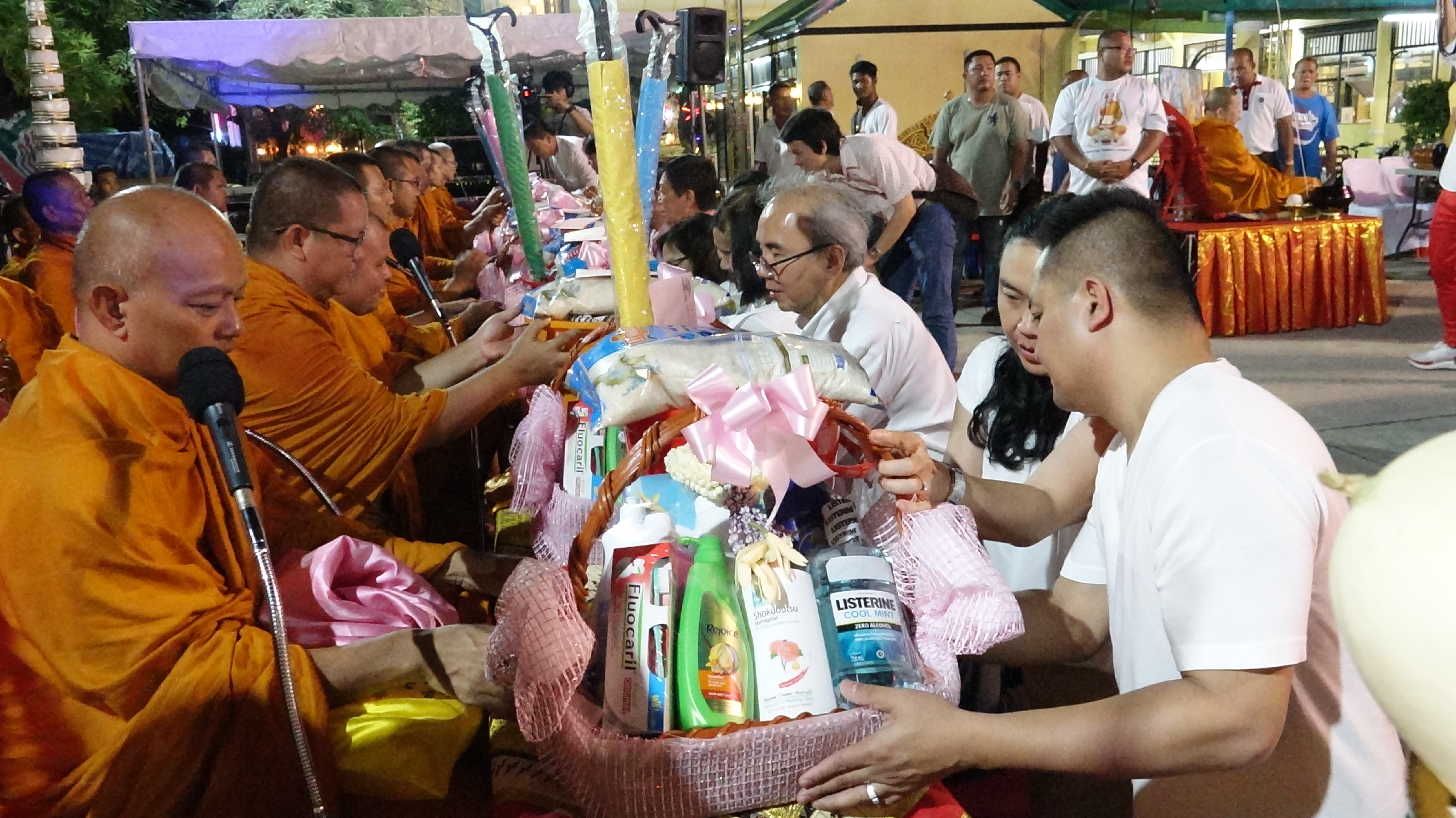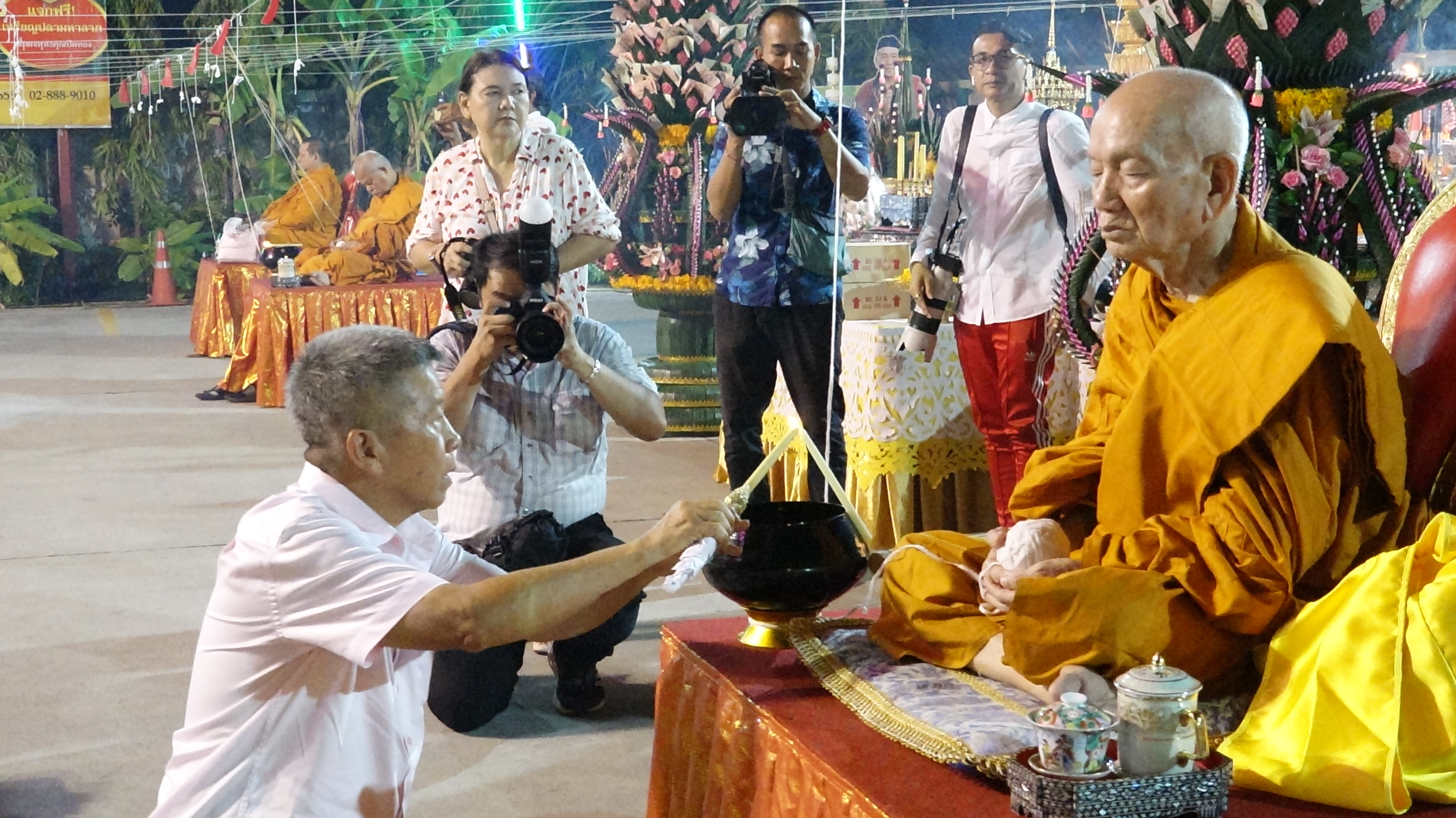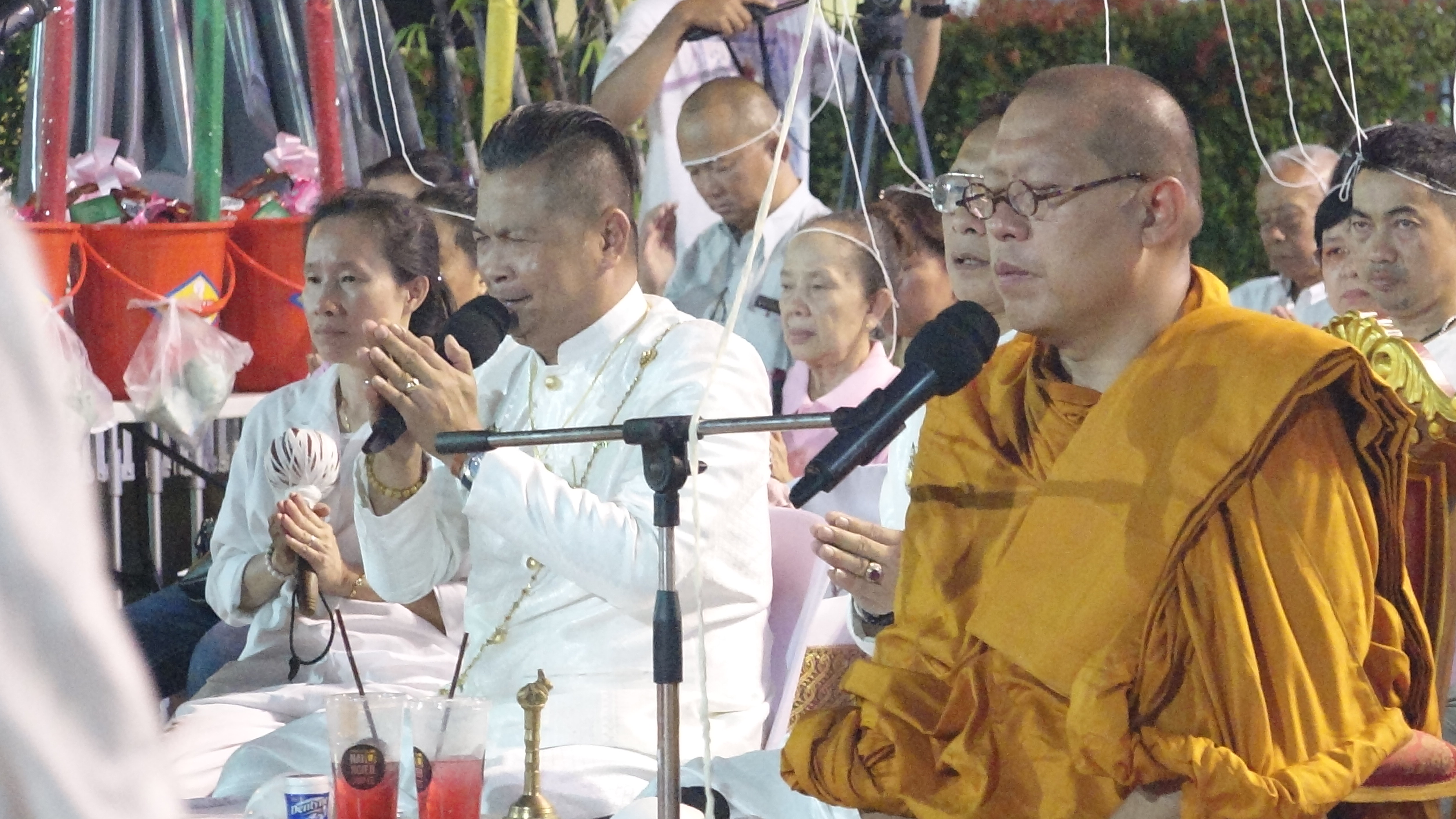 พระคณาจารย์ 4 รูป บริกรรมนั่งอธิฐานจิต คณะสงฆ์วัดไผ่ล้อมเจริญพระพุทธมนต์บทพระปริตรและบทของดาวนพเคราะห์ทั้ง 9 หลังจากสวดบูชาเทวดานพเคราะห์จนครบทั้ง 9 องค์แล้ว “นายเงี๊ยบ” ได้นำญาติโยมศรัทธาสาธุชนร่วมถวายมหาสังฆทานแด่พระสงฆ์ พระสงฆ์ให้พร กรวดน้ำ จากนั้นพระครูปลัดสิทธิวัฒน์ มอบมงคลวัตถุที่ระลึก “เหรียญปลามหาลาภ” แก่ผู้เข้าร่วมพิธีทุกคนอีกด้วย