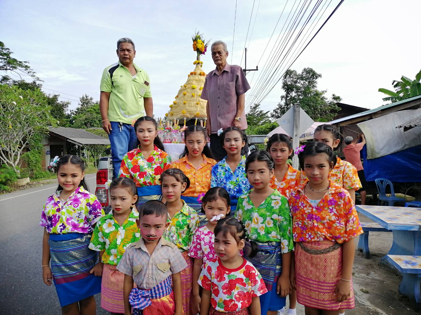 เด็กเล็กและผู้ใหญ่ร่วมกันรำกลองยาวเข้าวัด เพื่อร่วมทำบุญให้แก่บรรพบุรุษผู้ล่วงลับเนื่องในวันสารทเดือนสิบ (วันรับตายายหรือวันทำบุญเล็ก) เนื่องจากมีความเชื่อว่าบรรพบุรุษผู้ล่วงลับตามความเชื่อที่ว่าจะกลับมาเยี่ยมลูกหลานในช่วงวันสารทเดือนสิบของทุกปี