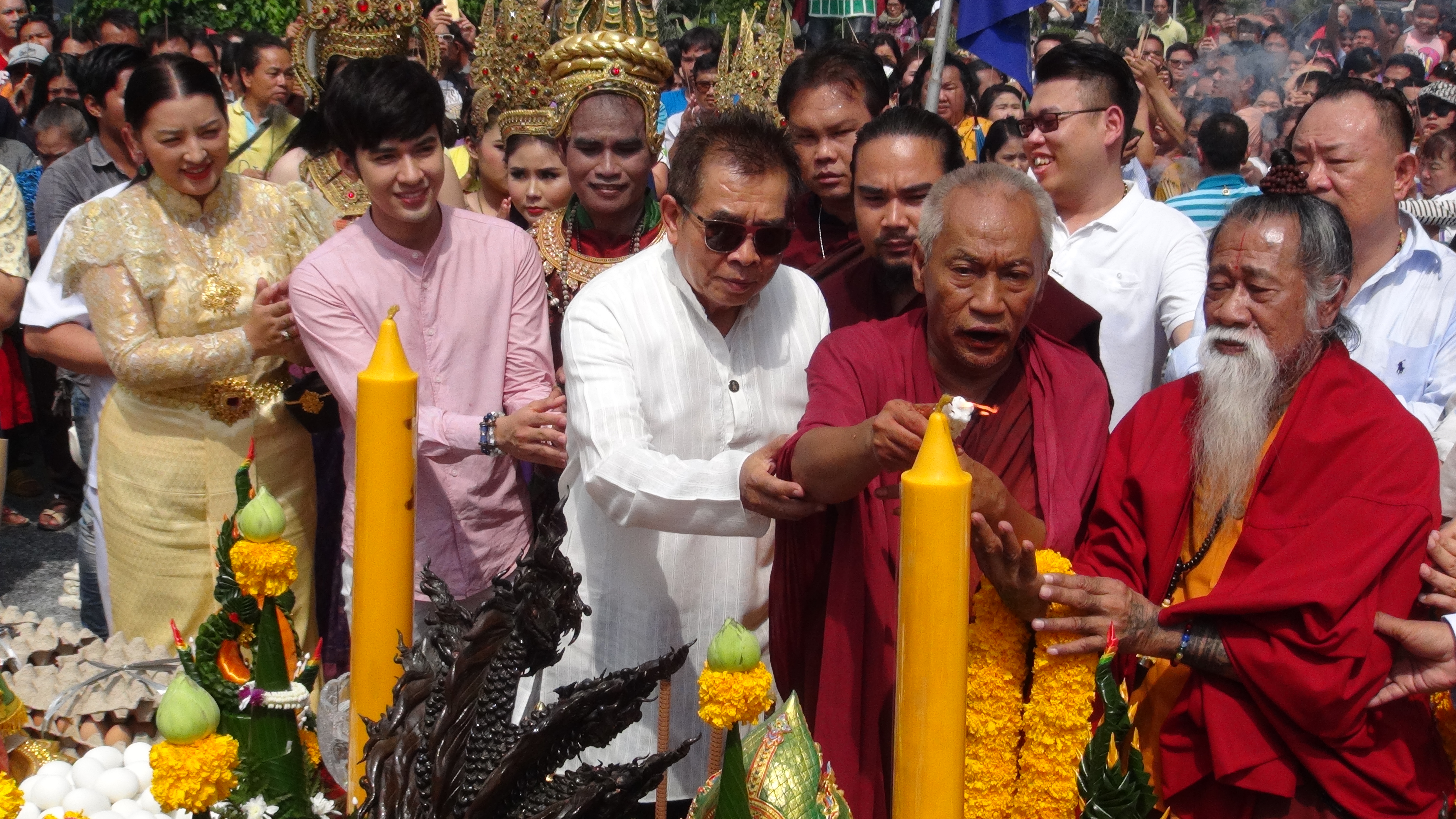 นครปฐม พิธีบวงสรวงสิ่งศักดิ์สิทธิ์เปิดขุมทรัพย์ อัญเชิญตำนานทับหลัง พระนาราย และเปิดวังพญานาคราช