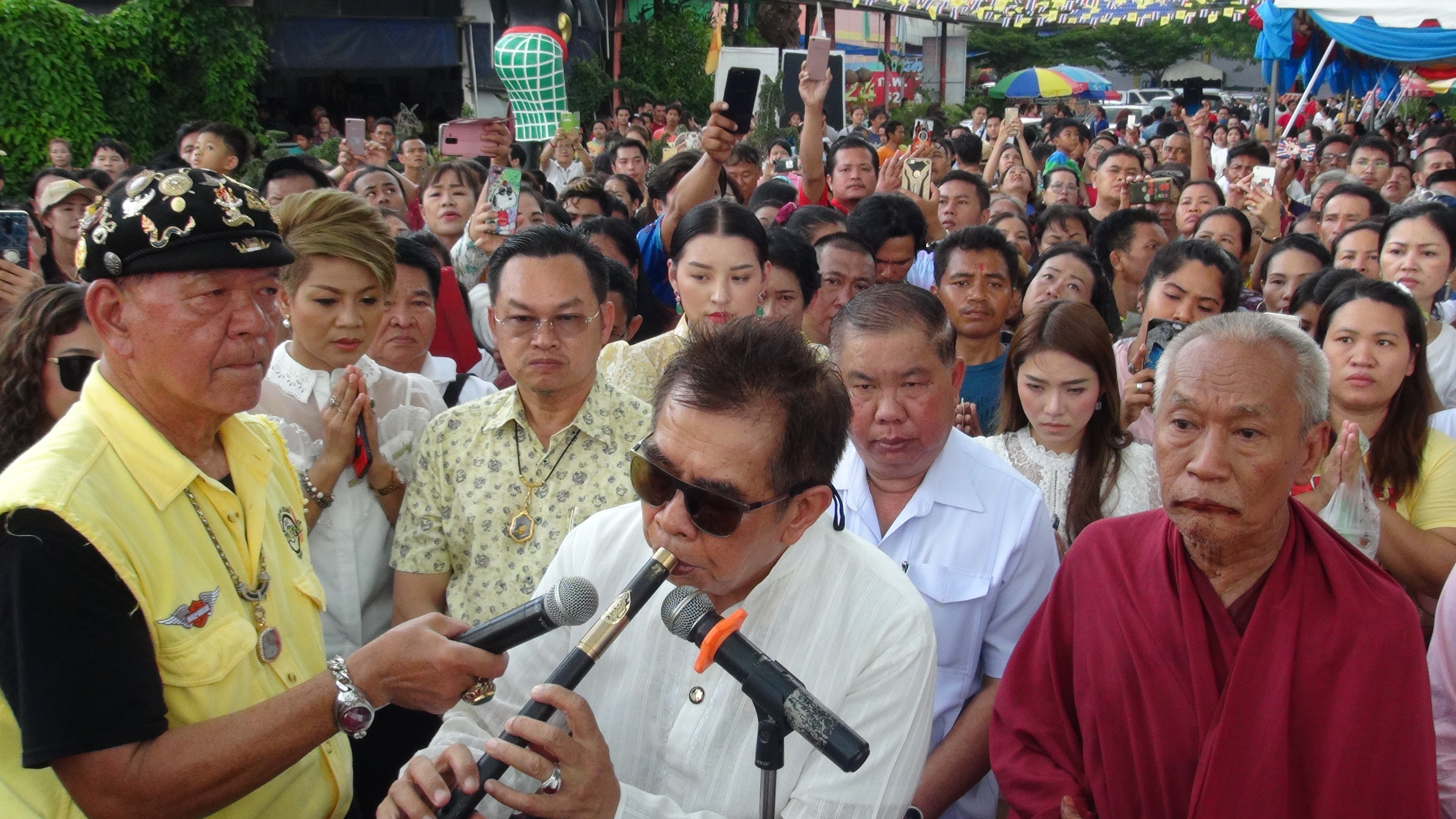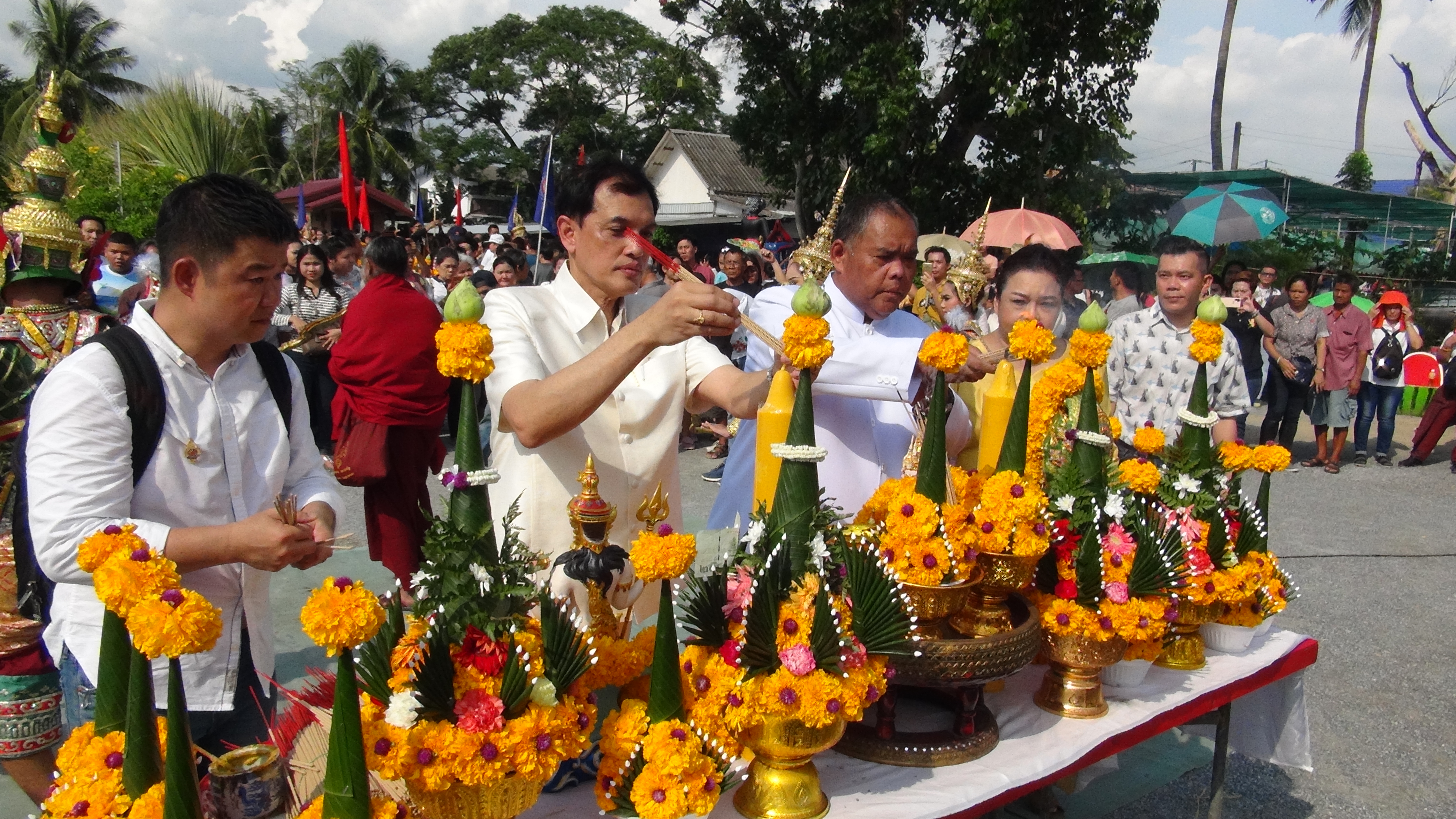 พระครูยติธรรมานุยุต (อาจารย์แป๊ะ) เจ้าอาวาสวัดสว่างอารมณ์ (แคแถว) ตำบลขุนแก้ว อำเภอนครชัยศรี จังหวัดนครปฐม เป็นองค์ประธานในพิธีบวงสรวงสิ่งศักดิ์สิทธิ์ พร้อมด้วย อาจารย์ธนิสร์ ศรีกลิ่นดี ศิลปินแห่งชาติ สาขาศิลปะการแสดง (ดนตรีไทยสากล) ประจำปี พ.ศ. 2559 โดยมี ดร.ประกาย ณ สงขลา เป็นประธานพิธีอัญเชิญเปิดขุมทรัพย์ ตำนานทับหลัง พระนาราย และเปิดวังพญานาคราช ร่วมด้วย อาจารย์วันชัย สุพรรณ และคุณวชิรินทริย์ เวอร์ไรสกี ศรีฤทธิวงศ์ ที่ปรึกษา สภากรุงเทพมหานคร คณะ(SMART CITY) ทนายอนันต์ชัย ไชยเดช พร้อมทั้ง ศิลปินดารา ศิลปินนักร้อง และอาจารย์ธนิสร์ ได้เป่าขลุ่ยบวงสรวงในครั้งนี้เพื่อบูชาครูและสิ่งศักดิ์สิทธิ์ด้วย และมี คณะสุริยะชัย ส.สไบทอง รำบวงสรวง ในพิธี ซึ่งทับหลัง พระนาราย พญานาคราช ที่สร้างขึ้น ณ วัดสว่างอารมณ์แห่งนี้ ผู้มีจิตศรัทธาใน พ่อปู่ศรีสุทโธ พญานาคราช