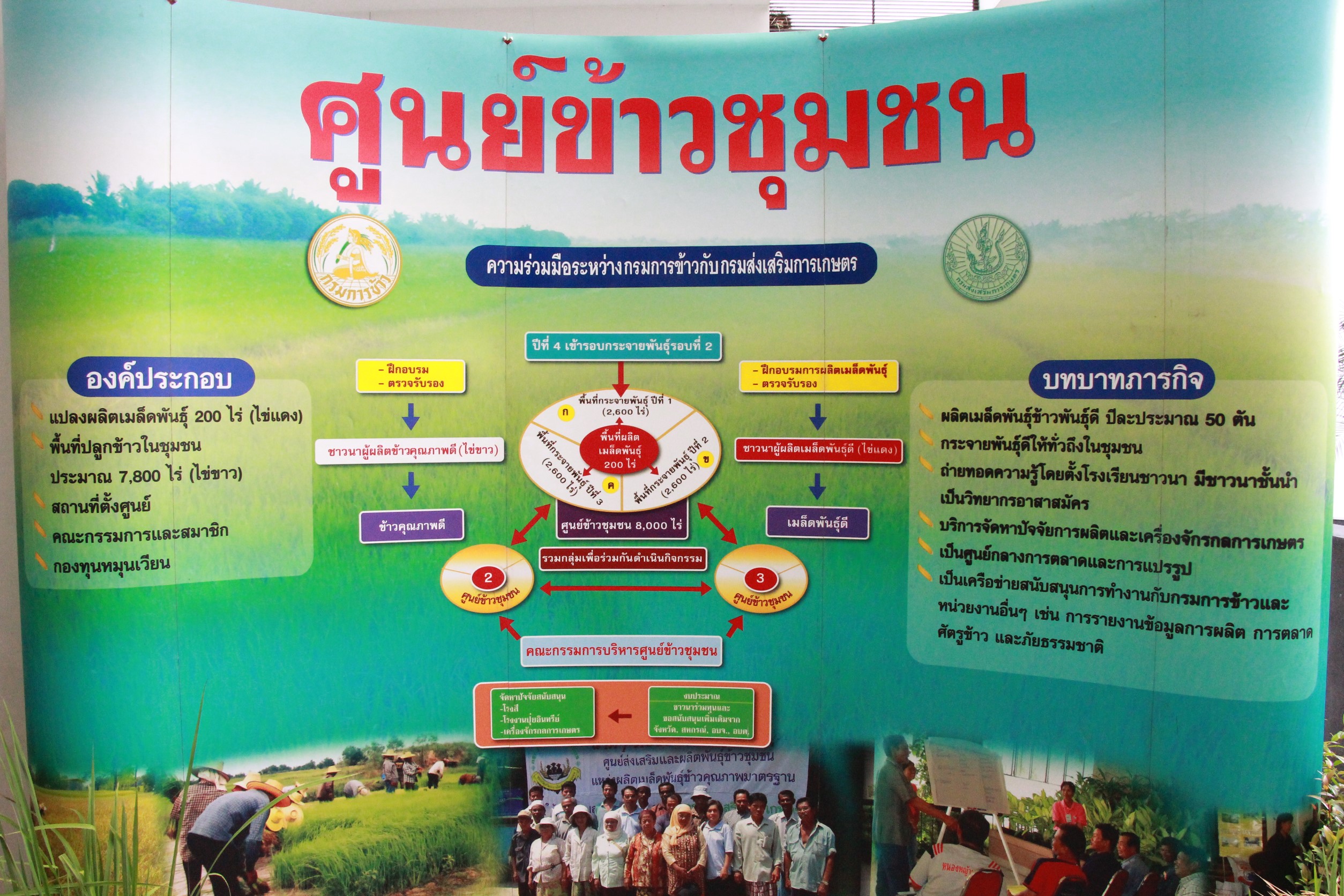 นายประภัตร โพธสุธน รัฐมนตรีช่วยว่าการกระทรวงเกษตรและสหกรณ์ กล่าวว่า ศูนย์ข้าวชุมชนมีบทบาทสำคัญในการเป็นศูนย์กลางถ่ายทอดเทคโนโลยีการพัฒนาการผลิตข้าวและชาวนาและผลิตเมล็ดพันธุ์ข้าวพันธุ์ดีไว้ใช้เองอย่างเพียงพอในชุมชน นับเป็นอีกแนวทางหนึ่งในการแก้ปัญหาการขาดแคลนเมล็ดพันธุ์ดี ซึ่งรัฐบาลได้ให้ความสำคัญกับเรื่องข้าวมาโดยตลอดชาวนจึงเปรียบเสมือนผู้สร้างความมั่นคงทางอาหารให้กับประเทศอีกทั้ง กระทรวงเกษตรฯได้ให้ความสำคัญกับการพัฒนาและเพิ่มเมล็ดพันธุ์ข้าวคุณภาพซึ่งจะสามารถช่วยให้การเพาะปลูกได้ผลผลิตดียิ่งขึ้นดังนั้นจึงต้องสร้างระบบการผลิตเมล็ดพันธุ์ข้าวของประเทศให้มีความเข้มแข็ง มั่นคง โดยศูนย์ข้าวชุมชน คือส่วนสำคัญในการขับเคลื่อนเป้าหมายดังกล่าวให้ประสบความสำเร็จจึงต้องร่วมมือกันในการผลิตเมล็ดพันธุ์ข้าวคุณภาพดี ให้เพียงพอกับความต้องการใช้ในแต่ละปี โดยกระทรวงเกษตรฯ พร้อมจะสนับสนุนเครื่องมือต่างๆอาทิ เครื่องคัดแยกเมล็ด เครื่องอบลดความขึ้นข้าวเปลือก รวมไปถึงการสร้างแหล่งน้ำบาดาลเพื่อการทำนาให้กับศูนย์ข้าวชุมชนแต่ละพื้นที่เป็นการช่วยลดความเสี่ยงจากภัยแล้งได้ รวมทั้งยังเป็นแหล่งน้ำอุปโภค บริโภคในหมู่บ้านได้อีกด้วย