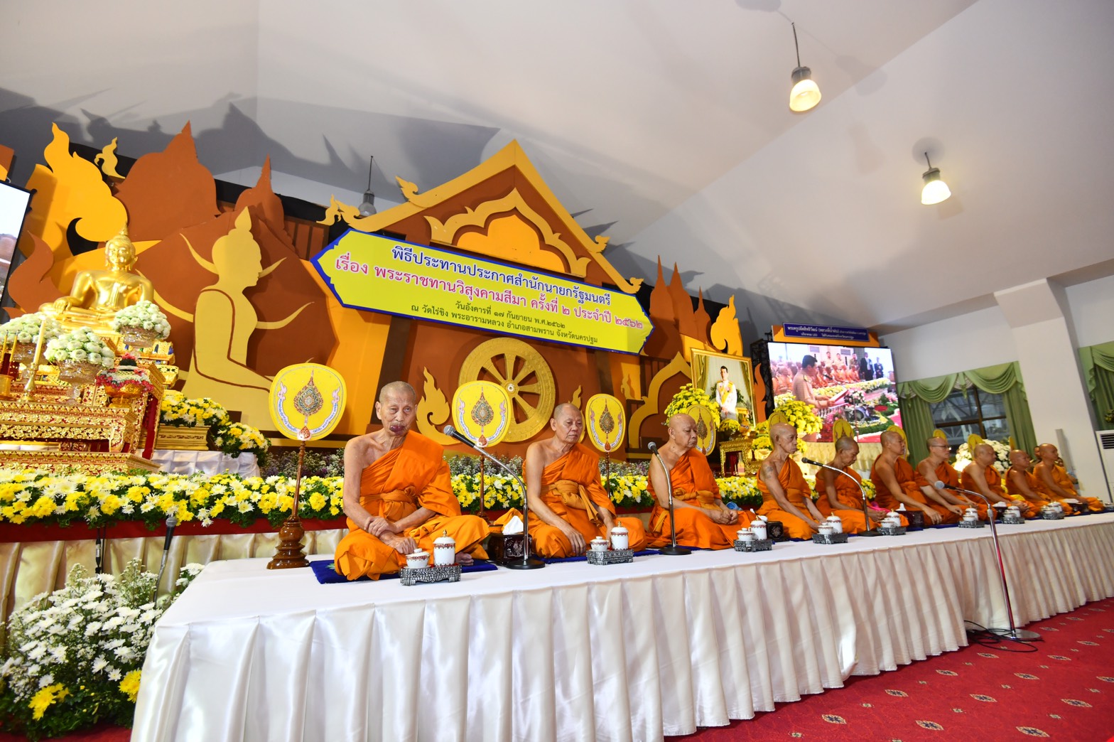 สมเด็จพระอริยวงศาคตญาณสมเด็จพระสังฆราช สกลมหาสังฆปริณายก เสด็จเป็นประธานในพิธีประทานประกาศสำนักนายกรัฐมนตรีเรื่อง พระราชทานวิสุงคามสีมา ครั้งที่ 2 ประจำปี 2562