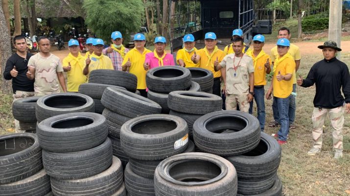 จันทเต็ง นอภ จอมบึง พร้อมด้วย สมาชิก อส ร้อยบริการ บก อส จ ราชบุรีและร้อย อส จอมบึง ที่ 4 กำนัน ผู้ใหญ่บ้าน จิตอาสา ตำบลรางบัวได้นำล้อยางใช้แล้ว จำนวน 60 เส้น ซึ่งได้รับการสนับสนุนจากคุณพี่อารีย์ บวรพัฒนานนท์ กรรมการเหล่ากาชาดจังหวัดราชบุรี เจ้าของร้านยางมิชชาลีน ไปมอบให้ นายวินันท์ วิระนะ หัวหน้าสถานีเพาะเลี้ยงสัตว์ป่าเขาสน ม 1 ต รางบัว เพื่อนำไปให้เป็นเครื่องเล่นออกกำลังกาย ลับเล็บให้เสือ ไม่ให้เกิดความเครียด