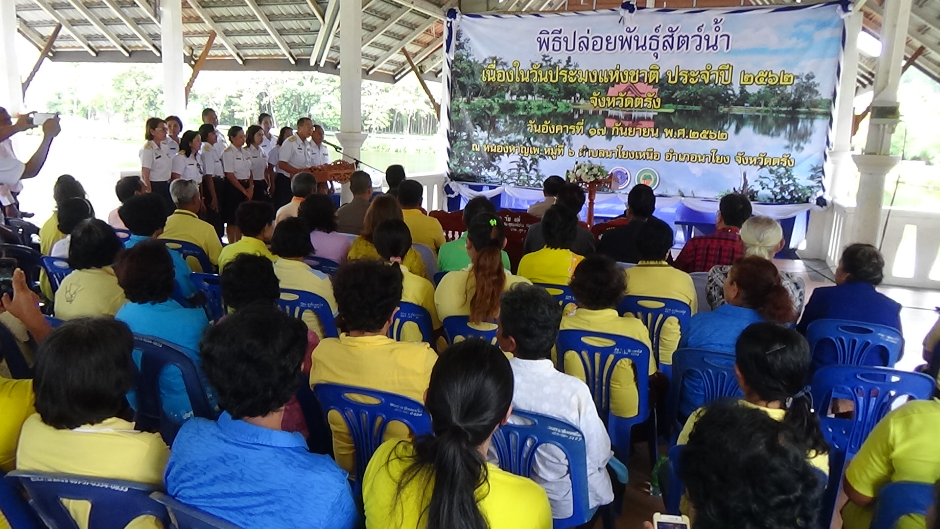 ที่หนองหาญแพ หมู่ที่ 6 ต.นาโยงเหนือ อ.นาโยง จ.ตรัง นายลือชัย เจริญทรัพย์ ผู้ว่าราชการจังหวัดตรัง เป็นประธานในพิธีปล่อยพันธุ์สัตว์น้ำ ปลากินพืช จำนวน 2 แสนตัว เนื่องในวันประมงแห่งชาติ ประจำปี 2562 ตามมติคณะรัฐมนตรีเมื่อวันที่ 6 มิถุนายน 2548 อนุมัติให้วันที่ 21 กันยายนของทุกปีเป็นวันประมงแห่งชาติ เพื่อให้ภาคส่วนได้ตระหนักคุณค่าของทรัพยากรสัตว์น้ำ โดยหน่วยงานกรมประมงในจังหวัดตรัง ร่วมกับองค์การบริหารส่วนตำบลนาโยงเหนือ ได้ร่วมกันจัดพิธีปล่อยพันธุ์สัตว์น้ำ ปลากินพืช จำนวน 2 แสนตัว ลงสู่แหล่งน้ำหนองหาญแพ หมู่ที่ 6 ตำบลนาโยงเหนือ เพื่อเป็นการอนุรักษ์และฟื้นฟูทรัพยากรสัตว์น้ำให้ลูกหลานได้มีกินอย่างต่อเนื่อง ซึ่งถือเป็นภารกิจร่วมกันที่จะรณรงค์ให้เกิดความตระหนักถึงคุณค่าทรัพยากรสัตว์น้ำ การมีส่วนร่วมในการอนุรักษ์และฟื้นฟูทรัพยากรสัตว์น้ำให้สามารถใช้ประโยชน์ได้อย่างยั่งยืน การปล่อยพันธุ์สัตว์น้ำ ในวันนี้ถือเป็นกิจกรรมหนึ่งที่จังหวัดตรังและกรมประมงได้ดำเนินการอย่างต่อเนื่องนับตั้งแต่ปี พ.ศ.2547 เป็นต้นมา