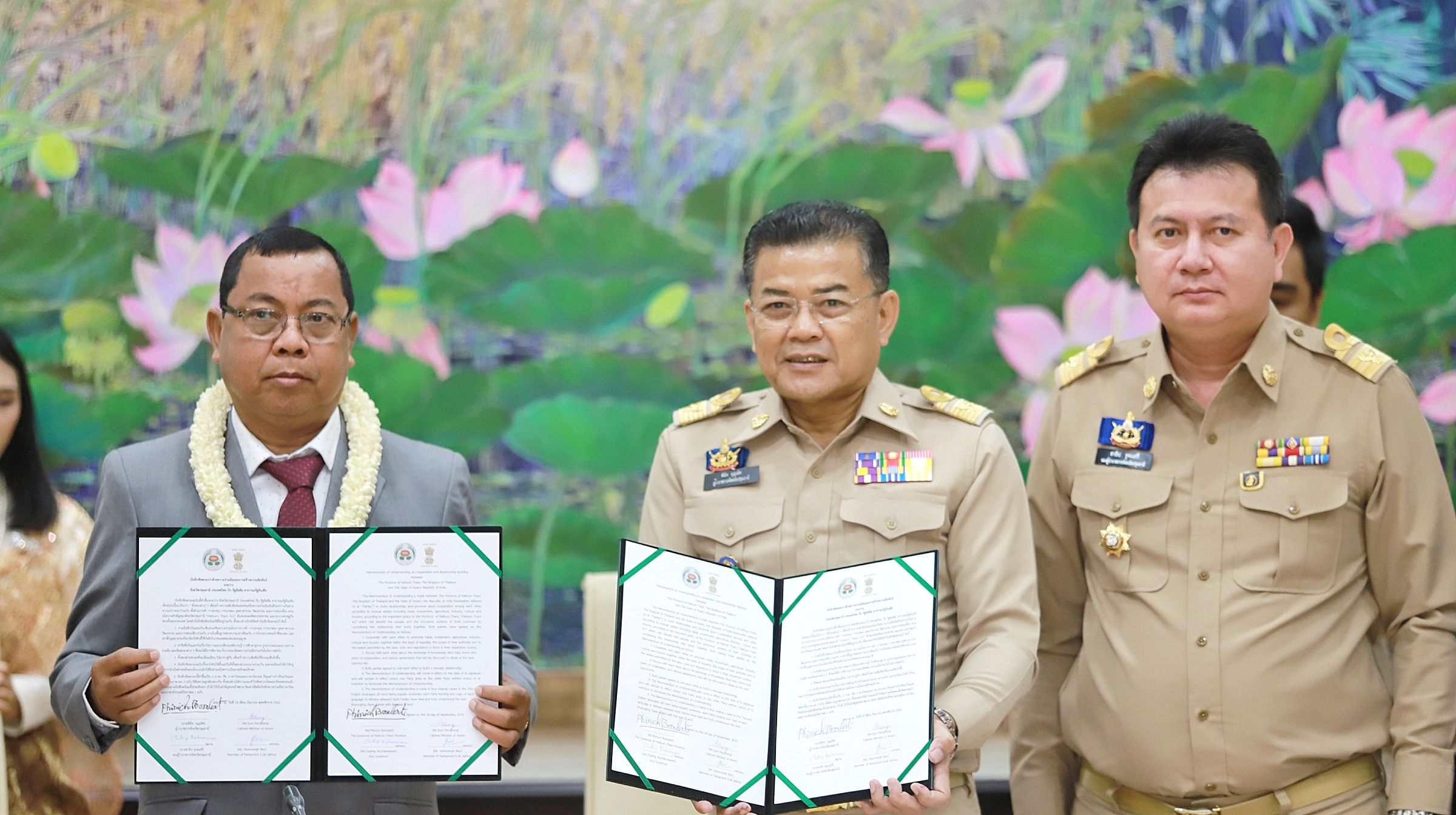เมื่อเวลา 10.30 น. วันที่ 18 ก.ย. 2562 Mr.Sun Ronghang รัฐมนตรีรัฐอัสสัม สาธารณรัฐอินเดีย พร้อมคณะเดินทางมาที่ศาลากลางจังหวัดปทุมธานี เพื่อลงนามบันทึกความเข้าใจว่าด้วยความร่วมมือและการสร้างความสัมพันธ์ทางการค้าระหว่างจังหวัดปทุมธานี ประเทศไทยกับรัฐอัสสัม สาธารณรัฐอินเดีย โดยมี ดร.พินิจ บุญเลิศ ผู้ว่าราชการจังหวัดปทุมธานี นายชาธิป รุจนเสรี รองผู้ว่าราชการจังหวัดปทุมธานี นายสหวัฒน์ โสภา อุตสาหกรรมจังหวัดปทุมธานี นางชไมพร ขวัญทอง พาณิชย์จังหวัดปทุมธานี นายสมเดช คงกระพันธ์ เกษตรจังหวัดปทุมธานี และหัวหน้าส่วนราชการ ให้การต้อนรับ ณ ห้องประชุมเจ้าพระยาปทุมธานี ศาลากลางจังหวัดปทุมธานี ดร.พินิจ บุญเลิศ ผู้ว่าราชการจังหวัดปทุมธานี กล่าวว่า คณะรัฐมนตรีรัฐอัสสัม สาธารณรัฐอินเดีย เดินทางมาเชื่อมความสัมพันธ์ กับจังหวัดปทุมธานี เพื่อแลกเปลี่ยนความคิดเห็นทางด้านการค้าในทุกมิติ รัฐอัสสัมกำลังเติบโตทางเศรษฐกิจมีเมือง “กูวาฮาติ” เป็นเมืองใหญ่สุดของรัฐ ที่นี่กำลังเจริญเติบโตอย่างเห็นได้ชัด มีสนามบินใหม่เอี่ยมใหญ่โตที่เพิ่งเปิดใช้งานที่นี่มีอุตสาหกรรมขนาดกลางและใหญ่ดำเนินการจำนวนมาก และมีอุตสาหกรรมหลายประเภท ทั้งปิโตรเคมี เหล็กและโลหะ ถ่านหิน ยานยนต์ พลาสติก การพิมพ์ ซีเมนต์ สิ่งทอ รัฐอัสสัมยังมีทรัพยากรอื่นๆ ที่น่าสนใจอีกมากมาย เพราะไทยและอินเดีย เป็นเสมือนเพื่อนบ้านที่เชื่อมโยงกันด้วยมหาสมุทร รวมทั้งศักยภาพที่จะเชื่อมโยงทางทะเล และท่าเรือไทย-อินเดีย รวมทั้งเส้นทางการบินระหว่างกัน การมาเยือนของคณะรัฐมนตรีรัฐอัสสัม สาธารณรัฐอินเดีย ตอบโจทย์ นโยบาย(Pathum Thani Market 4.0)เนื่องจากจังหวัดปทุมธานี เป็นเมืองตลาดส่งออกสินค้าที่สำคัญของประเทศ