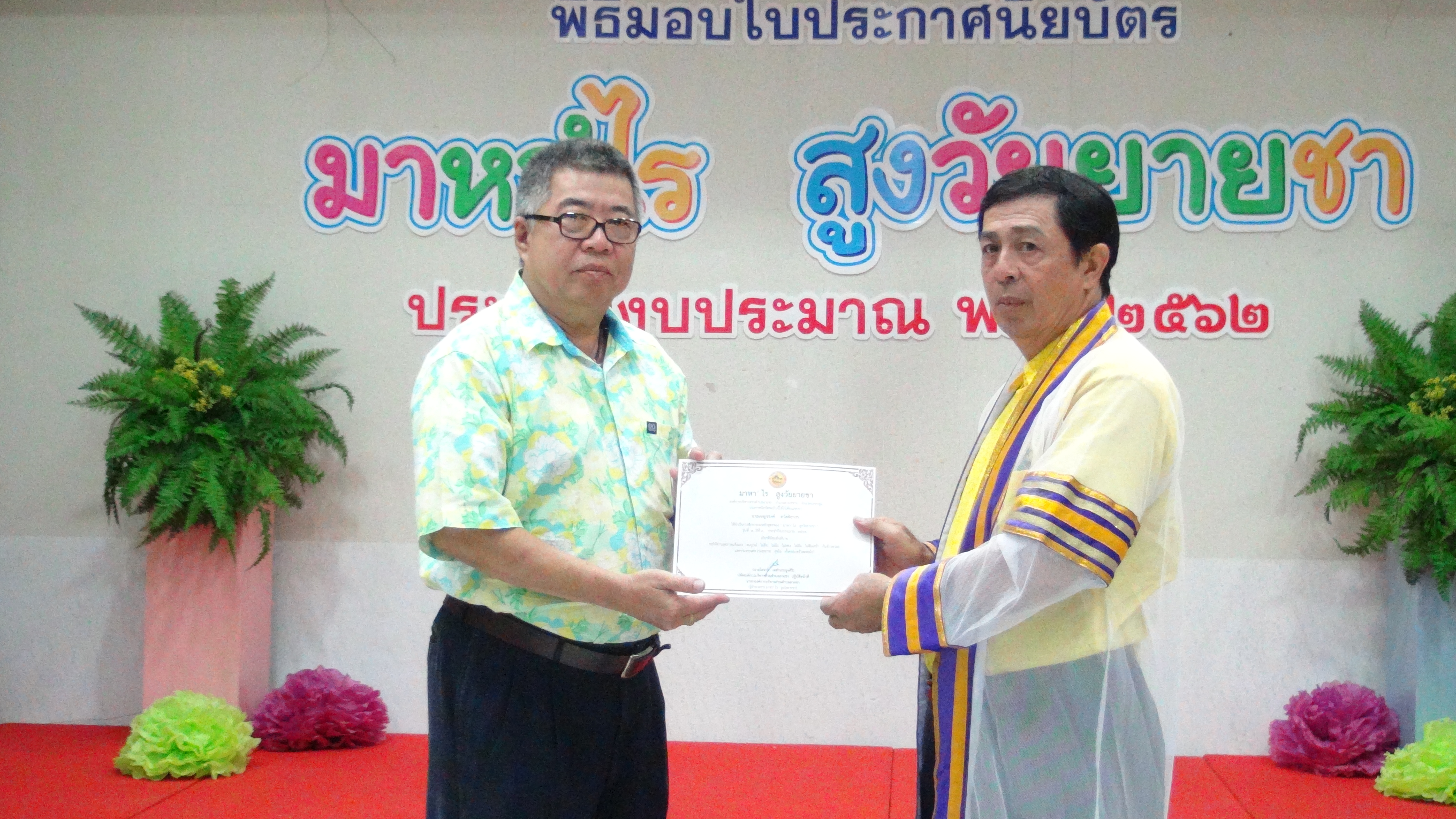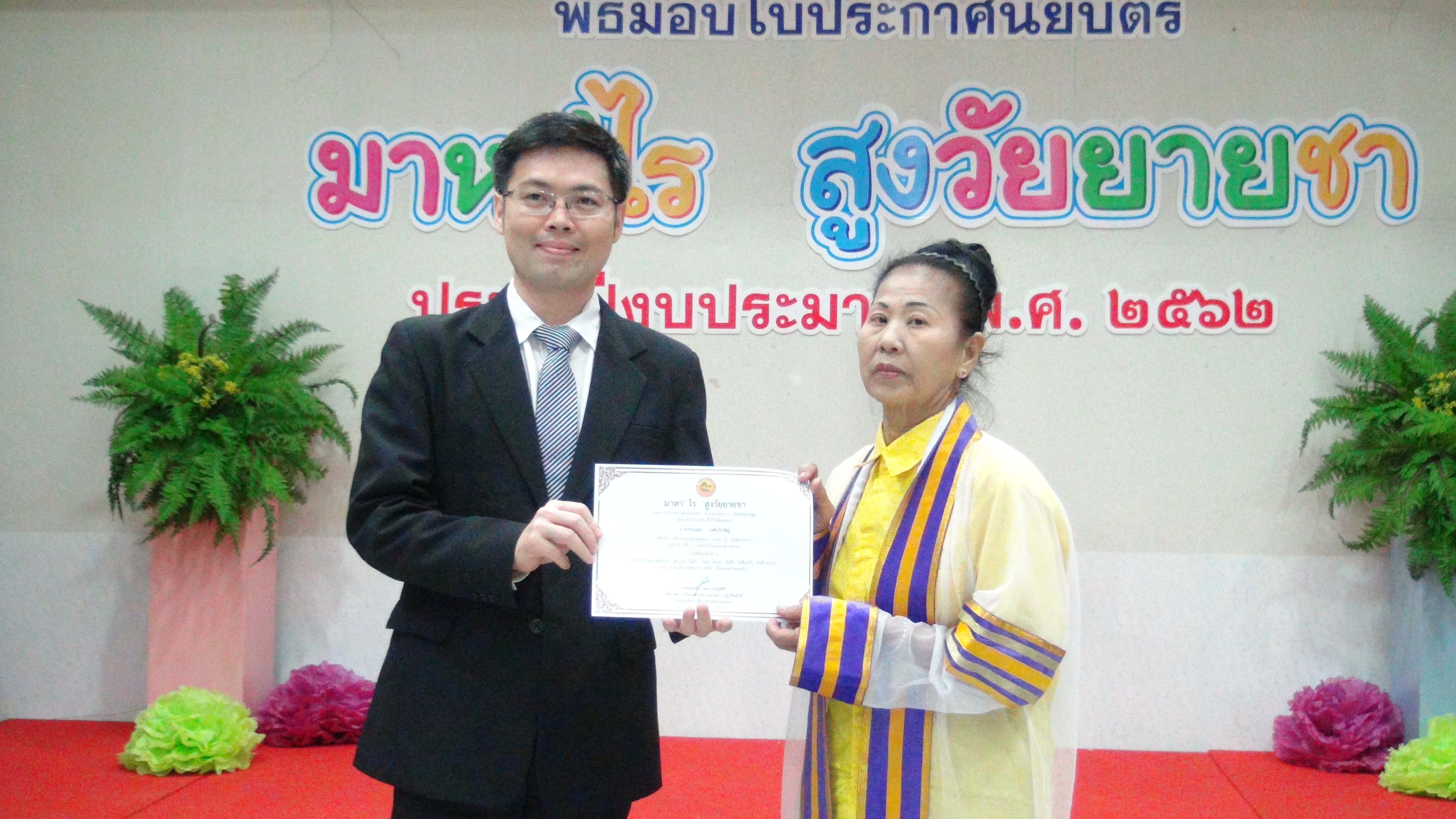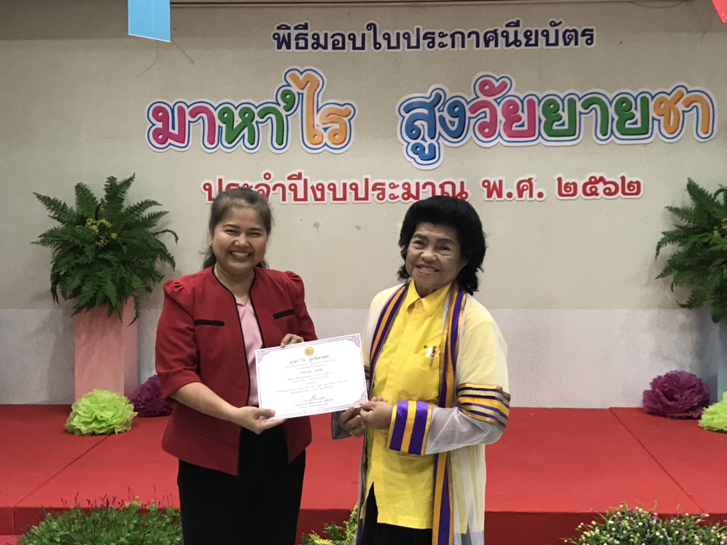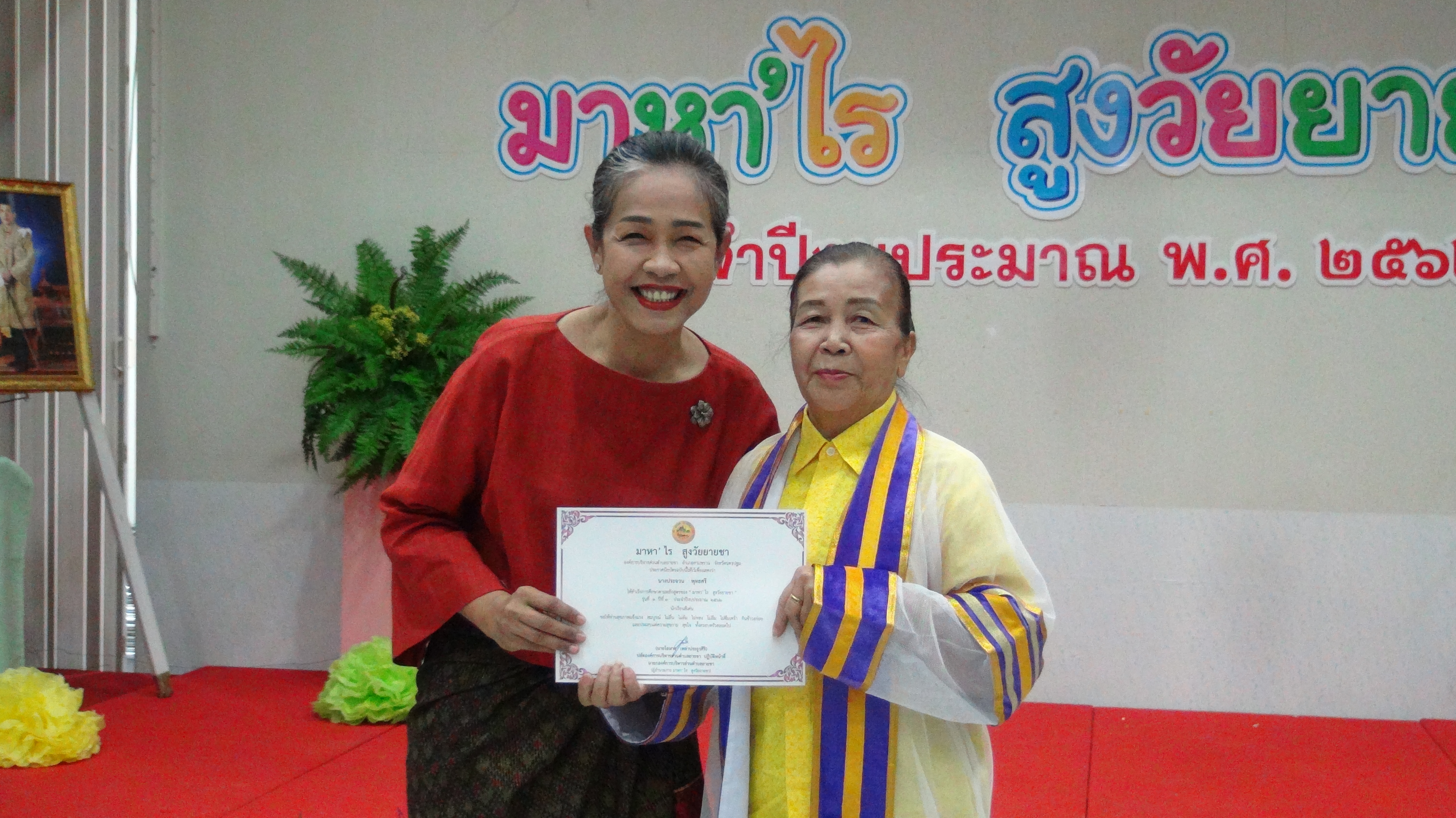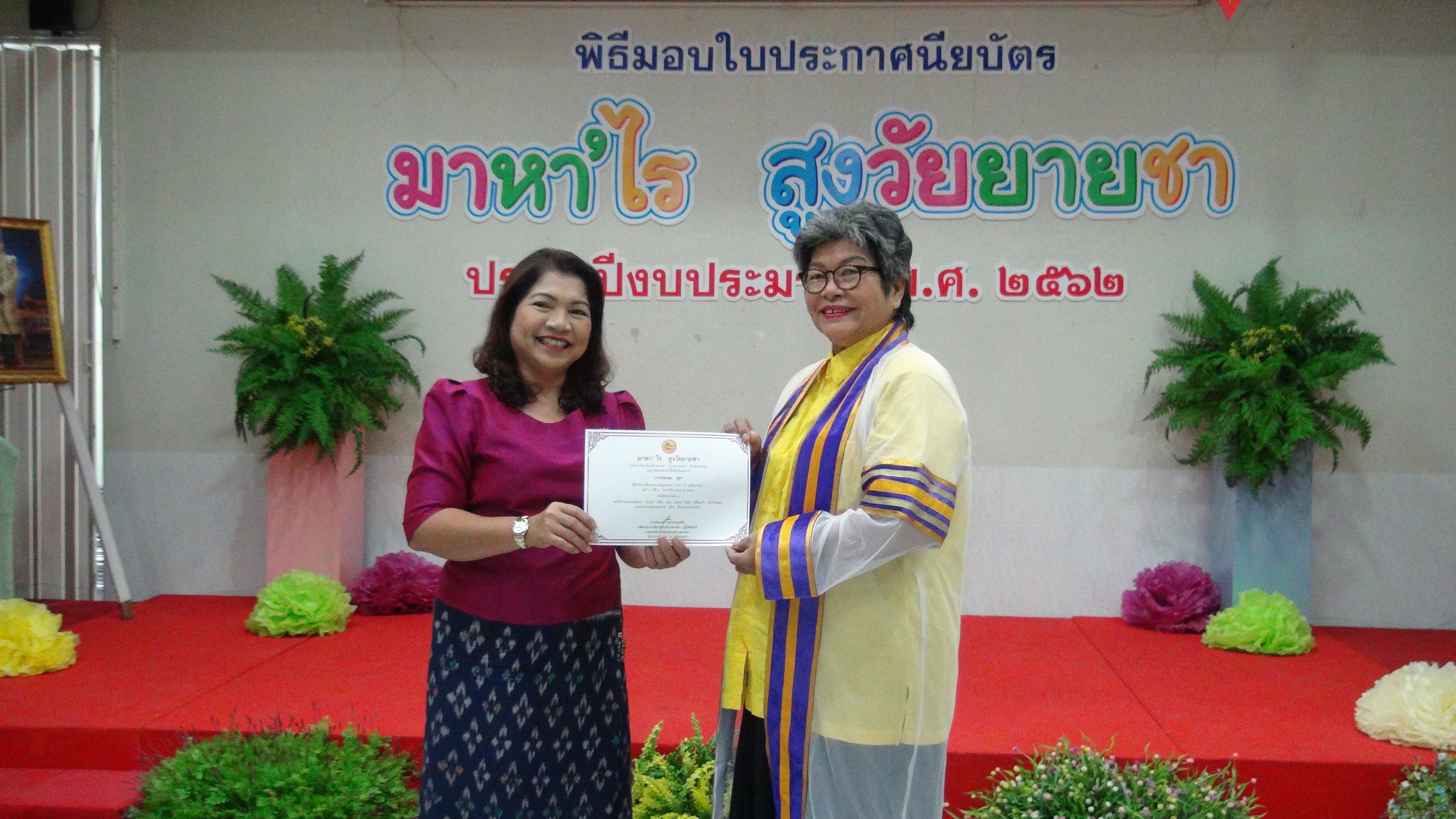 องค์การบริหารส่วนตำบลยายชามอบประกาศนียบัตรแก่ผู้สำเร็จการศึกษาตามหลักสูตรของมาหา’ไรสูงวัยยายชา