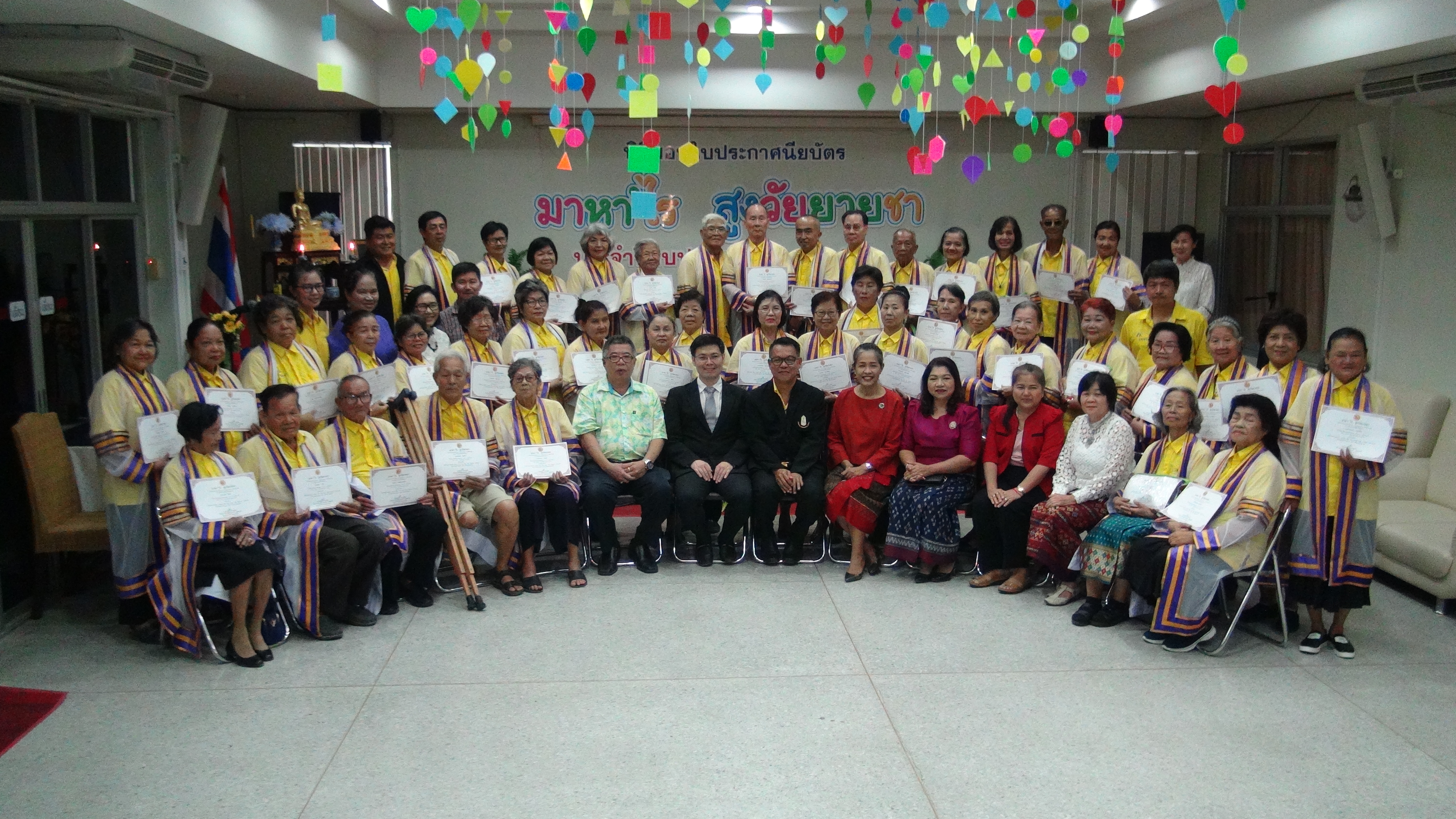 เพื่อให้ผู้สูงอายุได้เรียนรู้ พัฒนาทักษะในการดูแลตนเอง ซึ่งจะนำไปสู่การพัฒนาชีวิตผู้สูงอายุ โดยอยู่บนพื้นฐานแนวคิดที่ว่า “ผู้สูงอายุมีคุณค่าและมีศักยภาพ ควรได้รับการส่งเสริม สนับสนุนให้มีส่วนร่วมทำประโยชน์ให้สังคม และส่งเสริมการเรียนรู้ให้ผู้สูงอายุ โดยเชื่อมโยงกับประสบการณ์ของผู้สูงอายุ สาระการเรียนรู้จะต้องทำให้ผู้สูงอายุ สามารถนำไปใช้ได้จริงในชีวิตปัจจุบัน เพิ่มโอกาสในการรวมกลุ่ม ในลักษณะเครือข่ายหรือชุมชน” อีกทั้งผู้สูงอายุ มีสุขภาพที่แข็งแรง สมบูรณ์ ไม่ลื่น ไม่ล้ม ไม่หลง ไม่ลืม ไม่ซึมเศร้า กินข้าวอร่อย และมีความสุขกาย สุขใจ โดยการมอบประกาศนียบัตร แก่ผู้สำเร็จการศึกษาตามหลักสูตรของ มาหาไร สูงวัยยายชา ประจำปีงบประมาณ 2562 ในวันนี้ มีผู้สำเร็จการศึกษาตามหลักสูตร ของ มาหา’ไร สูงวัยยายชา ประจำงบประมาณ 2562 เข้ารับใบประกาศนียบัตร จำนวน 42 ท่าน