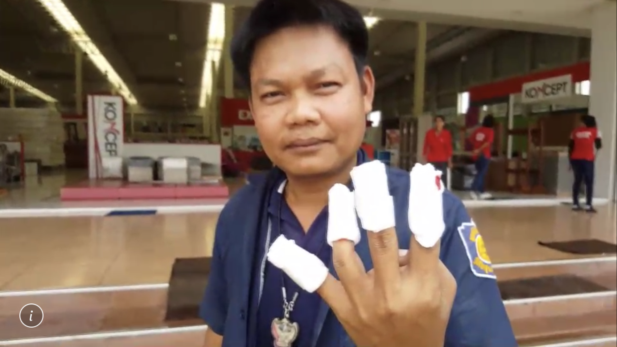เพื่อเตรียมใส่กระสอบแต่ระหว่างที่เจ้าหนาที่กำลังช่วยกันจับใส่กระสอบปุ๋ยได้เกิดเหตุระทึกเมื่อเจ้างูเหลือมขนาดความยาวเกือบ 4 เมตร ฮึดสู้ฉกกัดนิ้วนายทรงพล ทองคำ เจ้าหน้าที่กู้ภัยเป็นแผลเลือดไหลได้รับบาดเจ็บ 4 นิ้วเจ้าหน้าที่ต้องปฐมพยาบาลกันเองก่อนพาส่ง รพ.ศูนย์เจ้าพระยายมราช ให้แพทย์ดูอาการ