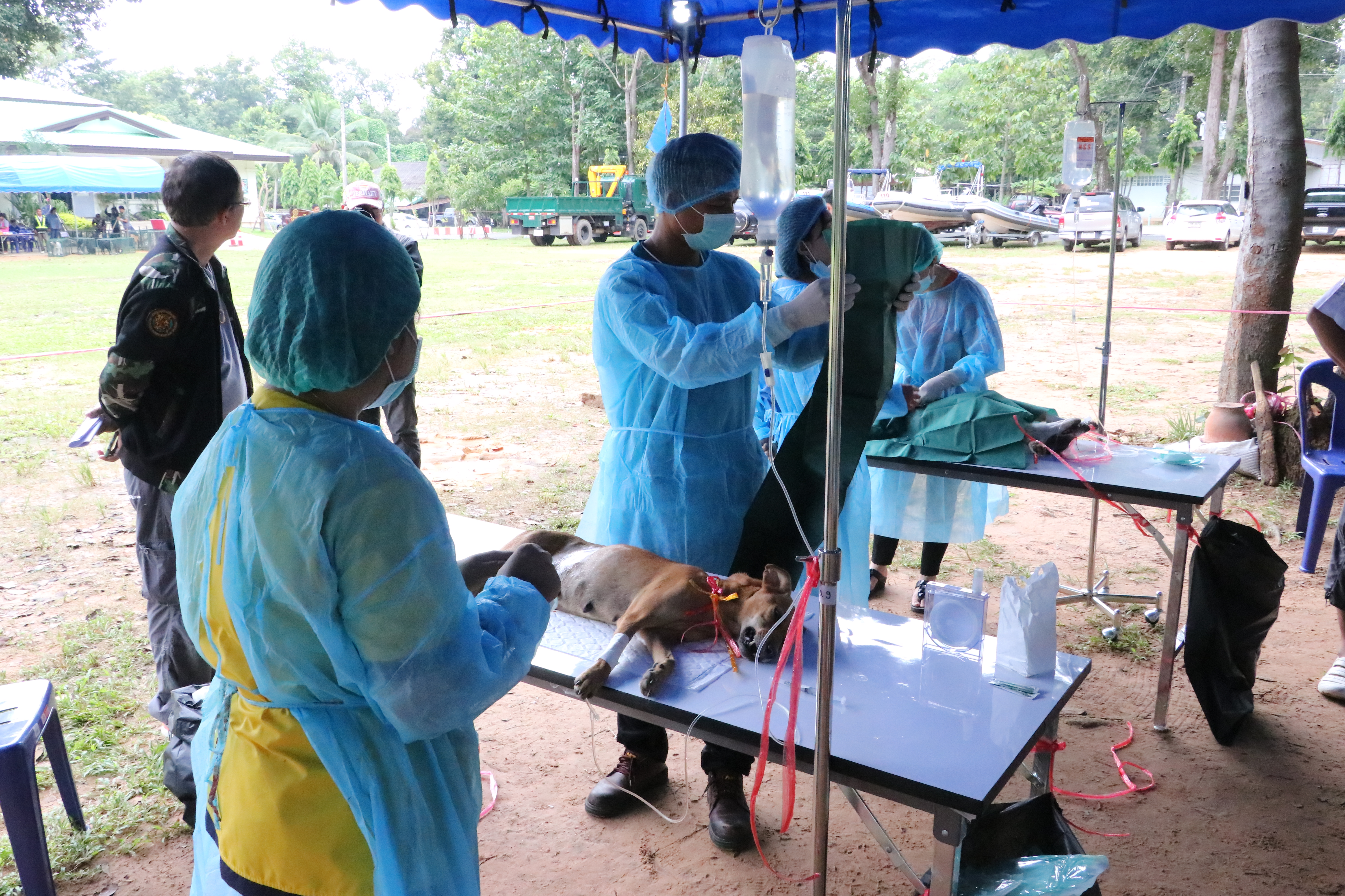 สำนักบริหารพื้นที่อนุรักษ์ที่ 9 นำทีมสัตวแพทย์จิตอาสา ช่วยกันทำหมัน สุนัข แมว พัดหลง ตกค้างตามหลังคาบ้าน ตามวัด ที่ได้ช่วยมาในช่วงน้ำท่วม พร้อมส่งมอบคืนเจ้าของหลังน้ำลด