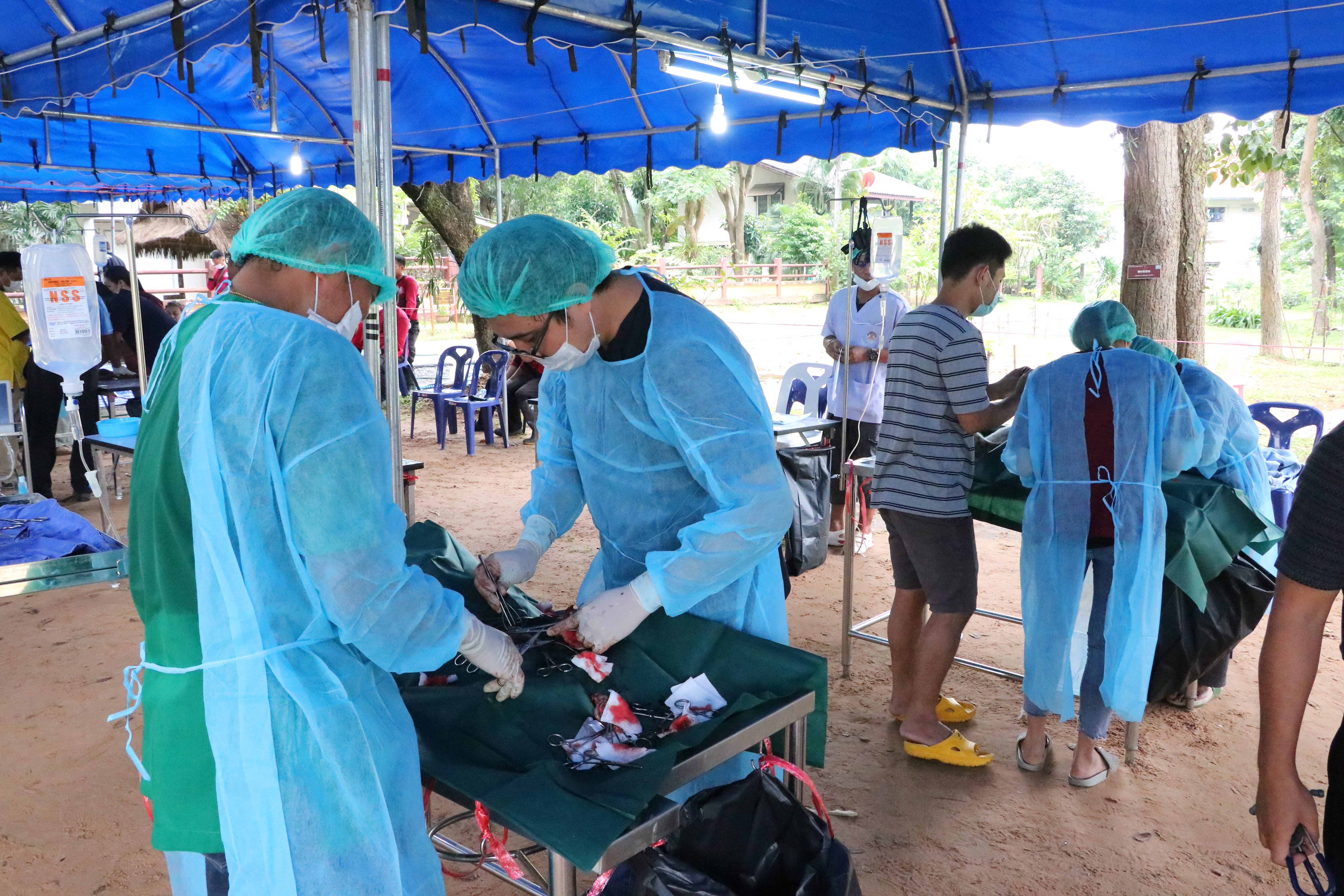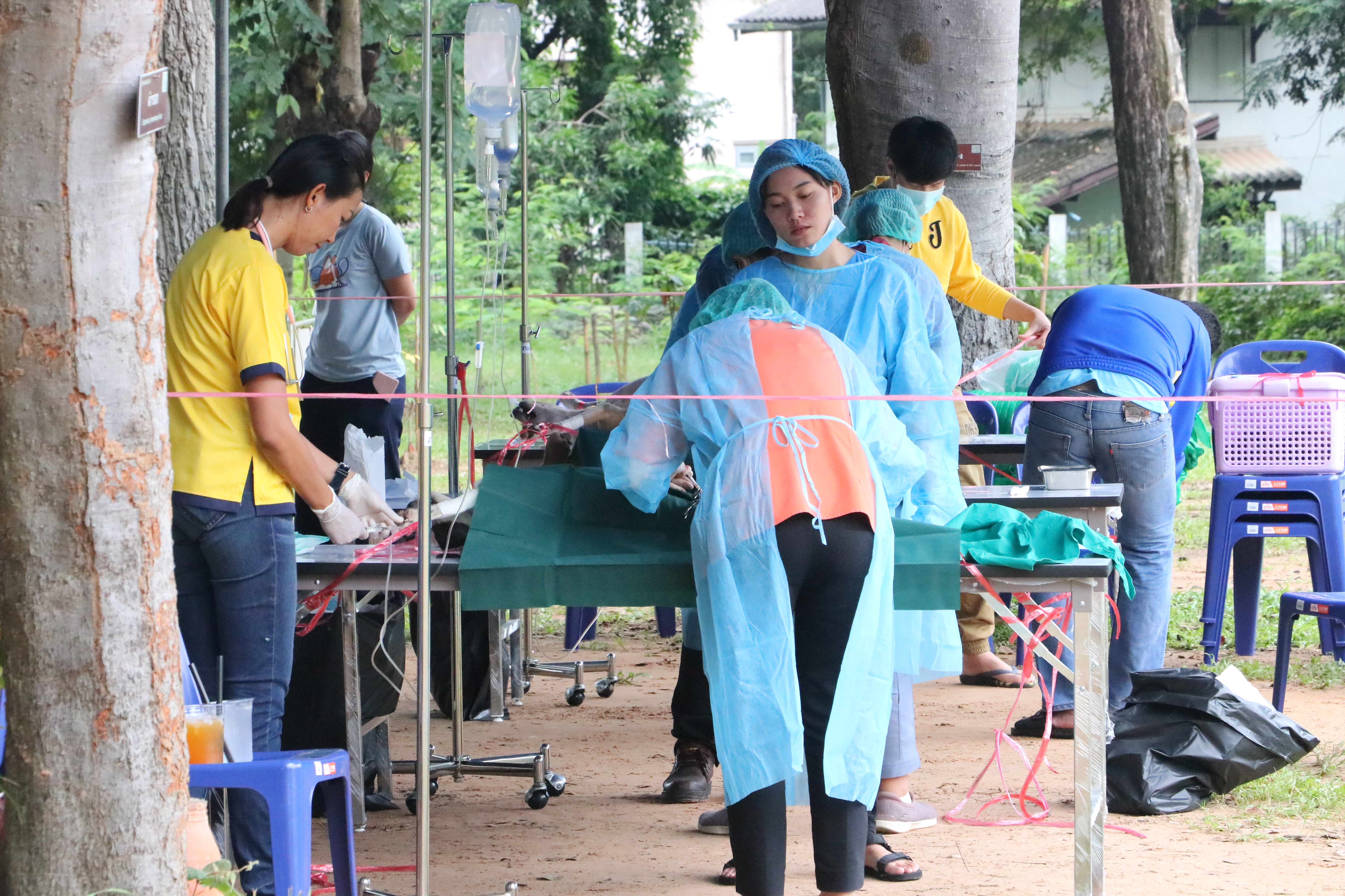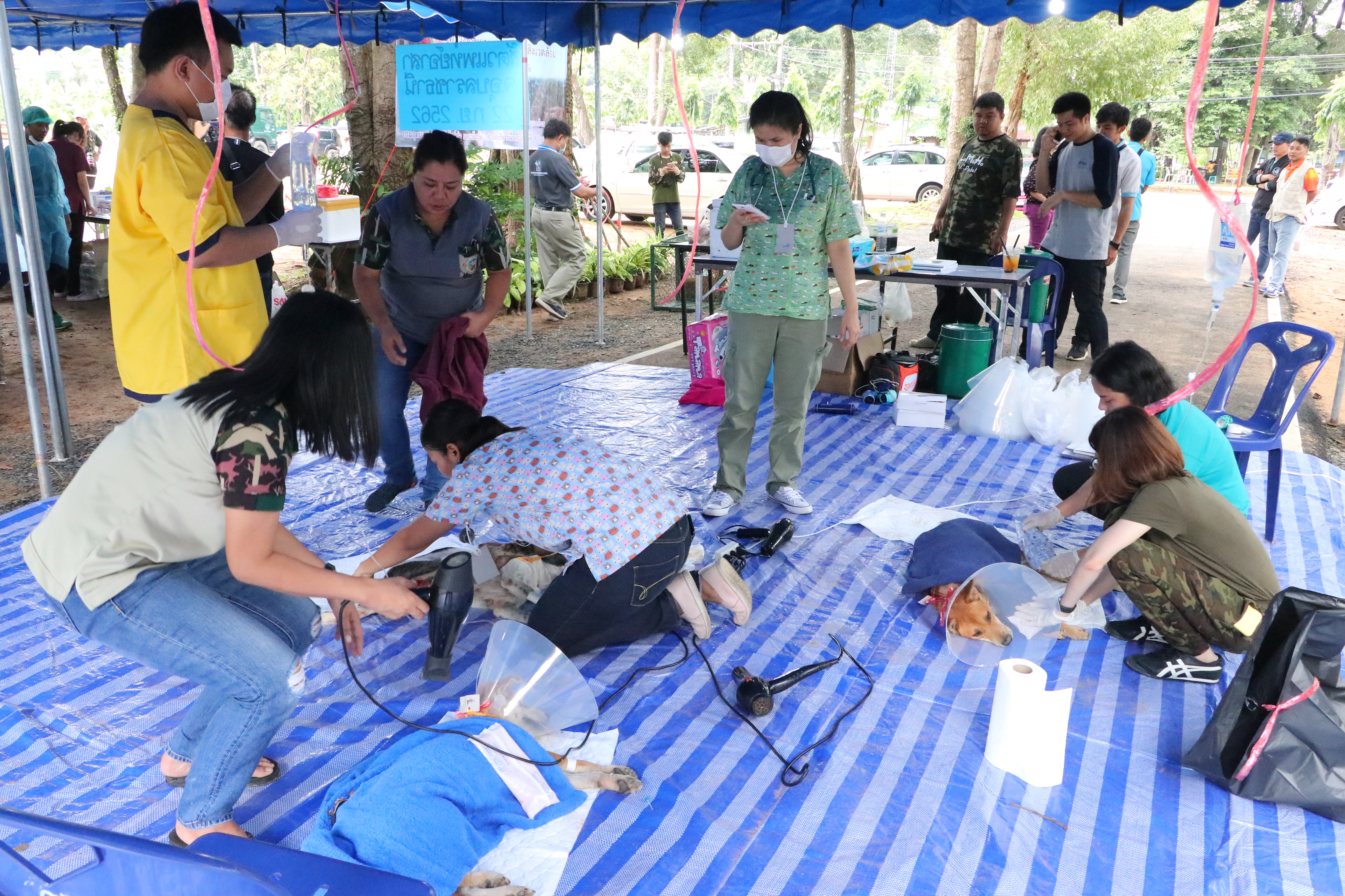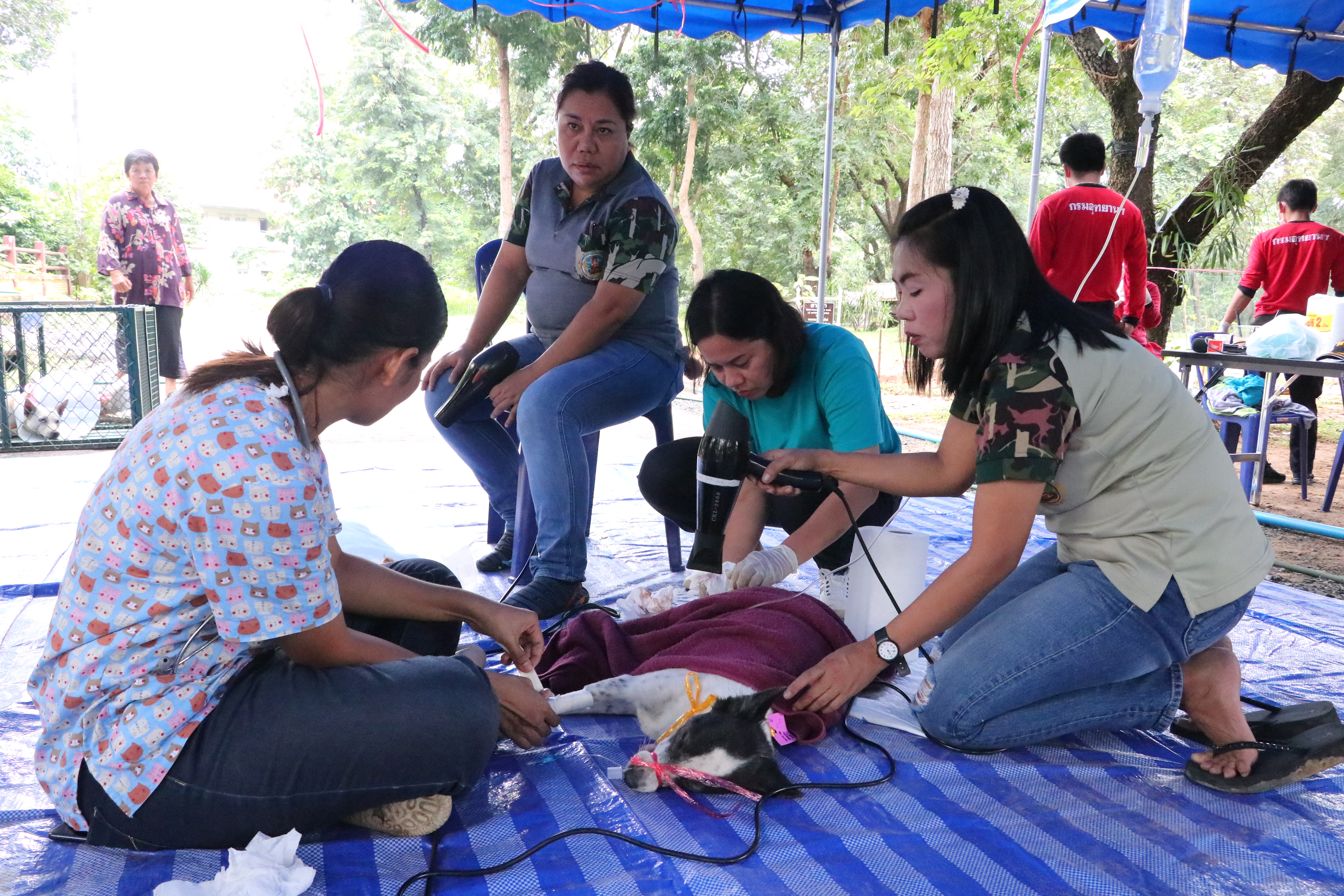 ที่ ศูนย์ปฏิบัติการเฉพาะกิจช่วยเหลือประชาชนด้านสัตว์ป่า สำนักบริหารพื้นที่อนุรักษ์ที่ 9 อ.เมือง จ.อุบลราชธานี ทีมสัตวแพทย์จิตอาสา จากจังหวัดต่างๆ ในภาคตะวันออกเฉียงเหนือ กำลังช่วยกันดูแล ฉีดยา ทำหมันสุนักข์ แมว ซึ่งเป็นสัตว์เลี้ยงที่ เจ้าหน้าที่ สำนักบริหารพื้นที่อนุรักษ์ที่ 9 ได้ช่วยเหลือมาได้จากการพัดหลง ติดอยู่ตามบ้าน ในวัด จากเหตุอุทกภัยน้ำท่วมพื้นที่ต่างๆ ในจังหวัดอุบลราชธานี ช่วงที่ผ่านมา