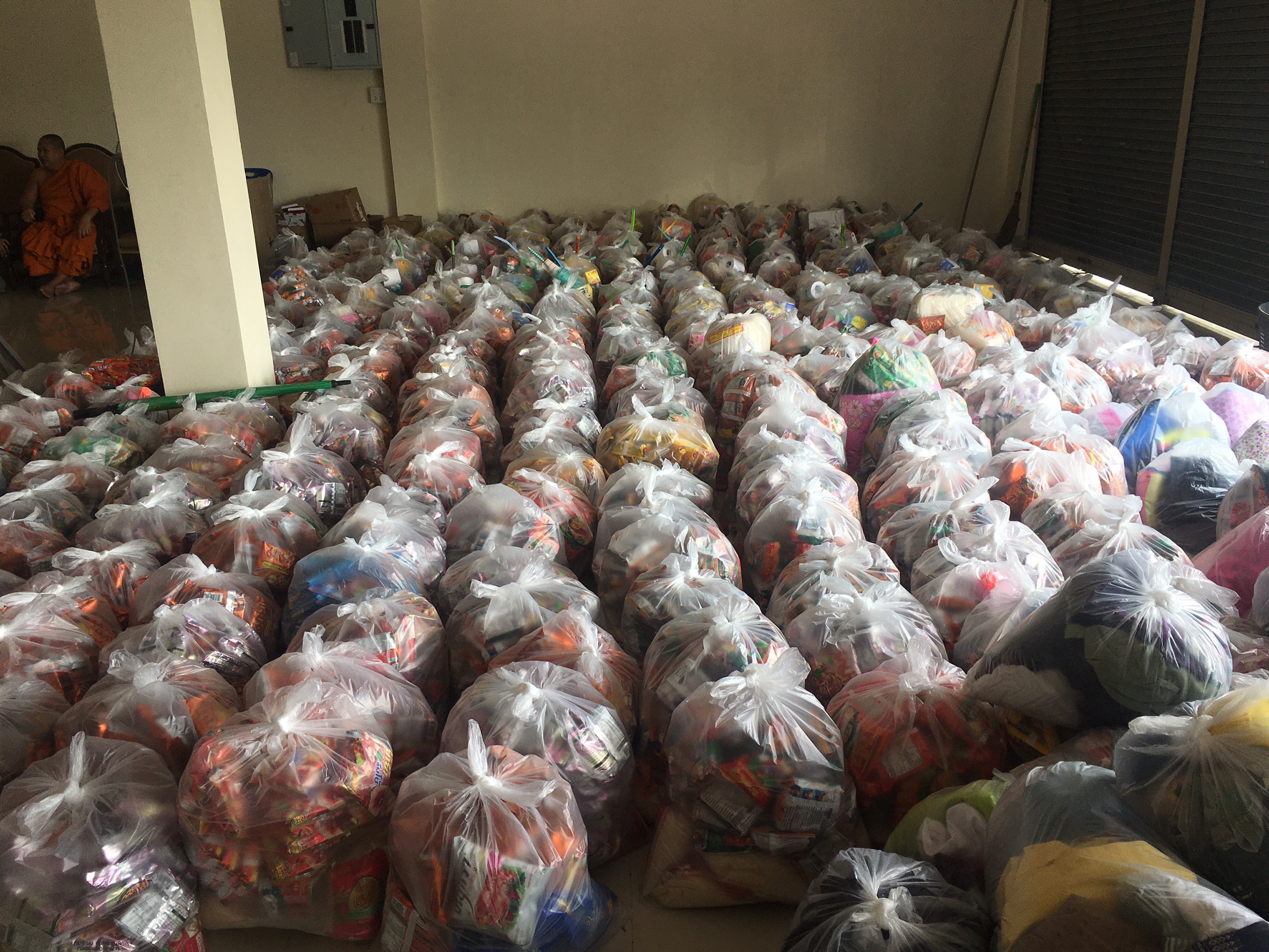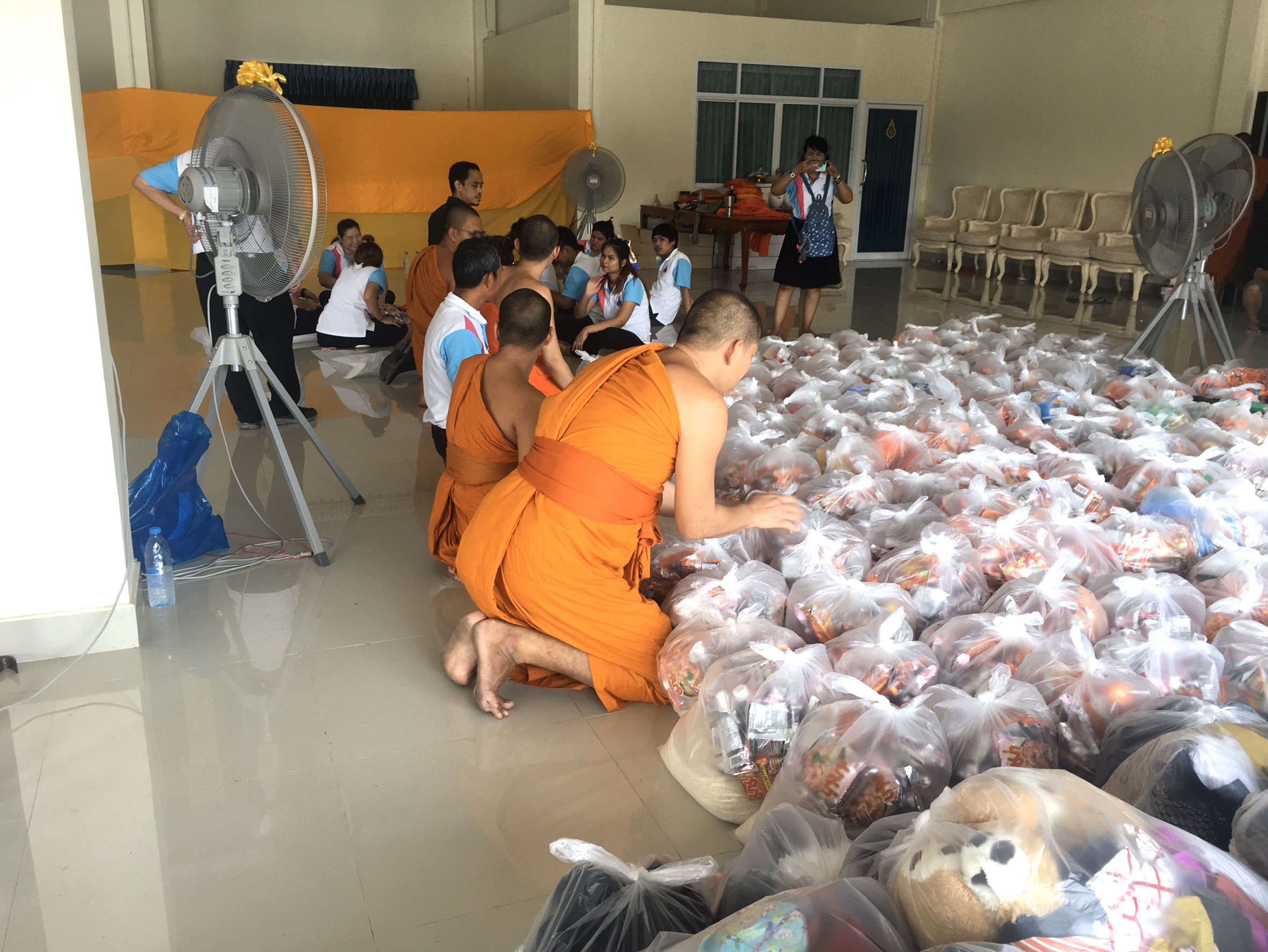 ที่วัดป่าเลไลยก์วรวิหาร อ.เมือง จ.สุพรรณบุรี คณะพระภิกษุสงฆ์จังหวัดสุพรรณบุรี นิสิต นักศึกษา คณาจารย์วิทยาลัยสงฆ์สุพรรณบุรีศรีสุวรรณภูมิ และชาวบ้านได้ร่วมเร่งบรรจุหีบห่อถุงยังชีพ ซึ่งประกอบไปด้วย ข้าวสาร อาหารแห้ง น้ำดื่มและเครื่องนุ่งห่มที่นักศึกษา ประชาชนชาวสุพรรณบุรี และผู้ใจบุญได้บริจาคทยอยเข้ามาตลอดทั้งวันเพื่อนำไปช่วยเหลือผู้ประสบภัยน้ำท่วมภาคอีสาน