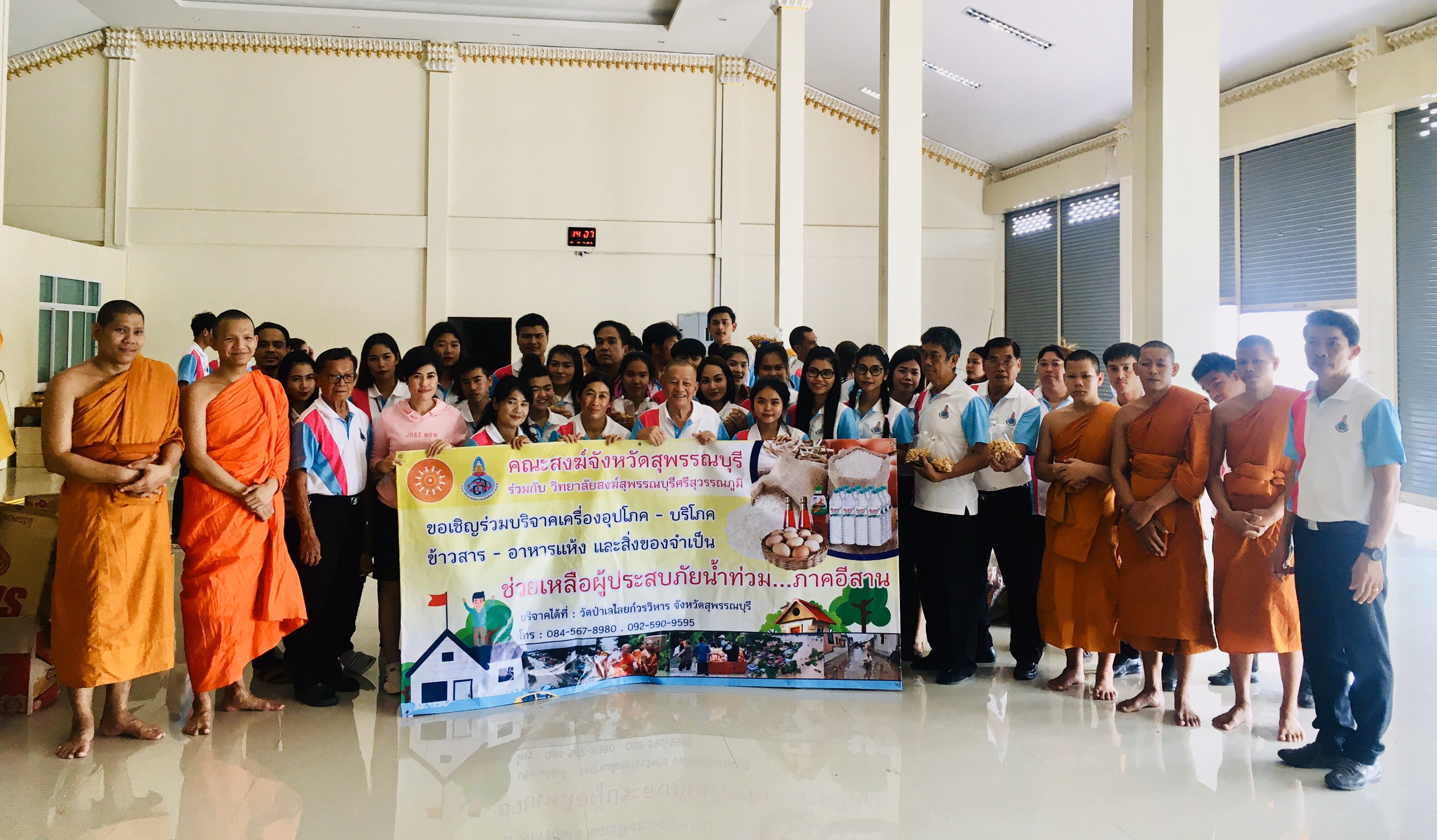 สุพรรณบุรี คณะสงฆ์ร่วมวิทยาลัยสงฆ์สุพรรณบุรี บริจาคสิ่งของช่วยเหลือผู้ประสบภัยน้ำท่วม
