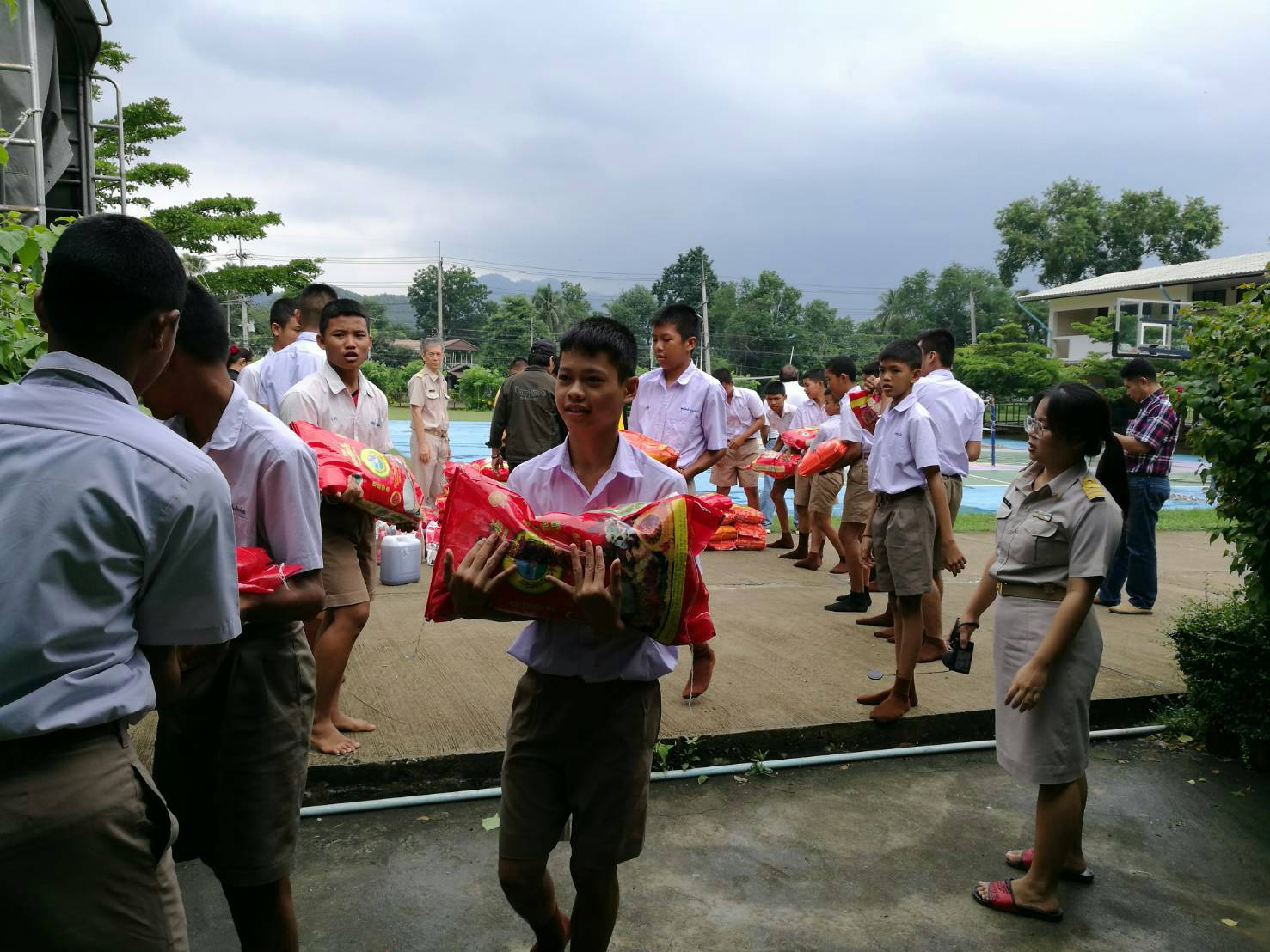 กาญจนบุรี ผู้ใหญ่ใจดีร่วมกันนำข้าวสารอาหารแห้งมอบเป็นอาหารกลางวันแก่นักเรียน