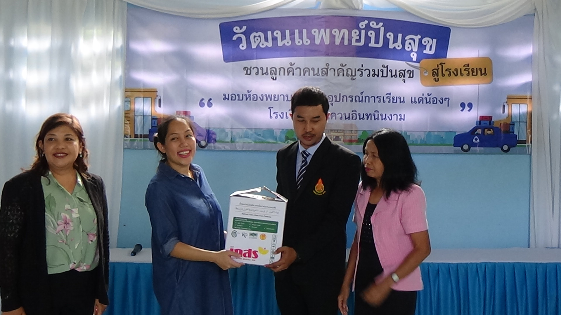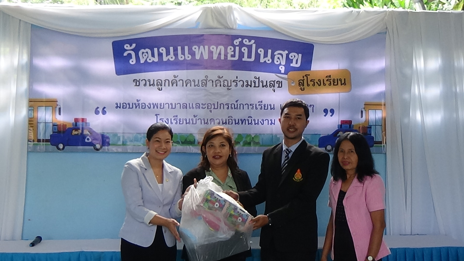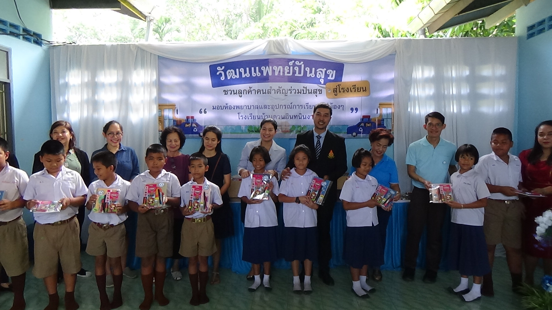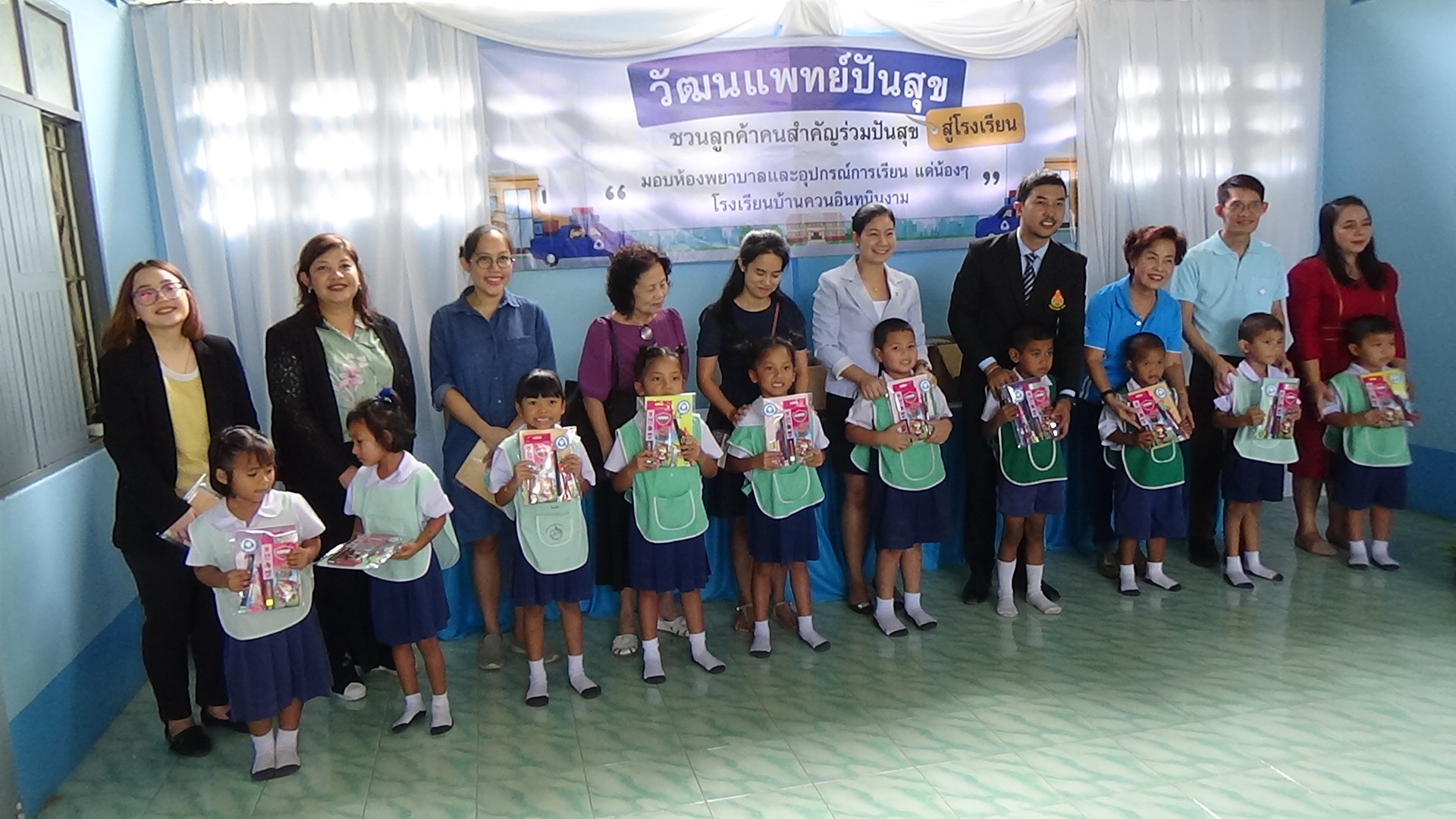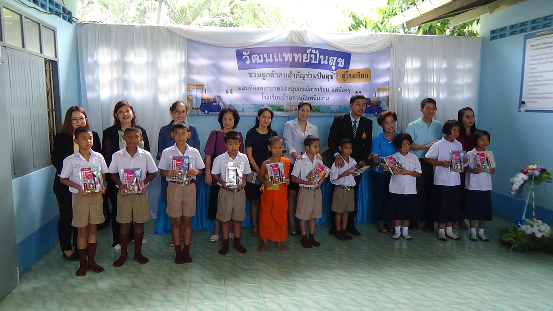 หากนักเรียนมีอาการไม่สบายขณะเรียนก็สามารถมานอนพักได้ เมื่อก่อนไม่มีห้องพยาบาล นักเรียนที่ป่วยบางทีก็ฟุบหลับบนโต๊ะเรียน อีกทั้งยังได้มอบยาสามัญ เพื่อบรรเทาอาการเจ็บป่วยในเบื้องต้อนให้กับโรงเรียน จากนั้นได้มีการมอบอุปกรณ์การเรียน เช่น สมุด ดินสอ สีไม้ ให้กับนักเรียน จำนวน 140 ชุด และยังนำขนม มาแจกให้กับเด็กๆนักเรียน ได้รับประทานอีกด้วย สร้างความดีใจและรอยยิ้มให้กับเด็กๆเป็นอย่างมาก