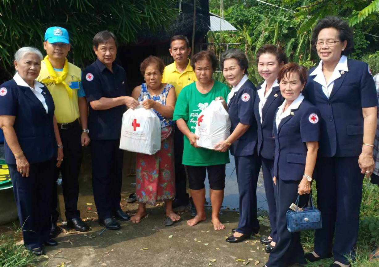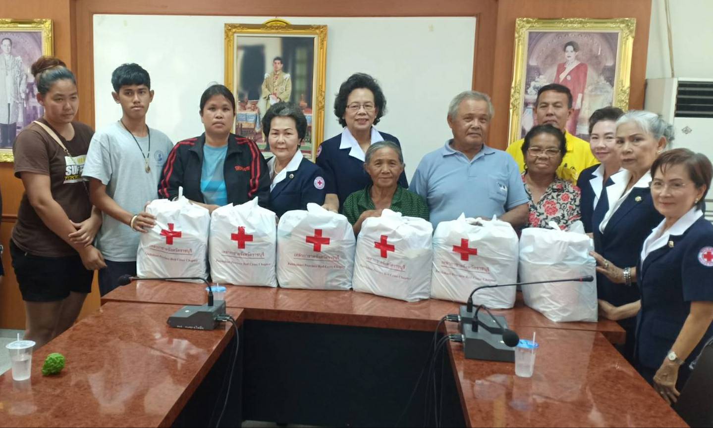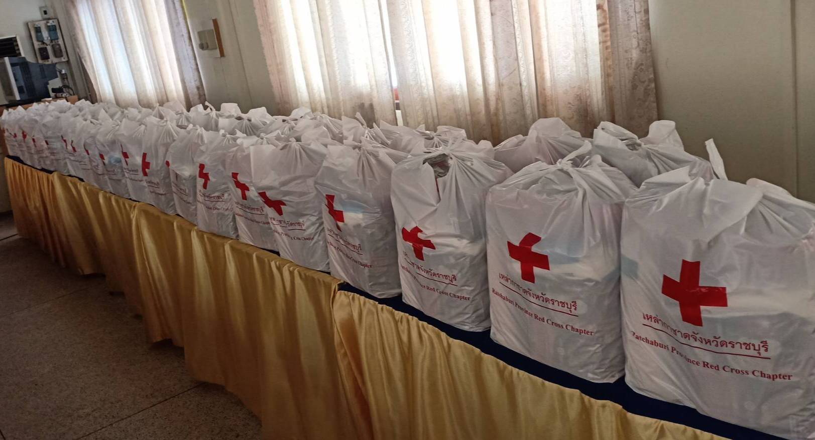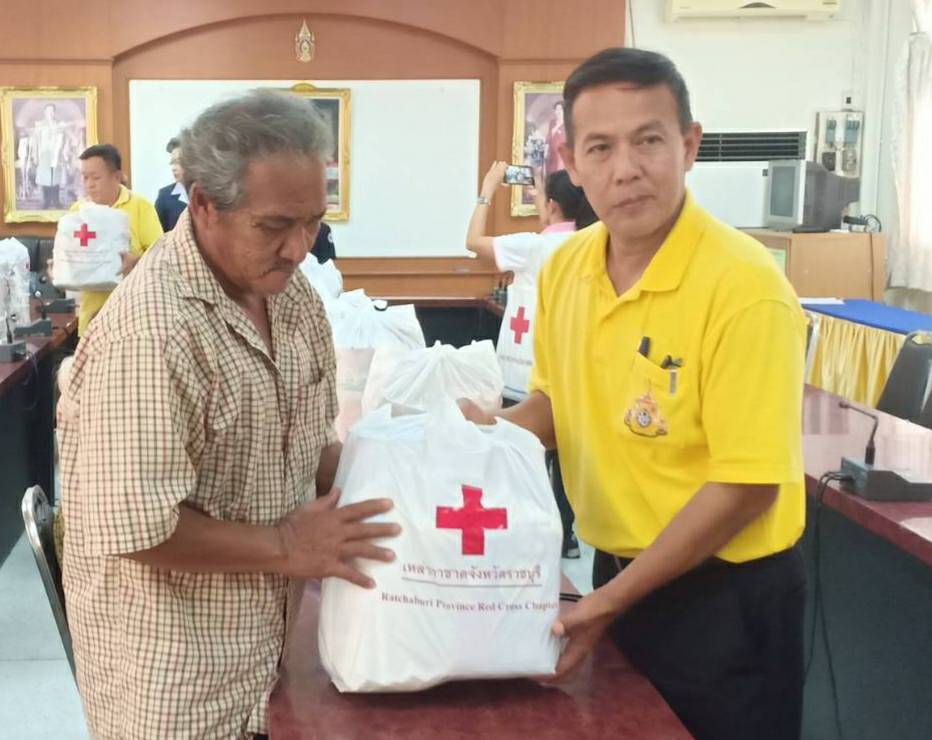 ราชบุรี กาชาดมอบถุงยังชีพให้ชาวอำเภอโพธารามที่เดือดร้อนจากภัยพิบัติ ฝนตกน้ำท่วมบ้าน