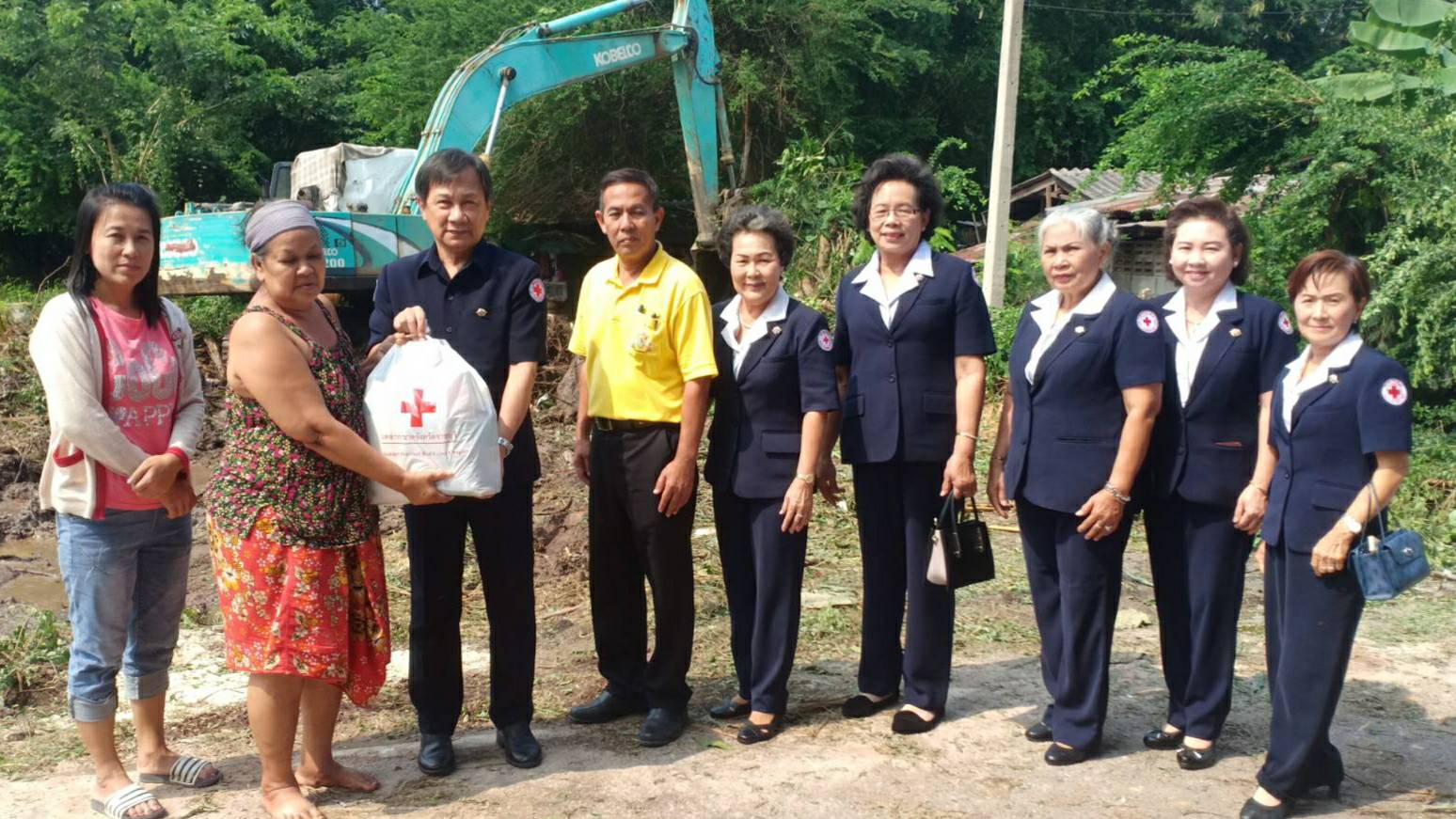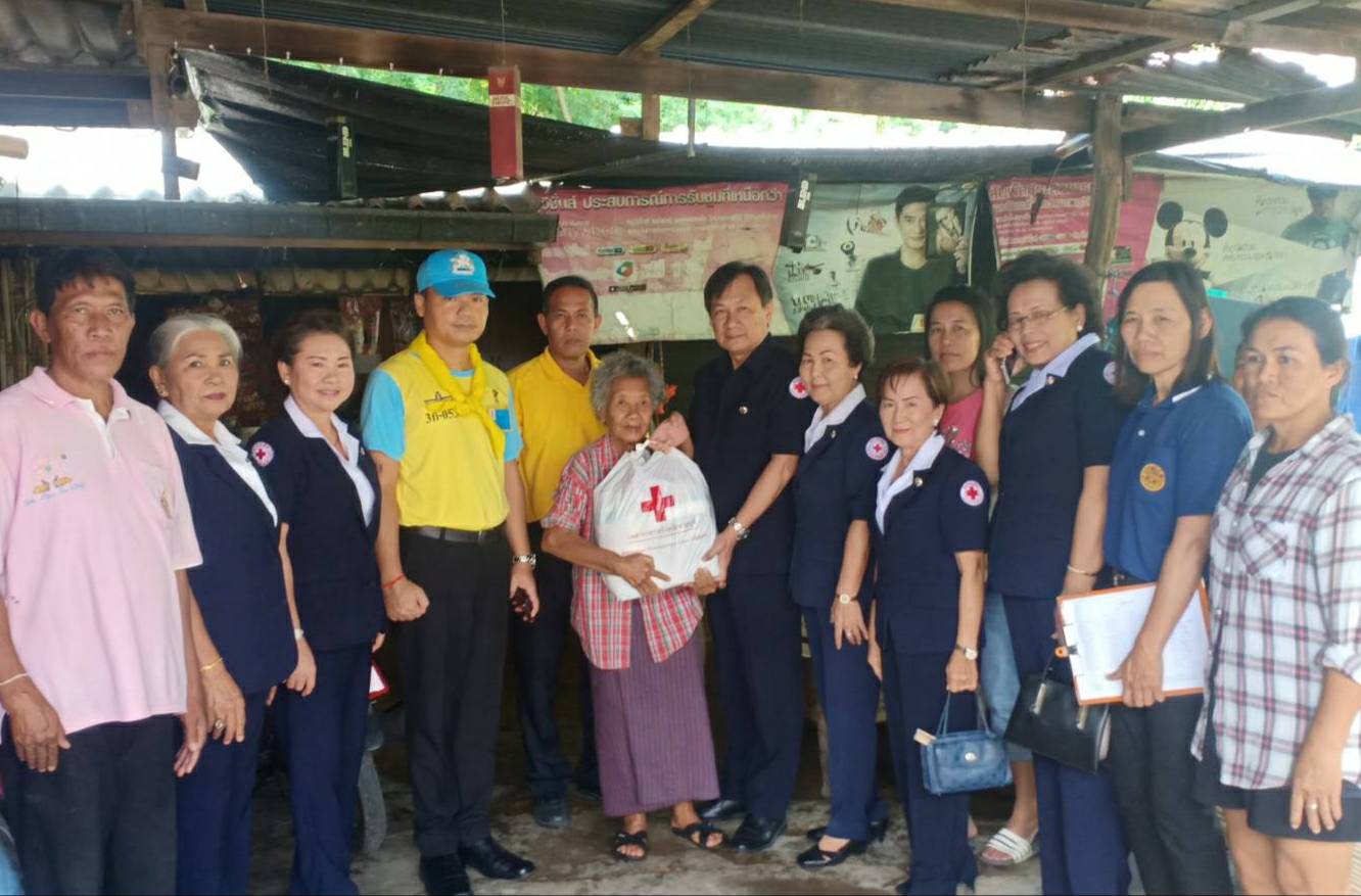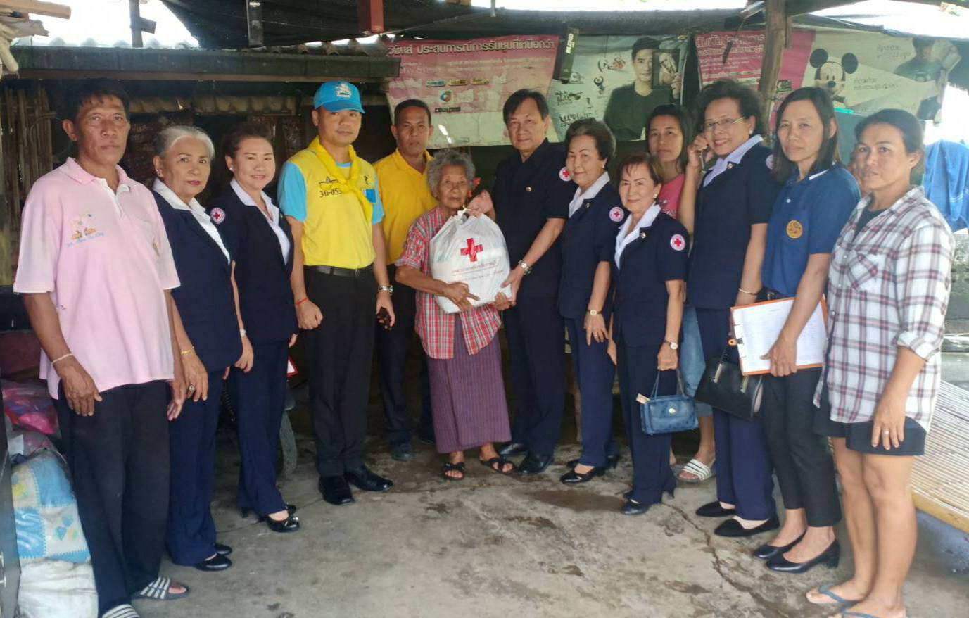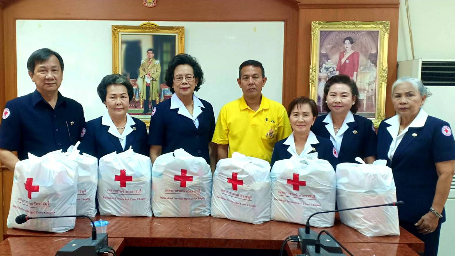 ราชบุรี กาชาดมอบถุงยังชีพให้ชาวอำเภอโพธารามที่เดือดร้อนจากภัยพิบัติ ฝนตกน้ำท่วมบ้าน