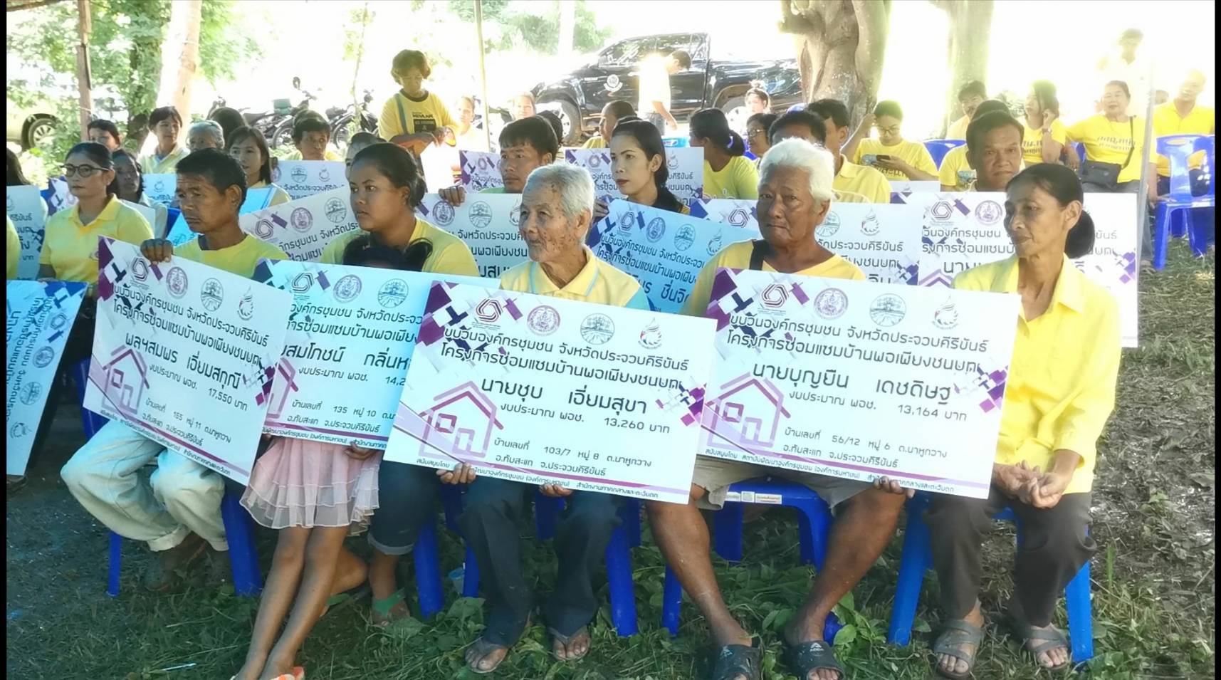 โดยมี นางวรรณา สีหาทัพ ผู้ช่วยผู้อำนวยการสำนักงานภาคกลางและตะวันตก สถาบันพัฒนาองค์กรชุมชน ( องค์การมหาชน ) นายวัชรินทร์ จันทร์เดช ประธานคณะกรรมการประสานงานองค์กรชุมชนจังหวัดประจวบคีรีขันธ์ นายสราวุธ ทอดสนิท ประธานชมรมกำนันผู้ใหญ่บ้านอำเภอทับสะแก นายทวีศักดิ์ จุลเนียม คณะประสานงานกระบวนการองค์กรชุมชนอำเภอทับสะแก พร้อม หัวหน้าส่วนราชการ กำนัน ผู้ใหญ่บ้าน ผู้นำชุมชน และชาวทับแกร่วมพิธี นายทวีศักดิ์ จุลเนียม คณะประสานงานกระบวนการองค์กรชุมชนอำเภอทับสะแก กล่าวว่า ในปี พ.ศ. 2560 – 2562 อำเภอทับสะแกได้รับการสนับสนุนงบประมาณจากสถาบันพัฒนาองค์กรชุมชน( องค์การมหาชน ) ให้ซ่อมแซมสร้างบ้านตามโครงการบ้านพอเพียงชนบทโดยจำแนกครัวเรือนที่ได้รับการสนับสนุนในแต่ละปีดังนี้ พ.ศ.2560 ได้รับการสนับสนุนจำนวน 2 ตำบล 33 ครัวเรือน เป็นจำนวนเงิน 594,000 บาท ปี 2561 ได้รับการสนับสนุนจำนวน 6 ตำบล 36 ครัวเรือน เป็นจำนวนเงิน 908,412 บาท ปี 2562 ได้รับการสนับสนุนจำนวน 6 ตำบล 38 ครัวเรือน เป็นจำนวนเงิน 524,781 บาท