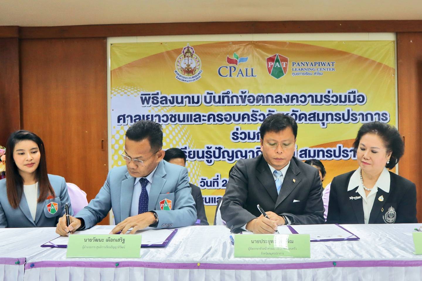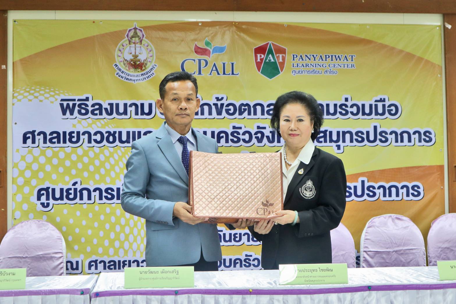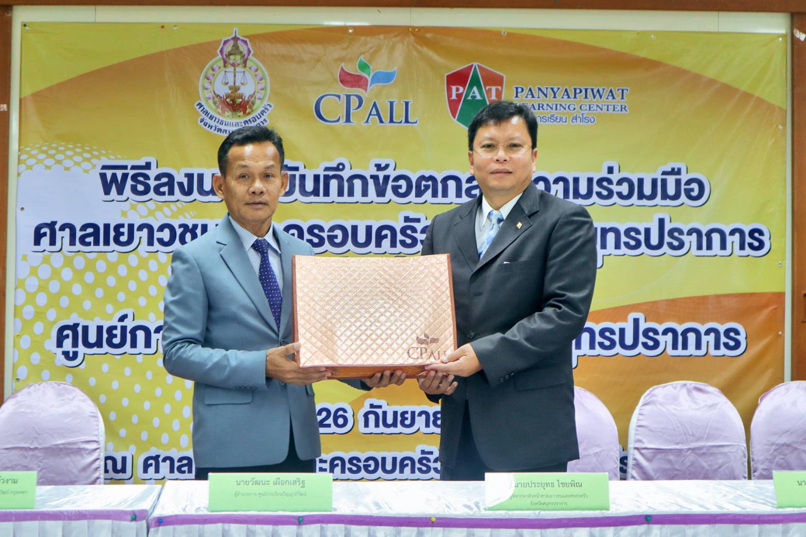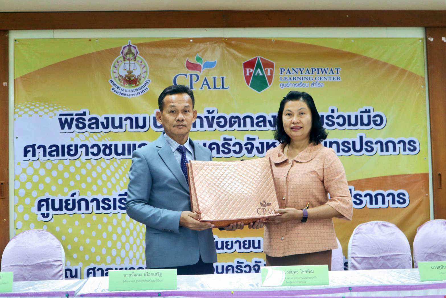 ที่ศูนย์การเรียนปัญญาภิวัฒน์ สำโรง จ.สมุทรปราการ ได้จัดพิธีลงนามบันทึกข้อตกลงว่าด้วยการมีส่วนร่วมของเครือข่ายในด้านการศึกษา การบำบัด แก้ไขฟื้นฟูและอาชีพสำหรับเด็กและเยาวชน ระหว่างศาลเยาวชนและครอบครัวจังหวัดสมุทรปราการ กับ บมจ.ซีพีออลล์ ซึ่งศูนย์การเรียนปัญญาภิวัฒน์ สำโรงเป็นผู้ดำเนินงาน โดยนายประยุทธ ไชยพิณ ผู้พิพากษาหัวหน้าศาลเยาวชนและครอบครัวจังหวัดสมุทรปราการ ลงนามร่วมกับนายวัฒนะ เผือกเสริฐ รองผู้จัดการทั่วไป บมจ.ซีพีออลล์ โอกาสนี้ นางสุนันทา เตียสุวรรณ์ ประธานผู้พิพากษาสมทบศาลเยาวชนและครอบครัวจังหวัดสมุทรปราการ พร้อมด้วยผู้พิพากษาสมทบจำนวน60 คนร่วมในพิธี ความร่วมมือดังกล่าว บมจ.ซีพีออลล์ได้มอบทุนการศึกษาระดับประกาศนียบัตรวิชาชีพ (ปวช.) สาขาธุรกิจค้าปลีก