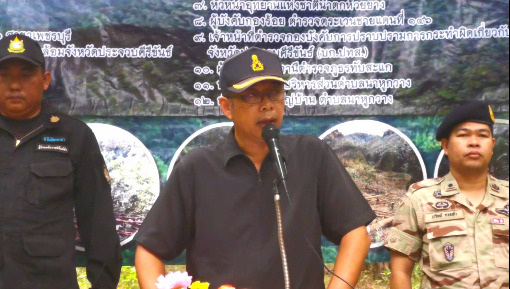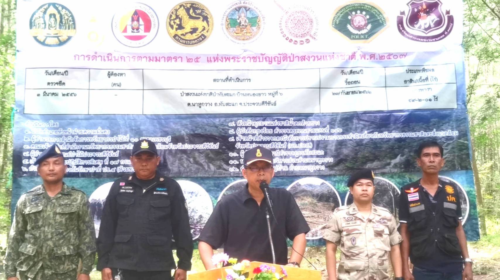 โดยมี นายบุญฤทธิ์ ลิ้มฉุ้น ผู้อำนวยการศูนย์ป่าไม้ประจวบคีรีขันธ์ พร้อมกำลัง ฝ่ายปกครองอำเภอทับสะแก เจ้าหน้าที่ตำรวจ สภ.ทับสะแก เจ้าหน้าที่ตำรวจตระเวนชายแดน ที่ 1463 เจ้าหน้าที่กองบังคับการปราบปรามการกระทำความผิดเกี่ยวกับ ทรัพยากรธรรมชาติและสิ่งแวดล้อมจังหวัดประจวบคีรีขันธ์ (บก.ปทส.) เจ้าหน้าที่อุทยานแห่งชาติน้ำตกห้วยยาง เจ้าหน้าที่หน่วยปฏิบัติการพิเศษที่ 17 กรมป่าไม้ หน้าที่หน่วยป้องกันรักษาป่าที่ ปข. 4 ห้วยทราย เจ้าหน้าที่ศูนย์ป่าไม้ประจวบคีรีขันธ์ ร่วมปฏิบัติการ นายบุญฤทธิ์ลิ้น ลิ้มฉุ้น ผู้อำนวยการศูนย์ป่าไม้ประจวบคีรีขันธ์ กล่าวว่า สำหรับการใช้ มาตรา 25 แห่งพระราชบัญญัติป่าสงวนแห่งชาติ พ. ศ. 2507 ในเขตป่าสงวนแห่งชาติผืนป่าทับสะแก จำนวน 1 แปลงเนื้อที่ 59 ไร่ 2 งาน 1 ตารางวา ไม่พบผู้กระทำความผิดในที่เกิดเหตุ ซึ่งผู้บุกรุกครอบครองปลูกยางพารา เจ้าหน้าที่หน่วยป้องกันรักษาป่าที่ ปข. 3 อ่างทอง ได้ทำการตรวจยึด เมื่อวันที่ 3 สิงหาคม 2556 และแจ้งความร้องทุกข์กับพนักงานสอบสวน สภ.ทับสะแก เพื่อยับยั้งความเสียหายแก่ผืนป่า เจ้าหน้าที่ป่าไม้จึงได้ เสนอนายอำเภอทับสะแก