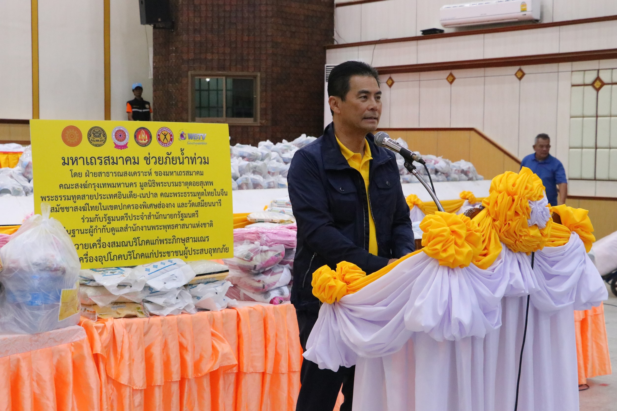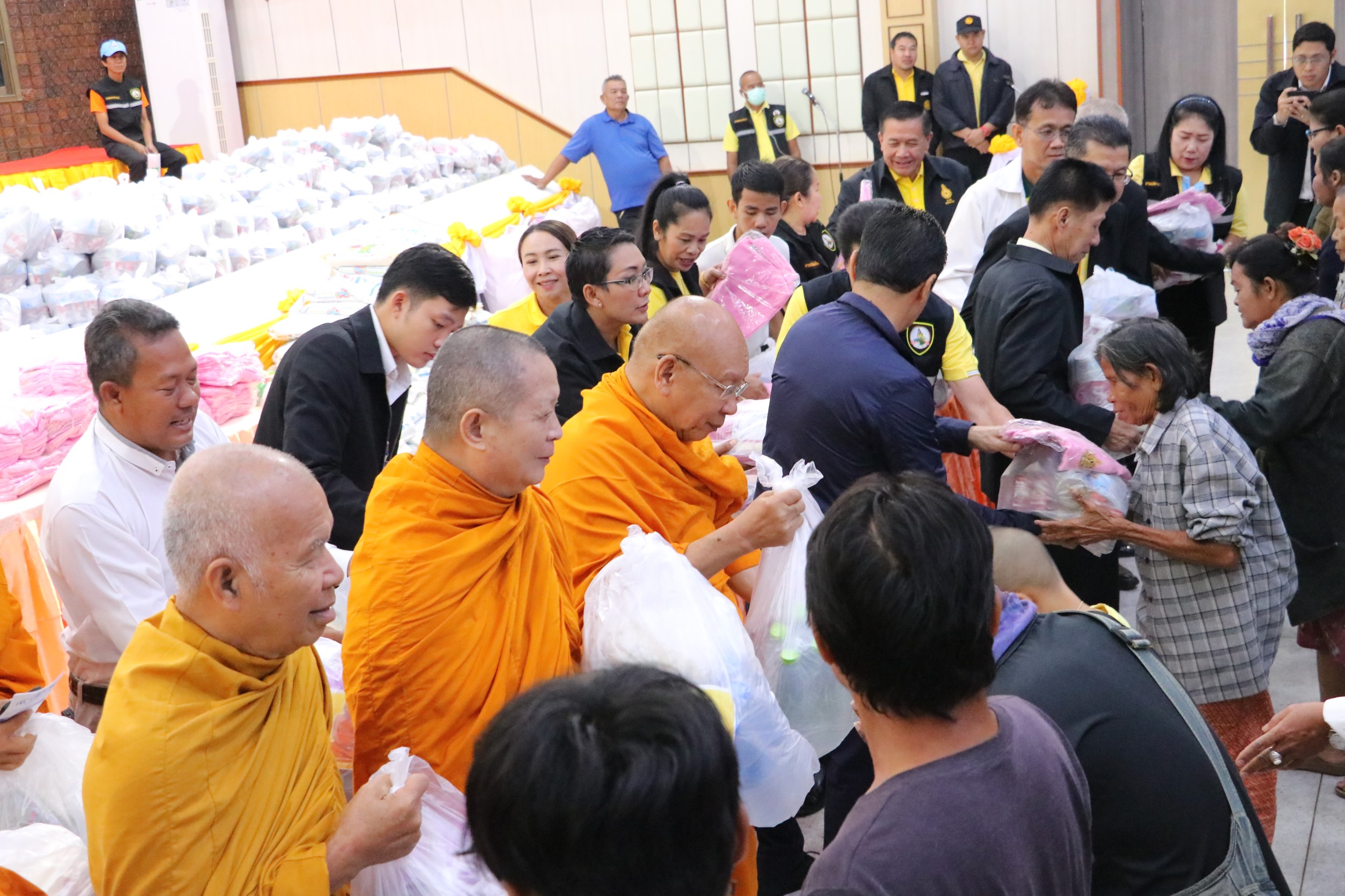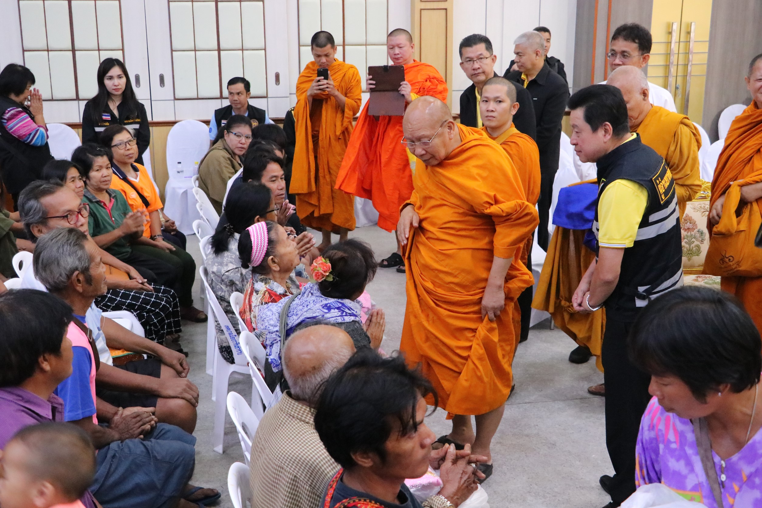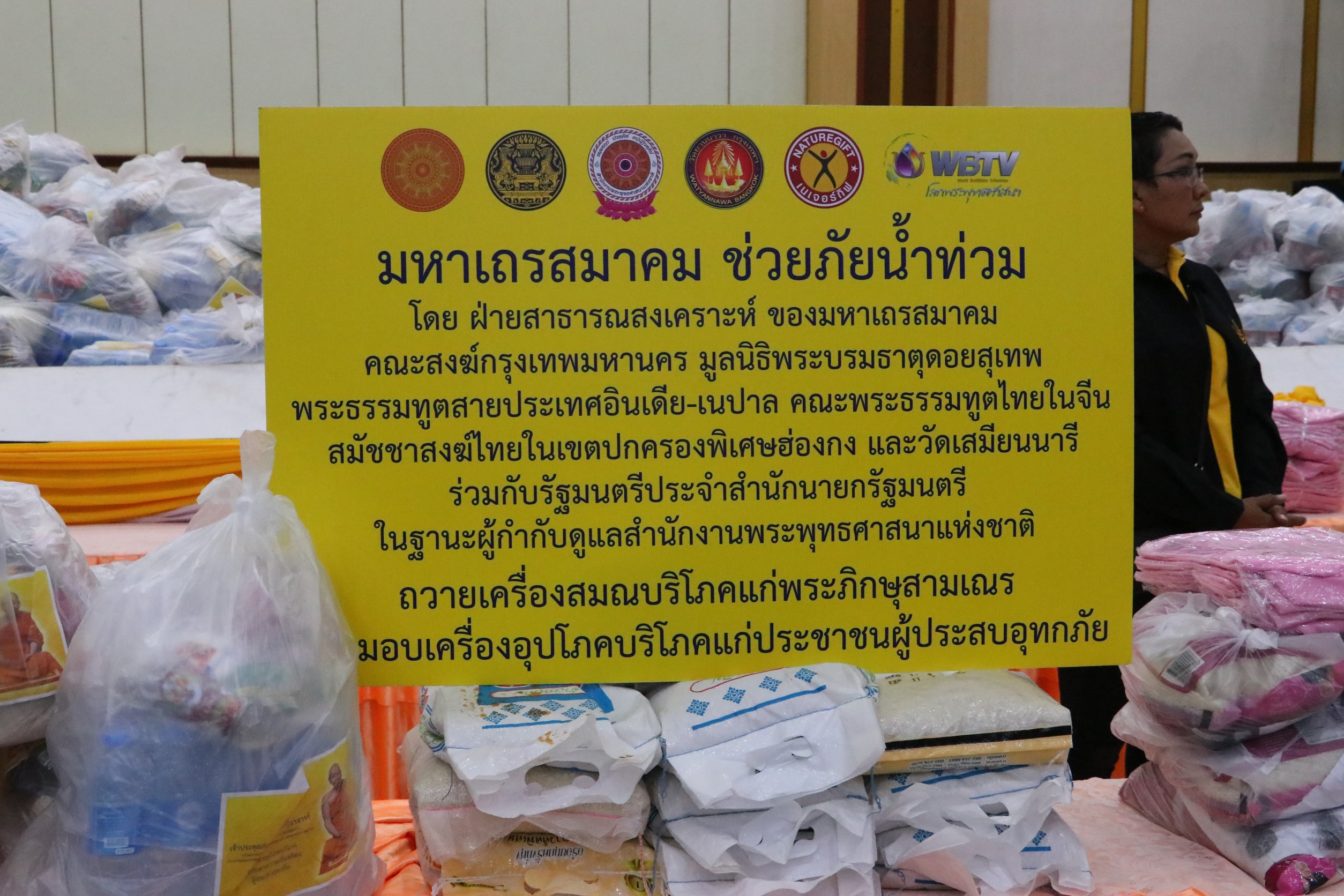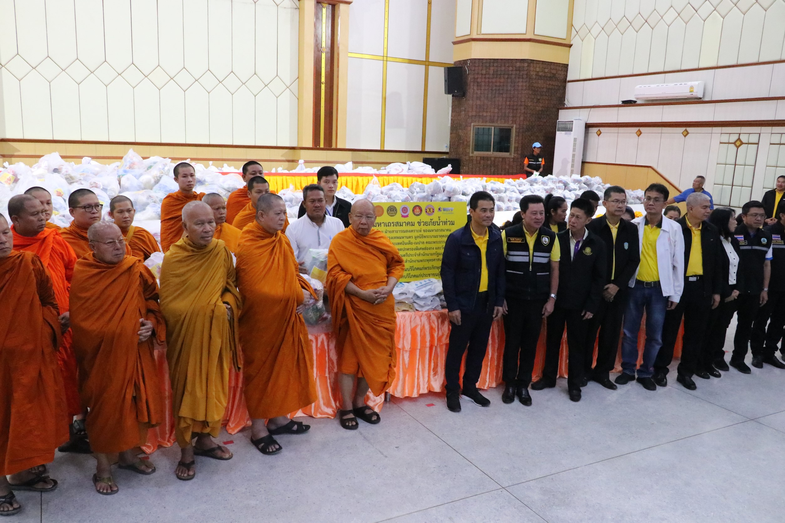 ที่ ศาลาประชาวาริน อ.วารินชำราบ จ.อุบลราชธานี เจ้าประคุณสมเด็จพระมหาธีราจารย์ กรรมการมหาเถรสมาคม เจ้าอาวาสวัดยานนาวา ประธานคณะกรรมการฝ่ายสาธารณสงเคราะห์ มหาเถรสมาคม และ นายเทวัญ ลิปตพัลลภ รัฐมนตรีประจำสำนักนายกรัฐมนตรี ได้ตรวจเยี่ยม มอบถุงยังชีพแก่ผู้ประสบอุทกภัยชาวอุบลราชธานี “มหาเถรสมาคม ช่วยภัยน้ำท่วม” จำนวน 600 ชุด โดยมี นายจีระชัย ไกรกังวาร นายกเทศมนตรีเมืองวารินชำราบ รายงานสถานการณ์ในพื้นที่
