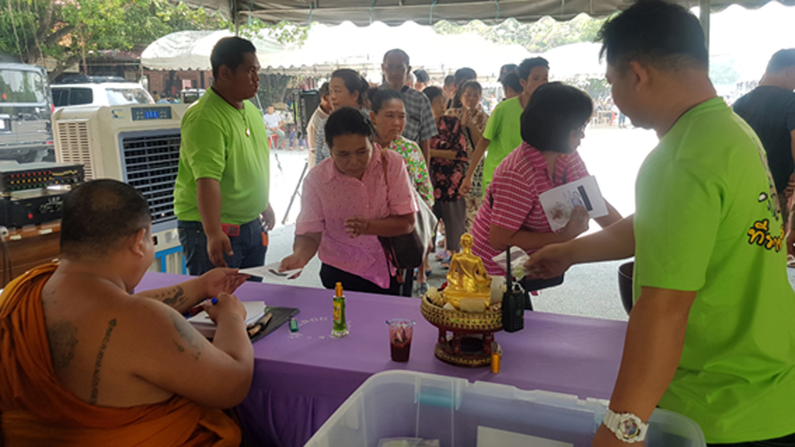 ที่วัดพระลอย ต.รั้วใหญ่ อ.เมืองสุพรรณบุรี พระปลัดธนิตย์ จนฺทิโก (หลวงพี่เบียร์) เจ้าอาวาสวัดบางปลาหมอ อ.เมือง จ.สุพรรณบุรี ได้จัดพิธีทำบุญถวายภัตตาหารเพลแด่พระสงฆ์ และทอดผ้าป่าสามัคคีประจำเดือน มีพระครูศรีรัตนาภิวัฒน์ รองเจ้าคณะอำเภอเมืองสุพรรณบุรี เจ้าอาวาสวัดพระลอย อาจารย์เดชา ศิริภัทร ประธานมูลนิธิข้าวขวัญสุพรรณบุรี พร้อมเจ้าหน้าที่มูลนิธิข้าวขวัญสุพรรณบุรี รวมทั้งผู้ป่วยโรคมะเร็งและโรคทั่วไป และประชาชนจากทั่วสารทิศ กว่า 2,000 คน มาร่วมทำบุญทอดผ้าป่ากันอย่างเนืองแน่น ผู้ป่วยทั้งโรคมะเร็งโรคไตและโรคทั่วไปได้มาเข้าคิวลงทะเบียนเพื่อรับแจกน้ำมันมะพร้าวสกัดเย็น ผู้ป่วยต่างมีความหวังว่าน้ำมันมะพร้าวสกัดเย็นนั้นมีสรรพคุณรักษาโรคได้หลายโรคและน้ำมันมะพร้าวสกัดเย็น สามารถต้านโรคมะเร็งและโรคอื่นๆได้ด้วย จึงเป็นความหวังของผู้ป่วยโรคต่าง ๆ จากทั่วประเทศเดินทางมารอรับแจก โดยทางวัดได้มีจิตอาสามาช่วยอำนวยความสะดวกและคอยแนะนำการใช้น้ำมันมะพร้าวสกัดเย็นให้กับผู้ป่วยที่มาเข้าคิวรอรับกว่า 2,000 คน