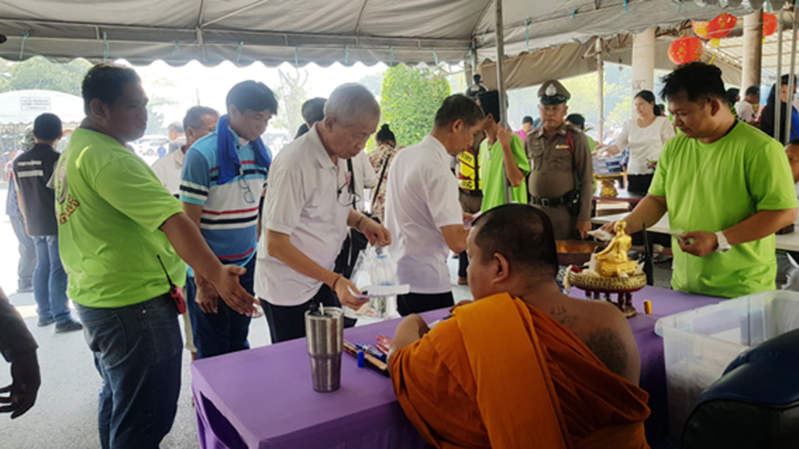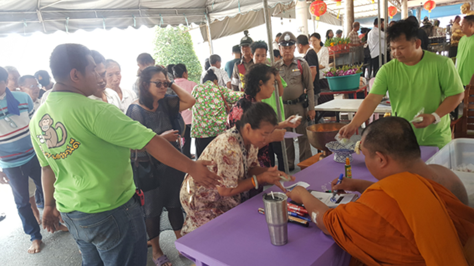 ซึ่งในงานได้มีประชาชนมีจิตศรัทราใจบุญนำเอาอาหาร คาว หวาน ก๋วยเตี๋ยวและน้ำดื่ม มาเลี้ยงให้ผู้ที่มาร่วมทำบุญและมารอรับแจกน้ำมันมะพร้าวสกัดเย็นได้รับประทานฟรีกันตลอดทั้งวัน ส่วนผู้ป่วยโรคมะเร็งและโรคไต ทางวัดจะให้แม่ครัวทำอาหาร เฉพาะที่ไม่ส่งผลกระทบต่อโรคมะเร็งและโรคไตให้กับผู้ป่วยได้รับประทานฟรี