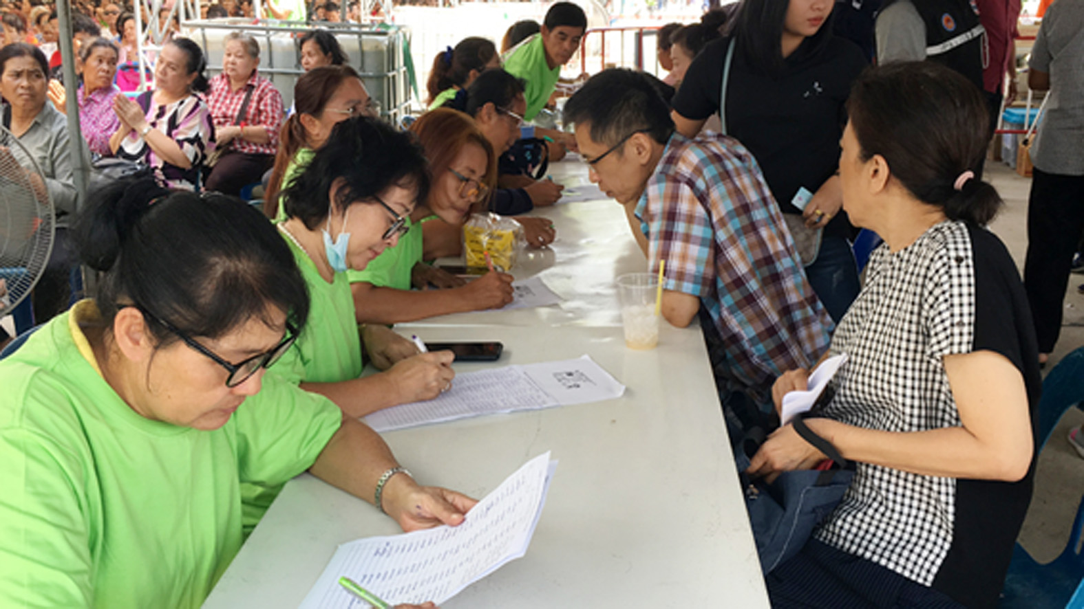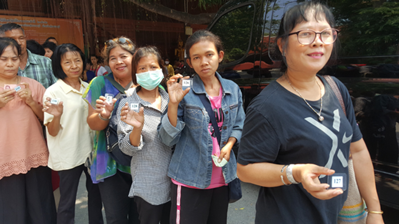 สุพรรณบุรี ผู้ป่วยกว่า2000รายแห่เข้าคิวรับแจกน้ำมันมะพร้าวสกัดเย็นแน่นวัดพระลอย