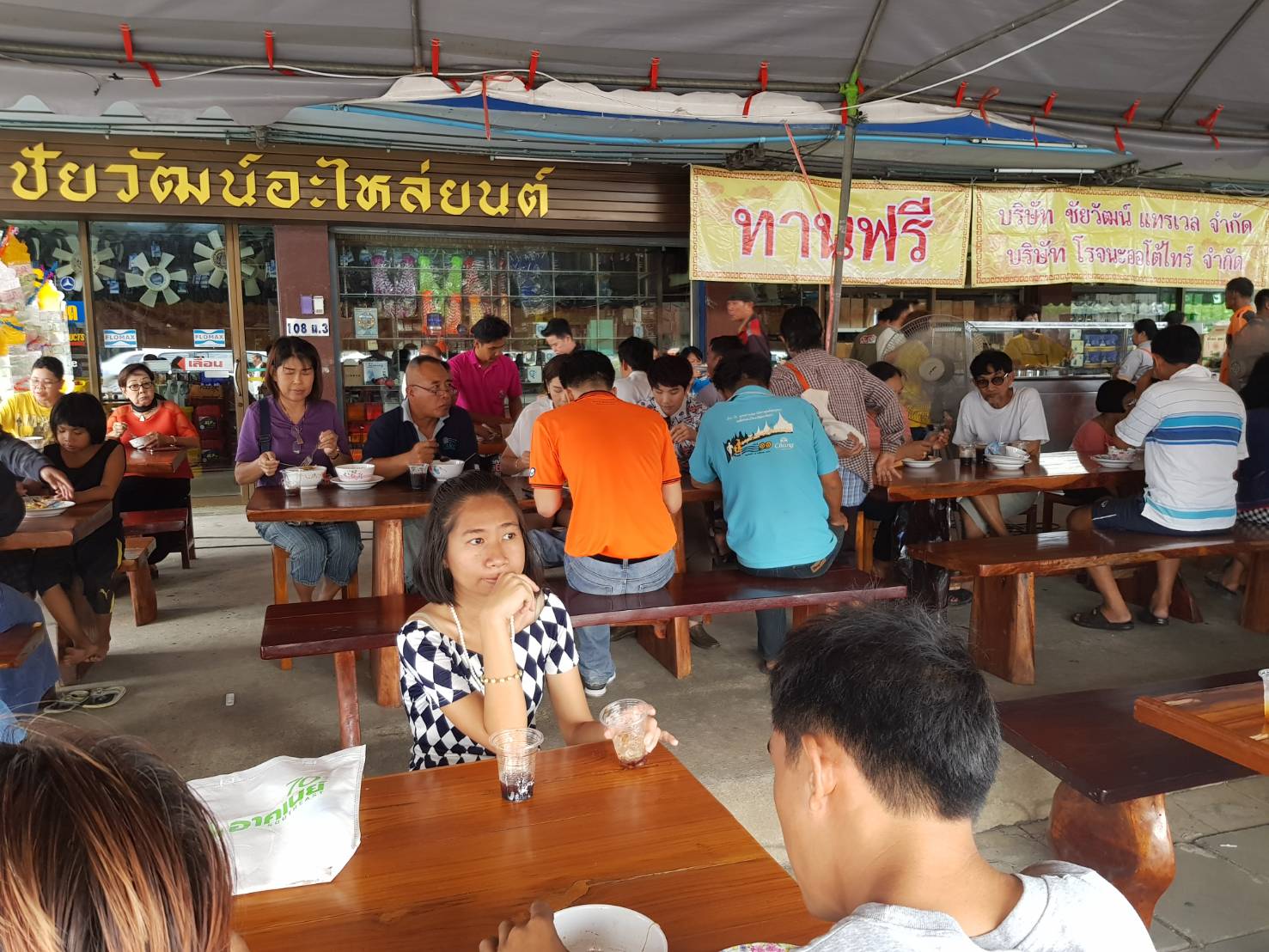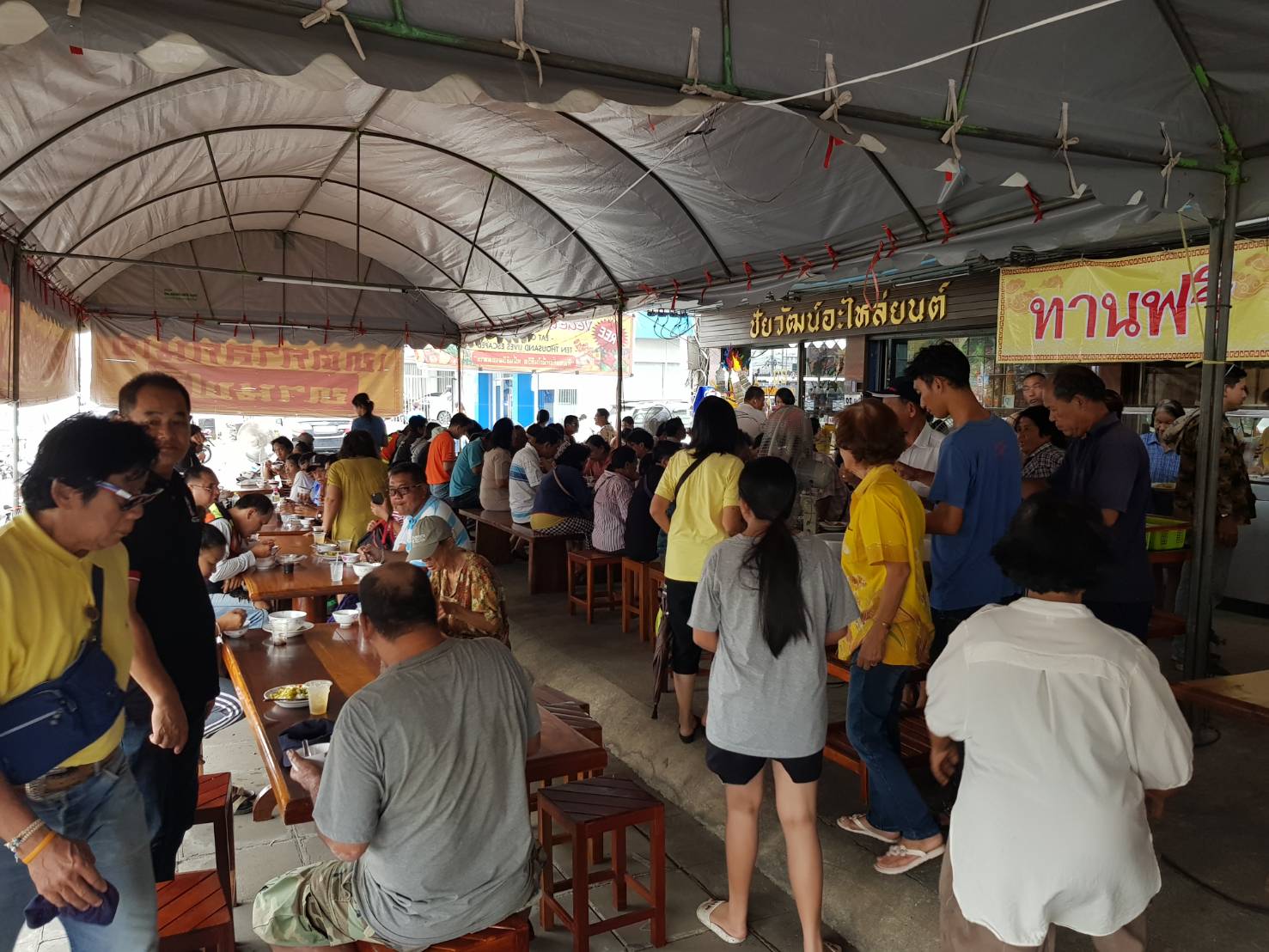 รวมทานอาหารเจกันเป็นจำนวนมากจนแน่น จะมีอาหารหลายๆอย่าง คอยต้อนรับ ให้ได้เลือก