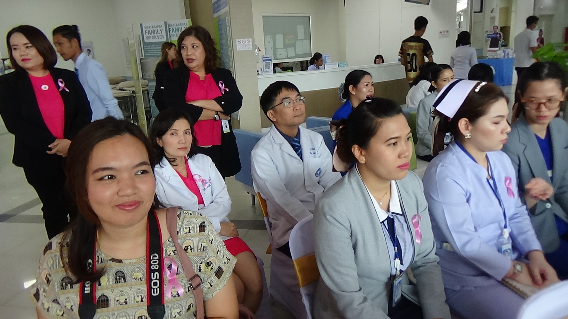 โดยร่วมกับสำนักงานสาธารณสุขจังหวัดตรังจัดโครงการรณรงค์ต้านภัยมะเร็งเต้านมสู้เพื่อเต้าต่อเนื่องเป็นปีที่ 2 ขึ้นในระหว่างวันที่ 1 ถึง 31 ตุลาคม 2562 ซึ่งเป็นเดือนแห่งการรณรงค์ต้านภัยมะเร็งเต้านมโลก เพื่อกระตุ้นเตือนให้ผู้หญิงกลางและจังหวัดใกล้เคียงหันมาใส่ใจป้องกันตนเองจากโรคมะเร็งเต้านมด้วยการตรวจดิจิตอลเมมโมแกรมและอัลตร้าซาวด์อย่างสม่ำเสมอ โดยเฉพาะกลุ่มผู้หญิงที่มีอายุเฉลี่ย 40 ปีขึ้นไป รวมถึงมีประวัติเคยเป็นมะเร็งเต้านมมะเร็งรังไข่หรือบุคคลในครอบครัวเคยเป็นมะเร็งเต้านมเป็นต้นเพื่อช่วยลดความเสี่ยงและเพิ่มโอกาสในการรักษาอย่างมีประสิทธิภาพ การตรวจคัดกรองมะเร็งเต้านมอย่างสม่ำเสมอ ถือเป็นสิ่งจำเป็นสำหรับผู้หญิงเพื่อป้องกันตนเองในเบื้องต้นเพราะหากตรวจพบตั้งแต่ระยะแรกก็จะเพิ่มโอกาสในการรักษาให้หายขาดได้ นอกจากนี้ยังต้องควบคุมปัจจัยที่ทำให้เกิดมะเร็งเต้านม ควบคุมน้ำหนักให้อยู่ในระดับที่เหมาะสมควบคุมระดับน้ำตาลในร่างกายคนสูบบุหรี่และใช้ฮอร์โมนเสริมในกรณีที่จำเป็นเพราะจากสถิติพบว่าคนที่ใช้ฮอร์โมนเสริมติดต่อกันเกิน 2 ปีจะเพิ่มอัตราการเป็นมะเร็งเต้านมมากขึ้น