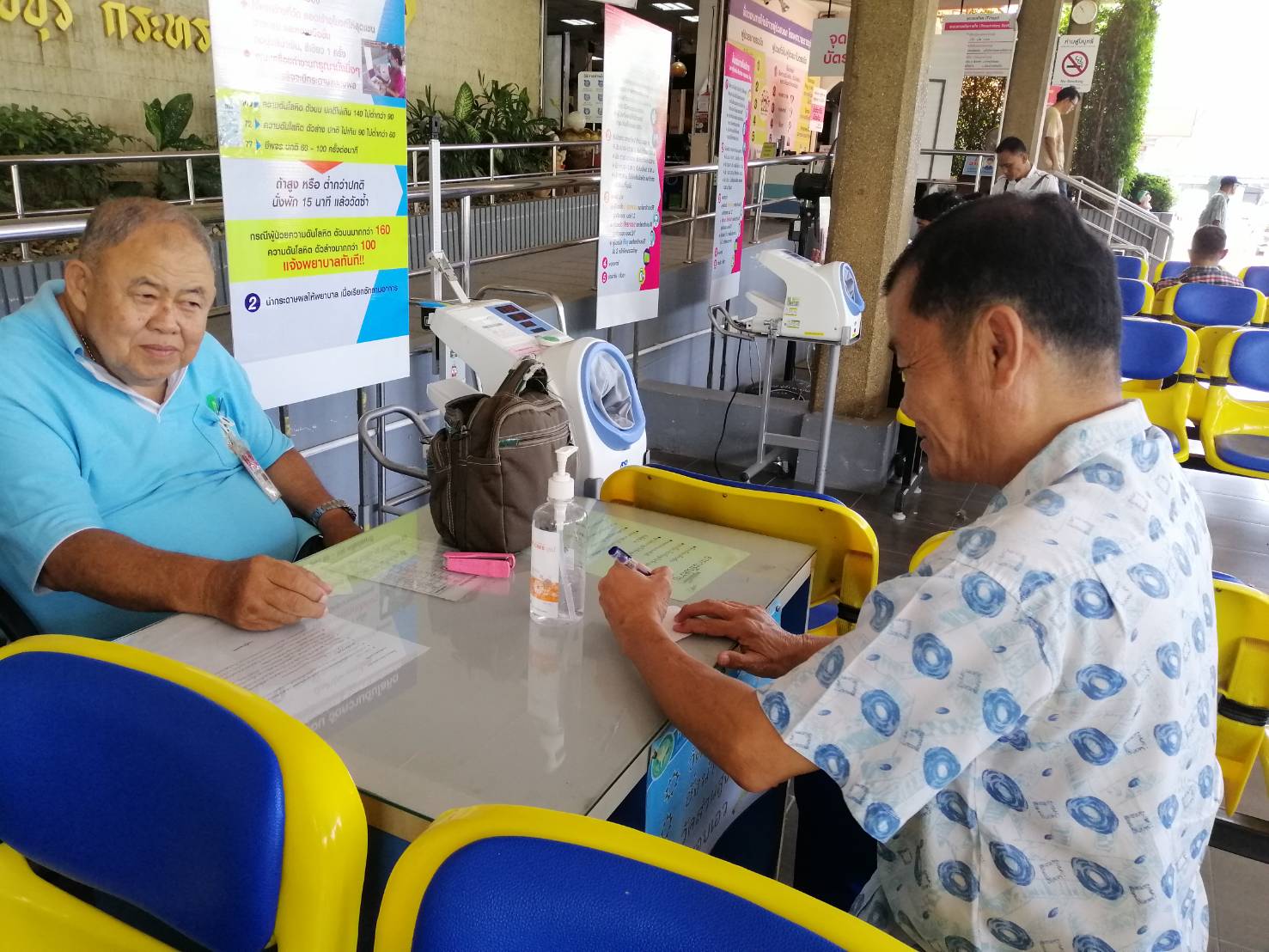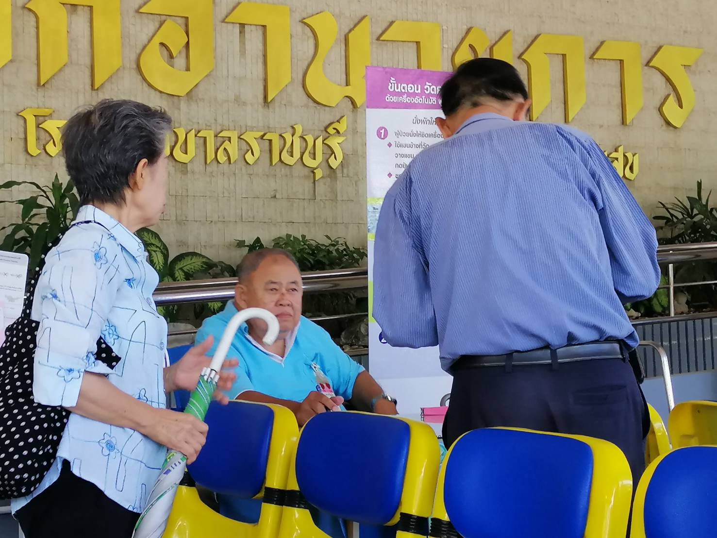 ที่หน้าตึกอำนวยการโรงพยาบลราชบุรี อดีตข้าราชการบำนาญร่วมกับชมรมผู้สูงอายุร่วมกันขับร้องเพลงพร้อมทั้งเชิญชวนประชาชนที่มารอพบแพทย์ให้ร่วมกันบริจาคเงินสมทบทุนเพื่อมอบให้แก่โรงพยาบาลราชบุรีนำไปซื้ออุปกรณ์การแพทย์