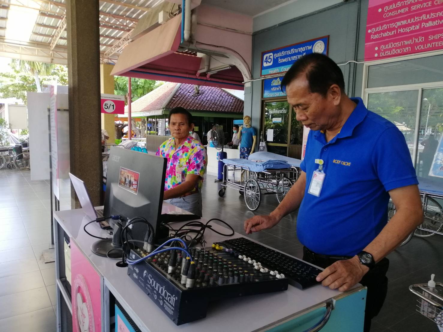 โดยจะมีกลุ่มข้าราชการบำนาญและผู้สูงอายุหลายๆคนที่มีเวลาว่างจะหมุนเวียนกันมาร่วมขับร้องเพลงเป็นประจำทุกวัน ทั้งนี้เพื่อเป็นการทำความดีด้วยหัวใจโดยไม่หวังผลตอบแทนอีกทั้งยังมีส่วนร่วมในการสร้างบุญสร้างกุศลให้แก่โรงพยาบาลราชบุรี ในครั้งนี้ด้วย.