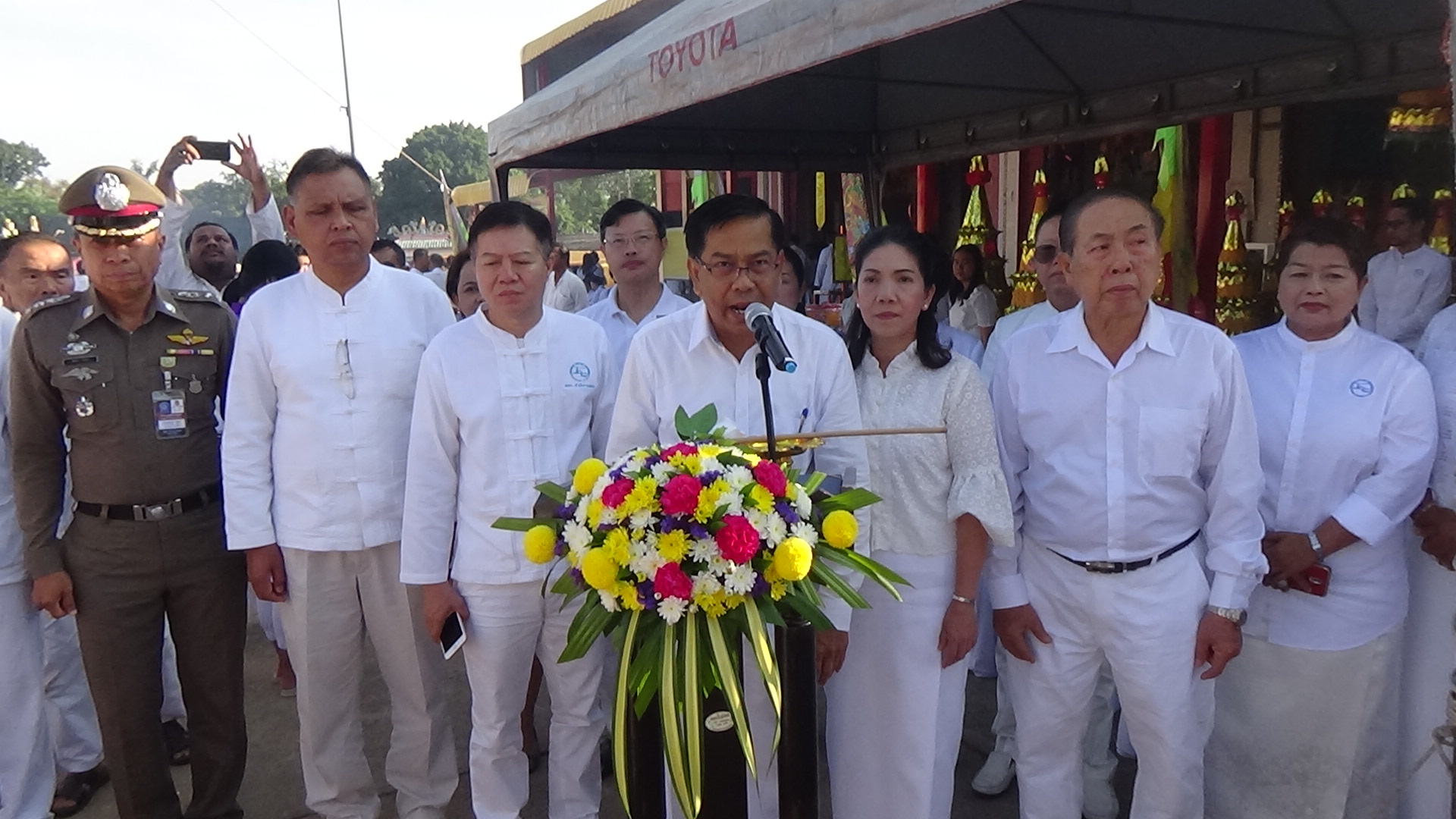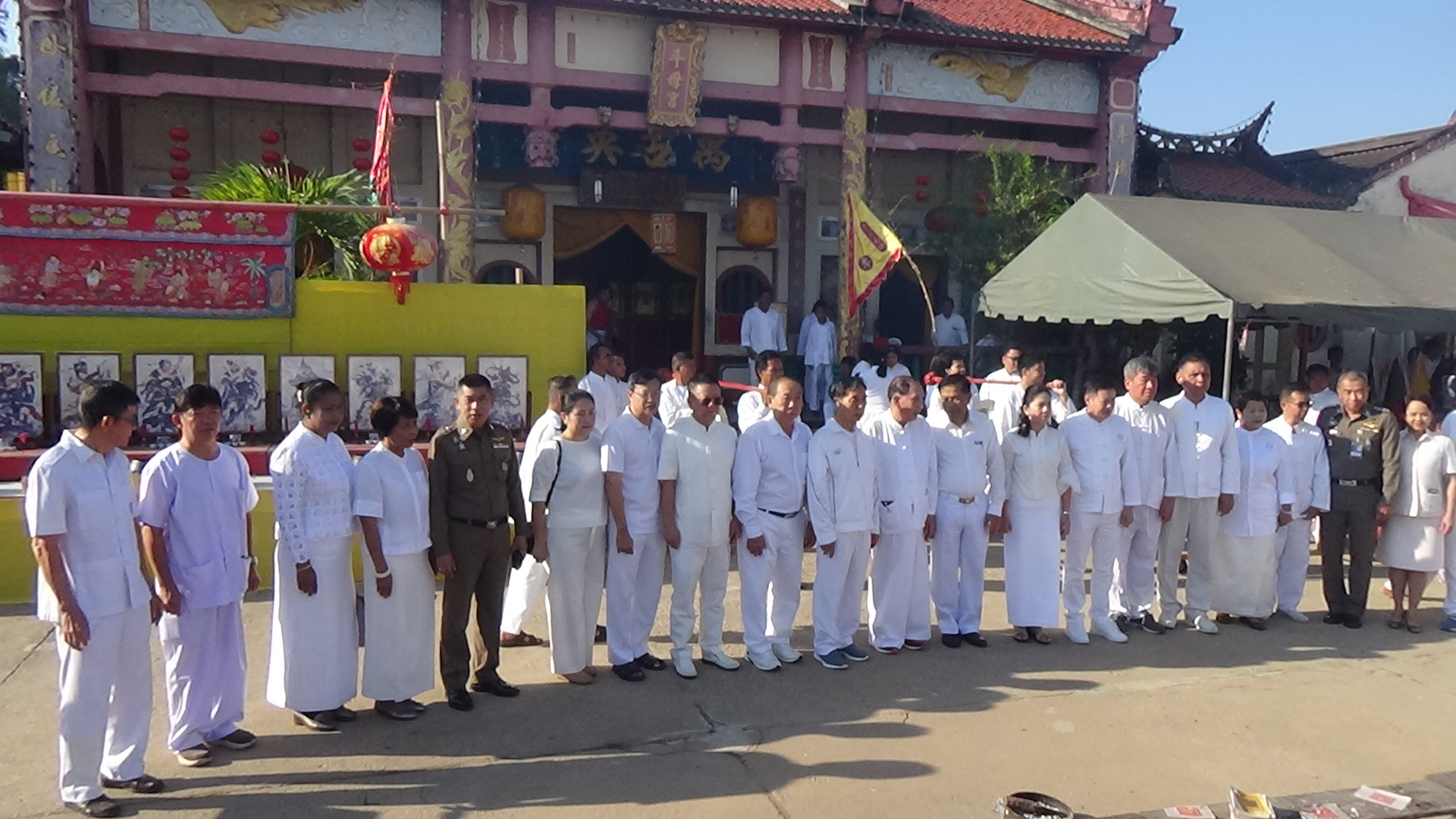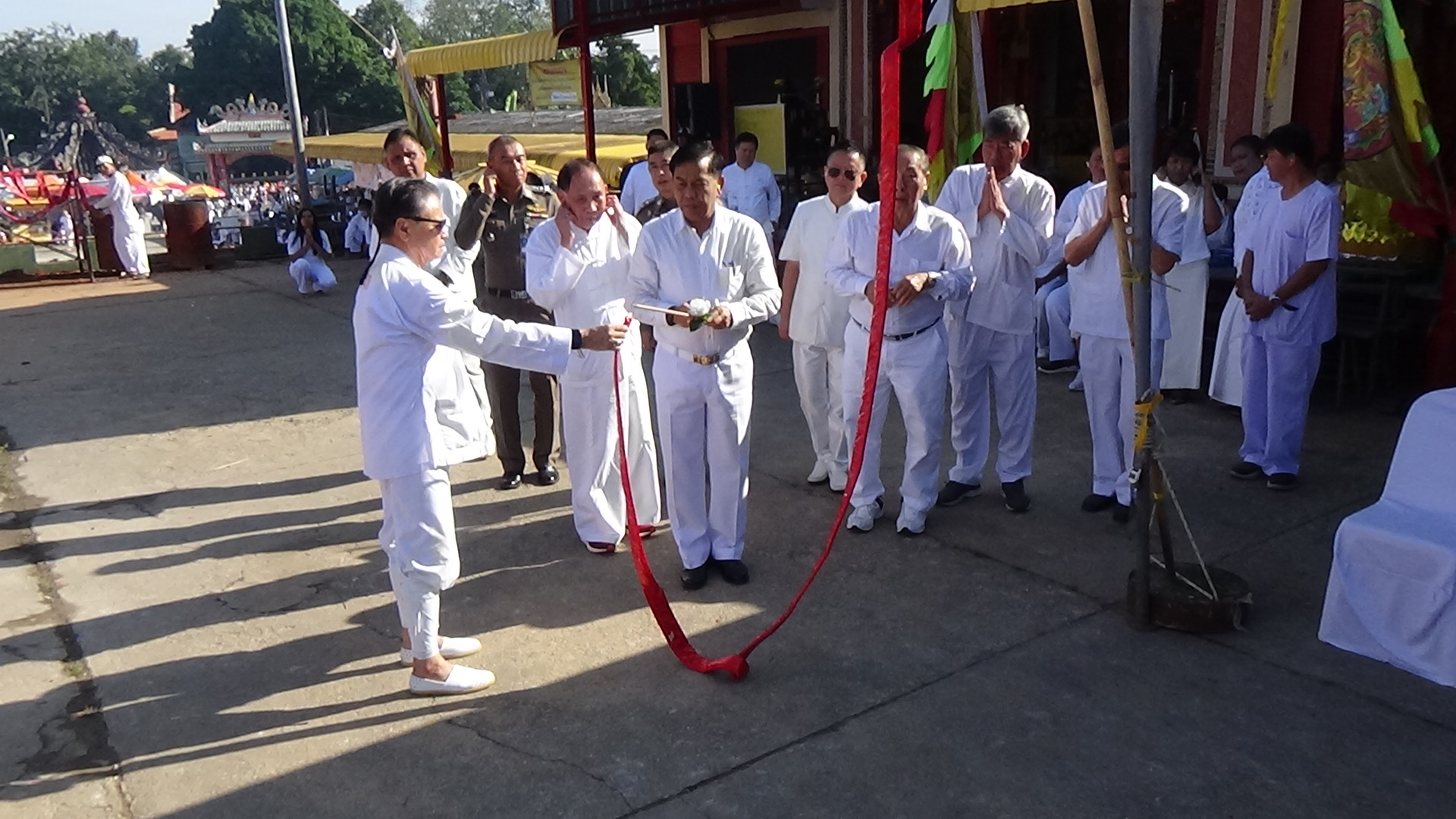 นายลือชัย เจริญทรัพย์ ผู้ว่าราชการจังหวัดตรัง เป็นประธานในในพิธีจุดประทัดสายแรกของศาลเจ้ากิวอ่องเอี่ย โดยมีด้วย พ.ต.อ.สันทัด วินสน รองผู้บังคับการตำรวจภูธรจังหวัดตรัง นางเอื้อจิตร เจริญทรัพย์ นายกเหล่ากาชาดจังหวัดตรัง นางสาวนันทวัน ศิริโภคพัฒน์ ผู้อำนวยการการท่องเที่ยวแห่งประเทศไทย สำนักงานตรัง พร้อมด้วยส่วนราชการ เ ร่วมในพิธีจุดประทัดสายแรกในงานประเพณีถือศีลกินเจของศาลเจ้ากิวอ่องเอี๋ย ซึ่งเป็นศาลเจ้าที่เก่าแก่ของจังหวัดตรัง ได้สืบทอดเทศกาลประเพณีถือศีลกินผักมายาวนานกว่า 100 ปี การถือศีลกินเจเป็นการชำระล้างร่างกายและจิตใจให้สะอาด โดยการละเว้นโลกียวัตร และถือศีลห้าโดยเคร่งรัด ไม่เบียดเบียนผู้อื่น ไม่เบียดเบียนสัตว์ สวดมนต์ทำสมาธิแผ่เมตตาจิต และขอพรเพื่อความเจริญก้าวหน้าของตนเองและครอบครัว หลังจากนั้น ได้มีการแห่องค์กิวอ่องไต่เต่ ซึ่งเป็นเทพเจ้าสูงสุดของศาลเจ้ากิวอ่องเอี่ย และเชิญองค์ศักดิ์สิทธิ์ต่างๆ ออกเยี่ยมลูกหลานผู้มีจิตศรัทธา หรือออกเที่ยวในเขตตัวเมืองเทศบาลนครตรัง โดยมีผู้ที่ถือศีลกินเจในชุดนุ่งขาวห่มขาว ให้ความสนใจออกมากราบไหว้องค์ศักดิ์สิทธิ์ และร่วมขบวนแห่องค์ศักดิ์สิทธิ์ กันเป็นจำนวนมาก