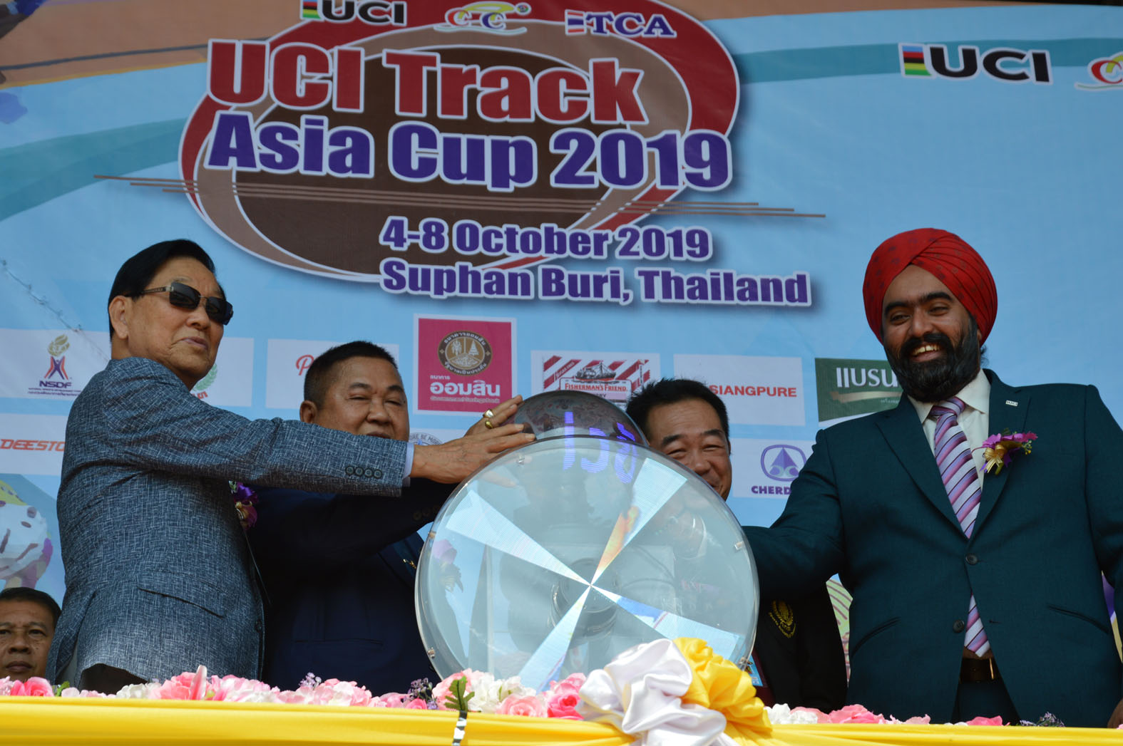โดยมีนายนิมิต วันไชยธนวงศ์ ผู้ว่าราชการจังหวัดสุพรรณบุรี เป็นประธานเปิดการแข่งขันการแข่งขันจักรยานประเภทลู่นานาชาติ รายการ UCI Track Asia Cup 2019” โดยมี พลเอกเดชา เหมกระศรี นายกสมาคมกีฬาจักรยานแห่งประเทศไทย ในพระบรมราชูปถัมภ์, ดาโต๊ะ อามาจิต ซิงห์ วิล คณะกรรมการบริหารสหพันธ์จักรยานนานาชาติ (ยูซีไอ), มร.ชอย บู วูง อดีตคณะกรรมการบริหารสหพันธ์จักรยานนานาชาติ และที่ปรึกษากิตติมศักดิ์สมาคมกีฬาจักรยานแห่งประเทศไทย ส่วนการแข่งขันวันแรกมีชิง 9 เหรียญทอง ผลดังนี้ สแครตช์ 10 กม. เยาวชนชาย วิริยะ ยะป๋า นักปั่นทีมชาติไทย คว้าแชมป์ไปครองสำกเร็จ โดยเป็นเหรียญทองแรกของทัพนักปั่นไทย ส่วนที่ 2 ได้แก่ กันตภณ คุณคุ้มภัย นักปั่นจากทีมไพรม์ 19 และที่ 3 ราคิมบาเยฟ เบห์โซเดค จากอุซเบกิสถานคีริน ทั่วไปหญิง