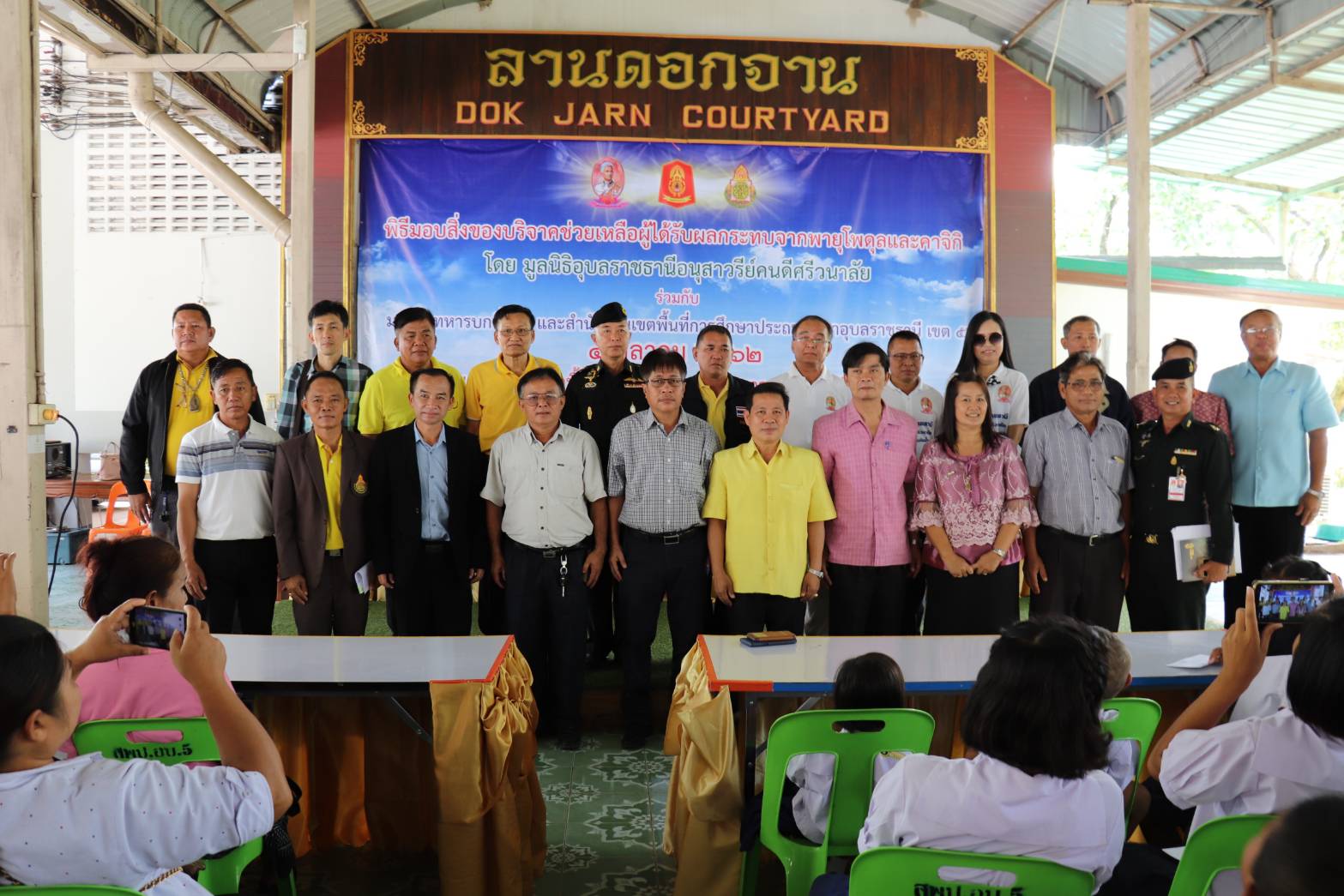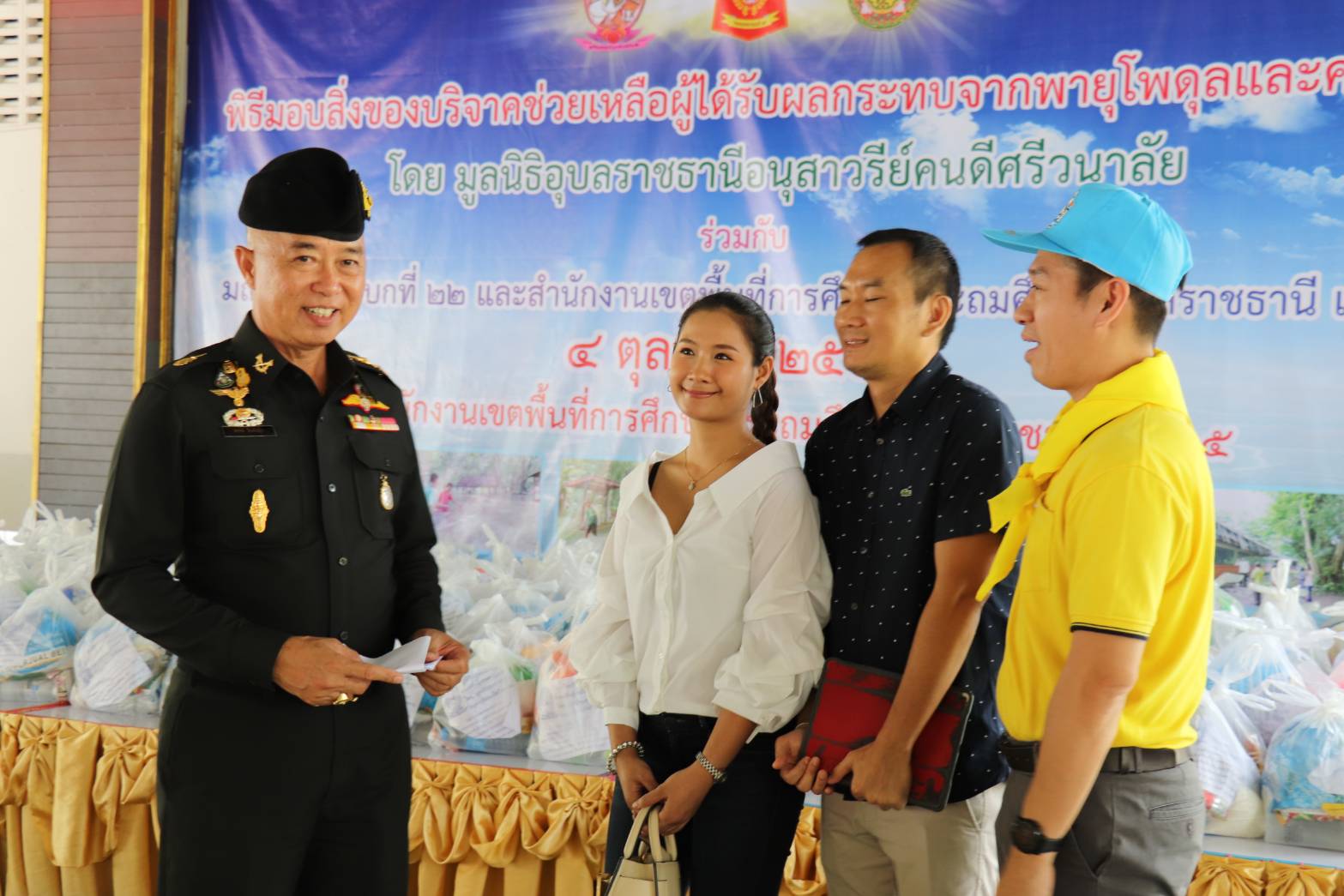 วันที่ 4 ตุลาคม 2562เวลา 09.00 นาฬิกา พลตรี อรรถ สิงหัษฐิต รองแม่ทัพภาคที่ 2/ประธานมูลนิธิอุบลราชธานีอนุสาวรีย์คนดีศรีวนาลัย นาย นิมิต สิทธิไตรย์ ประธานหอการค้า อุบลราชธานี/รองประธานมูลนิธิฯ พลตรีพิชิต วันทา คุณธนชนก สุริยเดชสกุล คุณ วิศิษฐ์ สิงหัษฐิต คุณ มานิต จงจิตต์เวชกุล ผู้จัดการบริษัท เอ็มเจมอร์เตอร์ คุณ สุวิจักร ธนพลโกวิทย์ คณะวิทยาศาสตร์และเทคโนโลยมหาวิทยาลัยธรรมศาสตร์ มอบทุนการศึกษาให้กับเด็กนักเรียนที่ครอบครัวประสบอุทกภัย เขตพื้นที่การศึกษาประถมศึกษาอุบลราชธานี เขต 5และมอบถุงยังชีพให้กับราษฎรที่บ้านเรือนประสบอุกทกภัย