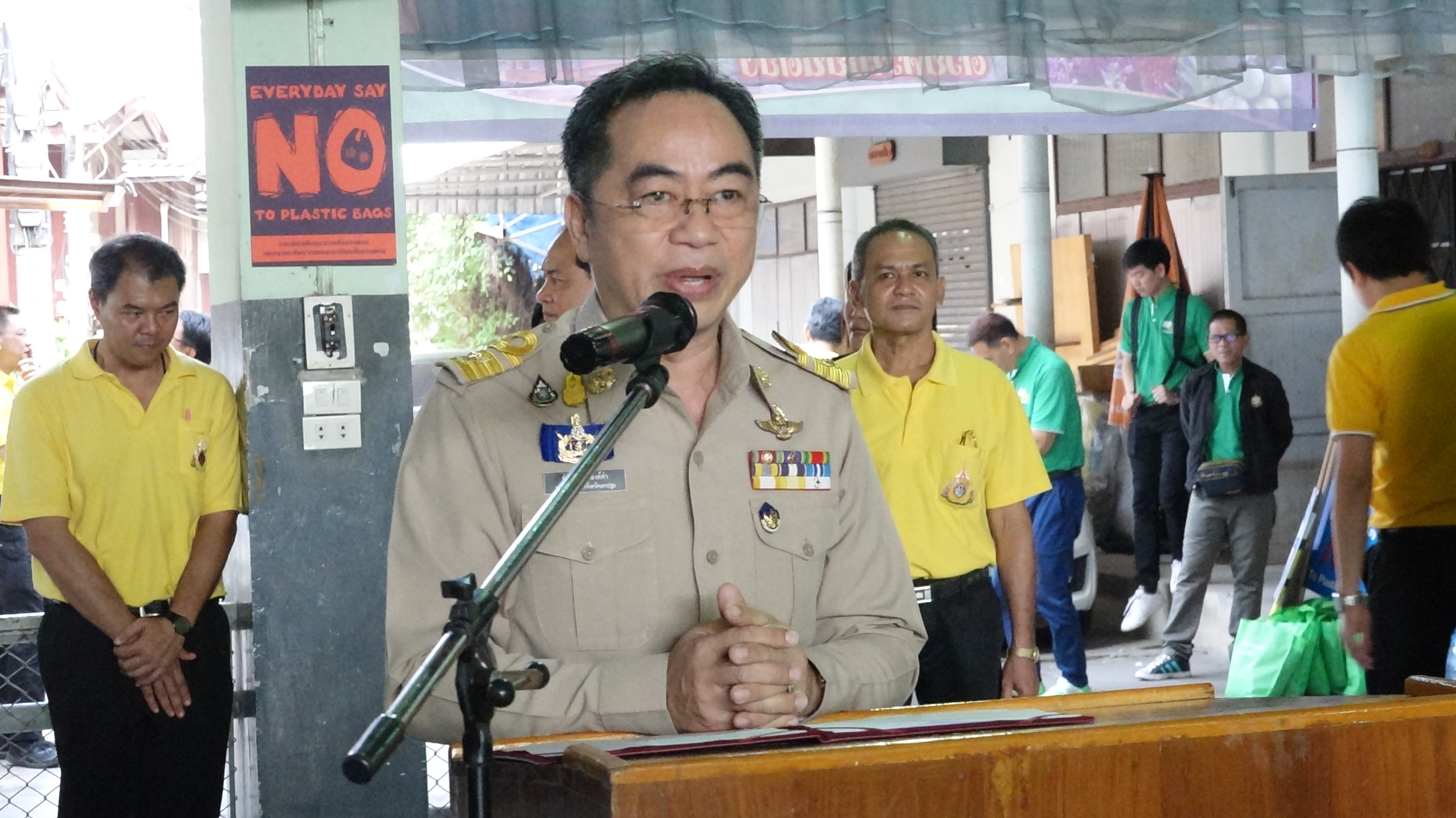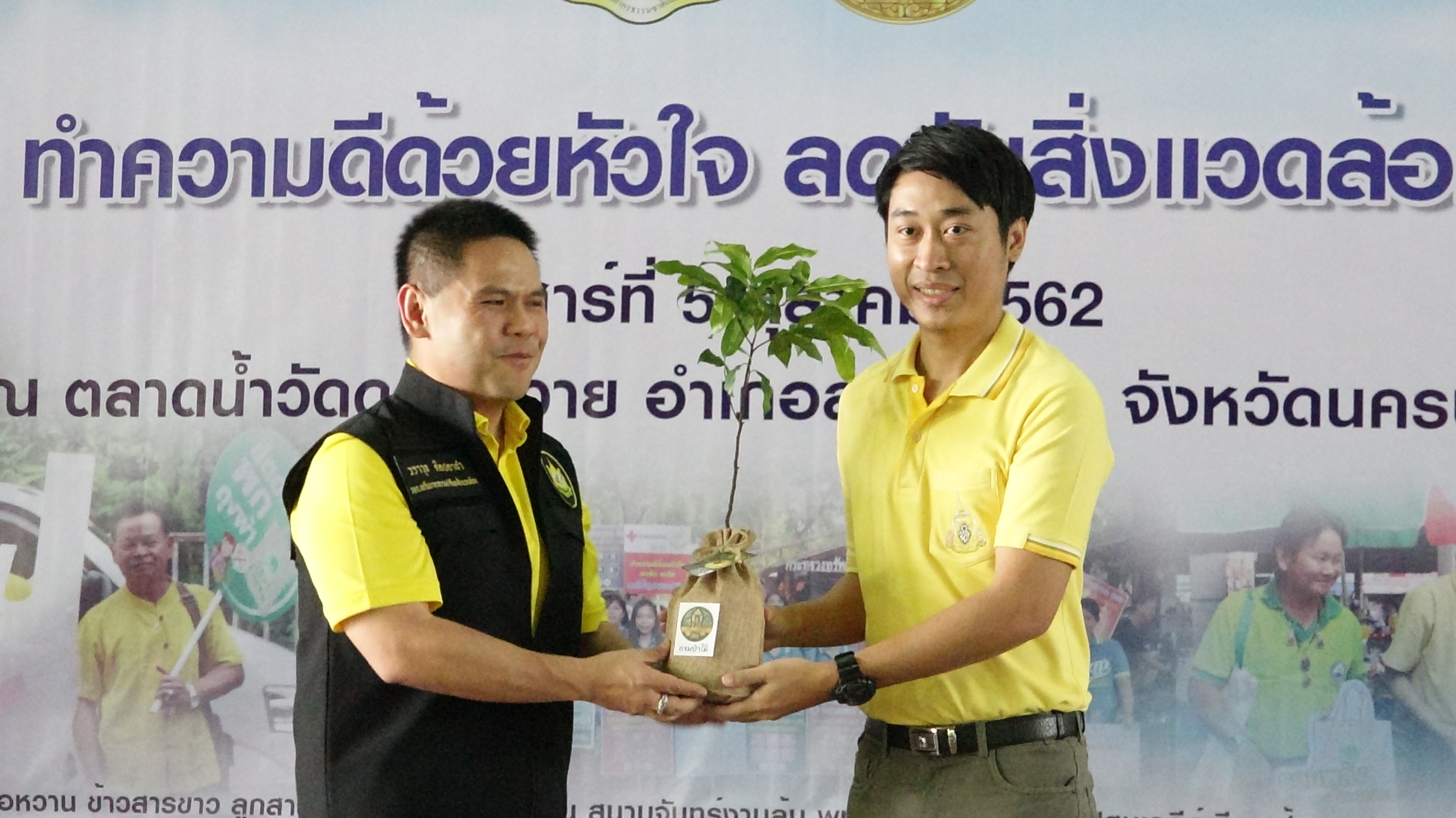 นายวราวุธ ศิลปะอาชา รัฐมนตรีว่าการกระทรวงทรัพยากรธรรมชาติและสิ่งแวดล้อม เป็นประธานเปิดโครงการกิจกรรมรณรงค์ทำความดีด้วยหัวใจ ลดภัยสิ่งแวดล้อม โดยมีนายสุพจน์ ยศสิงห์คำ รองผู้ว่าราชการจังหวัดนครปฐม กล่าวต้อนรับ และมี นายรัชฎา สุริยกุล ณ อยุธยา อธิบดีกรมส่งเสริมคุณภาพและสิ่งแวดล้อม กล่าวรายงาน ปัจจุบันโลกของเรากำลังประสบปัญหาด้านสิ่งแวดล้อมหลากหลายด้านและหนึ่งในนั้นก็คือปัญหาการจัดการขยะซึ่งถือว่าเป็นวิกฤตการณ์ระดับโลกโดยเฉพาะอย่างยิ่งการจัดการขยะพลาสติกคณะรัฐมนตรีจึงมีมติเมื่อวันที่17กรกฎาคม 2561 เห็นชอบให้ดำเนินโครงการ “ทำความดีด้วยหัวใจลดภัยสิ่งแวดล้อม” โดยมีกิจกรรม”ทำความดีด้วยหัวใจลดรับ ลดให้ ลดใช้ถุงพลาสติก” บรรจุเป็นกิจกรรมหนึ่งภายใต้ โครงการดังกล่าว ซึ่งกระทรวงทรัพยากรธรรมชาติและสิ่งแวดล้อมเห็นถึงความสำคัญในการลดปริมาณการใช้ถุงพลาสติกโดยเฉพาะในตลาตสด ซึ่งเป็นแหล่งที่มีการใช้สูงสุด 18,000 ล้านใบต่อปี จึงดำเนินกิจกรมรณรงค์ลดการใช้ถุงพลาสติกหูหิ้วในตลาตสดทั่วประเทศ มีวัตถุประสงค์ เพื่อส่งเสริมให้เกิดการบูรณาการความร่วมมือระหว่าง กระทรวงทรัพยากรธรรมชาติและสิ่งแวล้อม และหน่วยงานที่เกี่ยวข้อง โดยผ่านกลไก การดำเนินงานของสำนักงานสิ่งแวดล้อมภาค สำนักงานทรัพยากรธรรมชาติและสิ่งแวดล้อมจังหวัด กรมส่งเสริมการปกครองท้องถิ่น และอาสาสมัครพิทักษ์ทรัพยากรธรรมชาติและสิ่งแวดล้อมหมู่บ้าน โดยเริ่มดำเนินกิจกรรมพร้อมกันทั่วประเทศ สามารถลดปริมาณการใช้ถุงพลาสติกหูหิ้วในตลาดสดได้กว่า 900 ล้านใบ กิจกรรมภายในงานประกอบด้วย