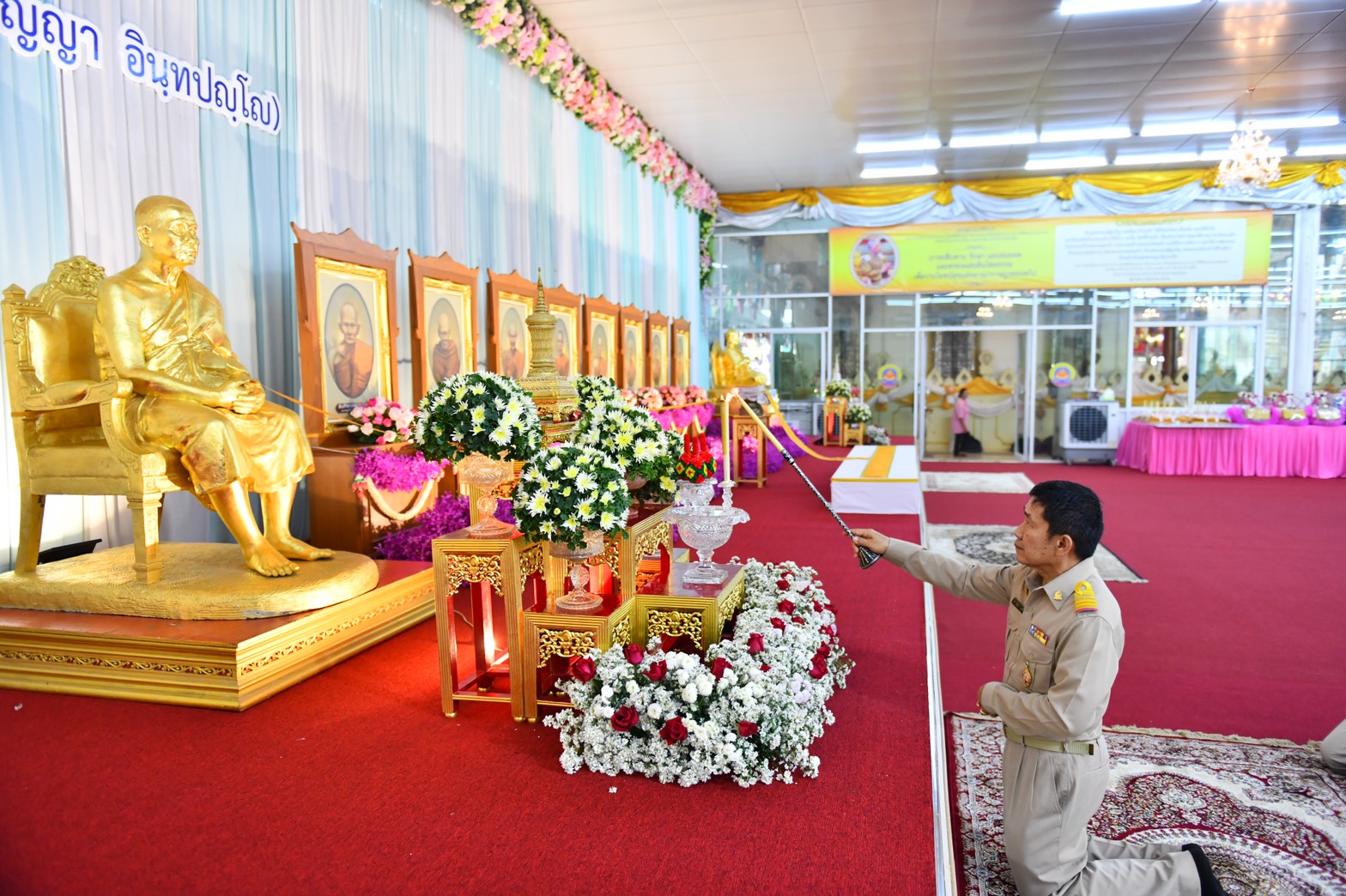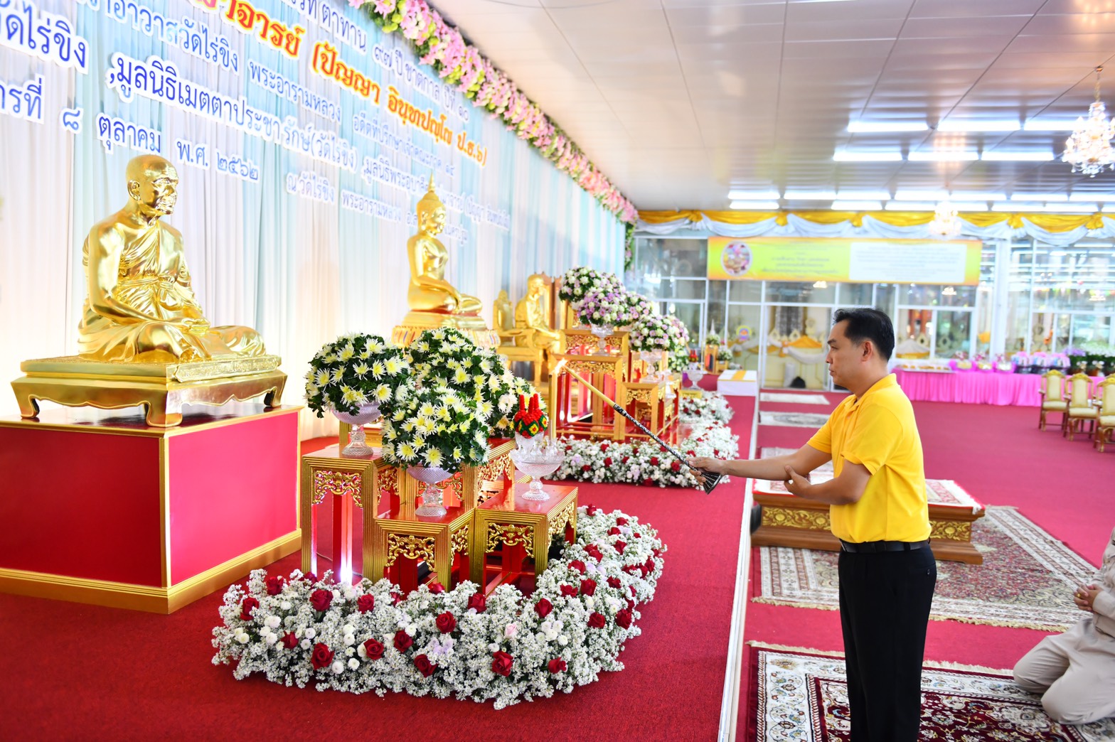 นายวิวัฒน์ ชูศรีจันทร์ ผอ.โรงเรียนวัดไร่ขิงวิทยา จุดธูปเทียนเครื่องทองน้อย หน้ารูปเหมือนสมเด็จพระมหาธีราจารย์ อดีตเจ้าคณะหนกลาง ร่วมด้วย หน่วยงานภาครัฐ ภาคเอกชน ร่วมพิธีจำนวนมาก ซึ่งได้ ซึ่งคณะสงฆ์วัดไร่ขิง เจริญพระพุทธมนต์ ทอดผ้าบังสุกุล และทักษิณานุปทาน เพื่ออุทิศส่วนบุญกุศล แสดงกตัญูตาและระลึกถึงคุณงามความดีที่ อดีตเจ้าอาวาส บูรพาจารย์และผู้ทำคุณประโยชน์ต่อพระพุทธศาสนาที่ได้สร้างไว้ให้ชนรุ่นหลังได้สืบทอดไว้มากมาย