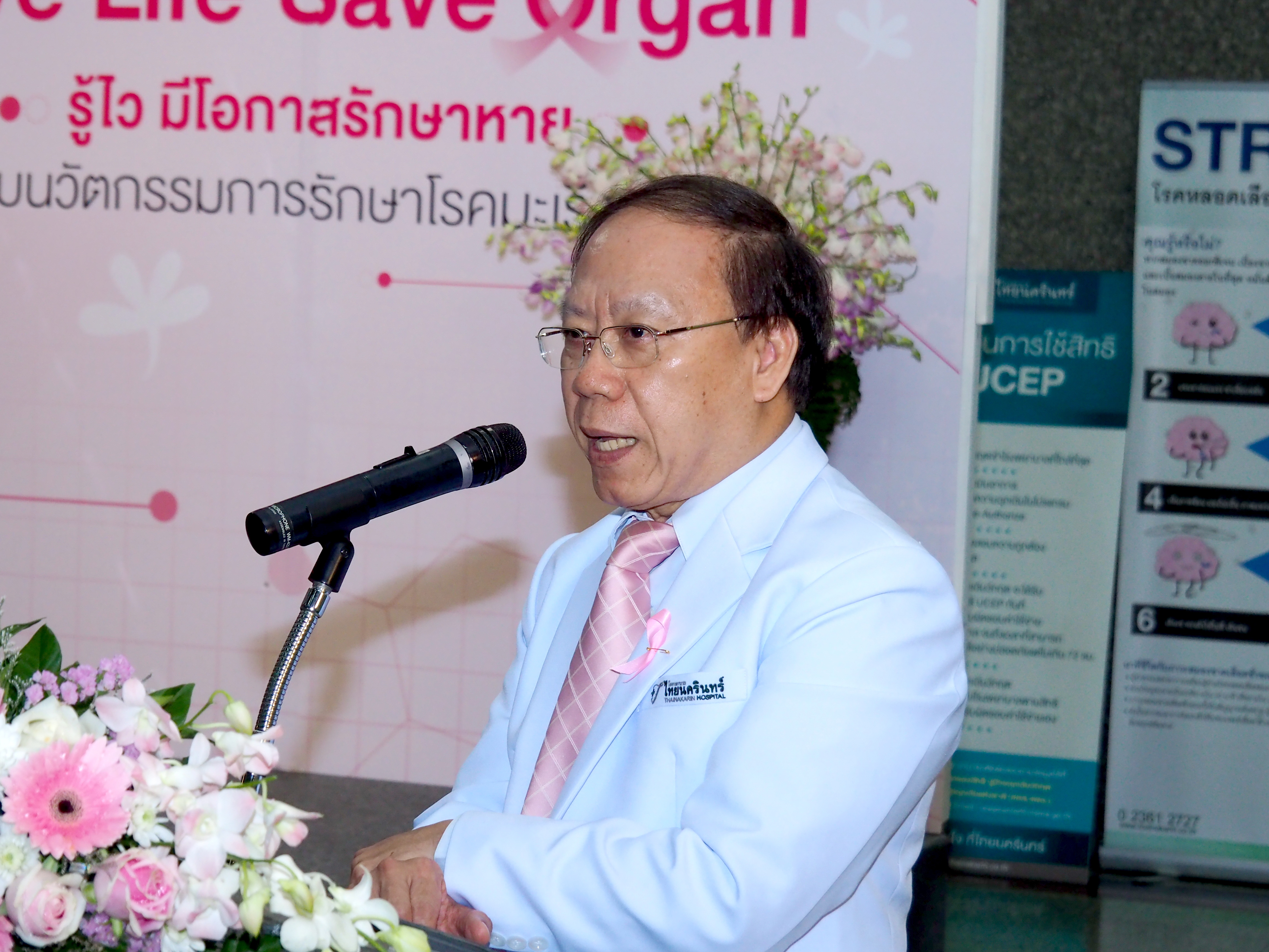 ***** นายแพทย์อาคม เชียรศิลป์ ผู้อำนวยการศูนย์โรคมะเร็งโฮลิสติค โรงพยาบาลไทยนครินทร์ เป็นประธานเปิดงานการจัดกิจกรรมวันมะเร็งเต้านมโลก ที่ชั้น1โรงพยาบาลไทยนครินทร์ ถ.บางนา-ตราด เขตบางนา กรุงเทพฯ