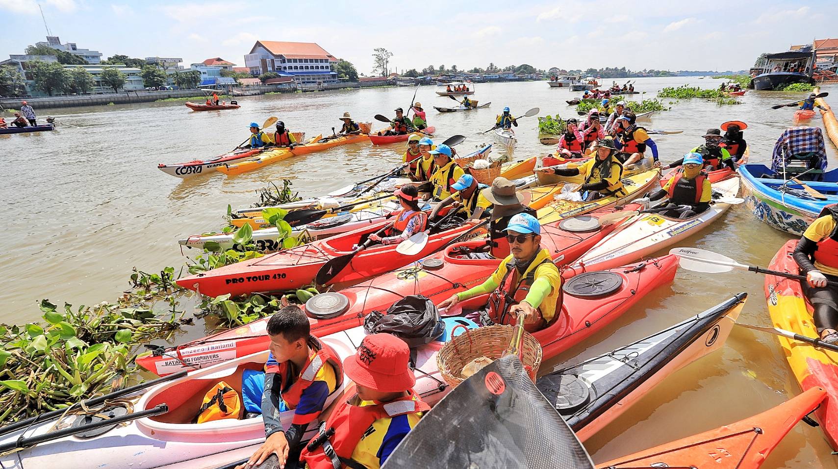จังหวัดปทุมธานี ร่วมกับมหาวิทยาลัยธรรมศาสตร์ จัดกิจกรรม พายเรือเพื่อเจ้าพระยา เก็บขยะจากปากน้ำโพถึงสมุทรปราการ