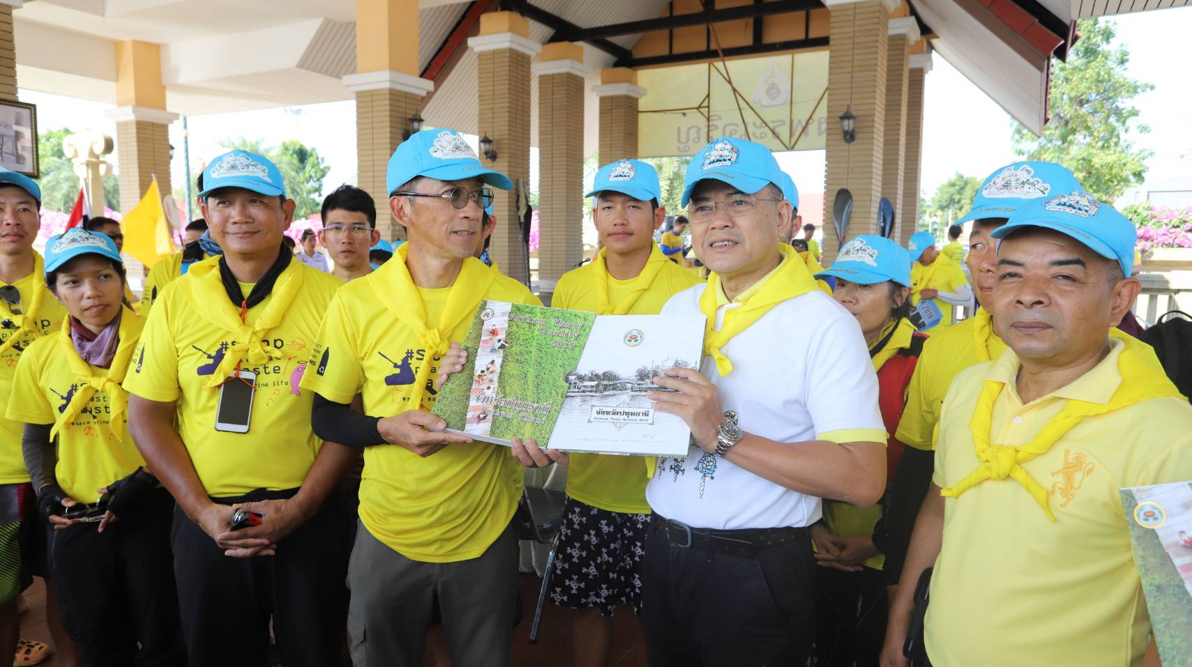 เมื่อเวลา 9.30 น.วันที่ 8ต.ค. 62 ที่ บริเวณสวนเทพปทุมเฉลิมพระเกียรติ อำเภอเมือง จังหวัดปทุมธานี ดร.พินิจ บุญเลิศ ผู้ว่าราชการปทุมธานี เป็นประธานในพิธี เปิดกิจกรรม พายเรือเพื่อเจ้าพระยา เก็บขยะจากปากน้ำโพถึงสมุทรปราการ โดยมี นายอาวุธ วิเชียรฉาย นายอำเภอเมืองปทุมธานี หัวหน้าส่วนราชการ จิตอาสาพระราชทาน 904 วปร.นักศึกษามหาวิทยาลัยธรรมศาสตร์ และคณะนักพายเรือ รวมกว่า 300 คน กล่าวคำปฏิญาณ เราทำความดีด้วยหัวใจ 3 ครั้ง ก่อนแยกย้ายกันทำความสะอาดบริเวณริมแม่น้ำเจ้าพระยาเขตอำเภอเมืองปทุมธานี และร่วมกันพายเรือเก็บขยะในแม่น้ำเจ้าพระยา นำโดย ผู้ช่วยศาสตราจารย์ ดร.ปริญญา เทวานฤมิตรกุล รองอธิการบดีฝ่ายความยังยืนและบริหารศูนย์รังสิต มหาวิทยาลัยธรรมศาสตร์ กิจกรรมนี้ซึ่งเป็นกิจกรรมที่มีความสำคัญเป็นอย่างยิ่งในการอนุรักษ์แม่น้ำเจ้าพระยา โดยมีเป้าหมายไม่เพียงแต่เก็บขยะในแม่น้ำเจ้าพระยา แต่ยังมีเป้าหมายที่สำคัญยิ่งกว่าคือ การรณรงค์ให้คนไทยที่มีอยู่ริมแม่น้ำเจ้าพระยา ทั้ง 10 จังหวัด โดยมีนครสวรรค์ อุทัยธานี ชัยนาท สิงห์บุรี อ่างทอง พระนครศรีอยุธยา ปทุมธานี นนทบุรี กรุงเทพมหานคร สมุทรปราการ ตลอดระยะ 400 กิโลเมตร ได้ร่วมกันอนุรักษ์แม่น้ำเจ้าพระยา เลิกปล่อยน้ำเสียและเลิกทิ้งขยะลงแม่น้ำ