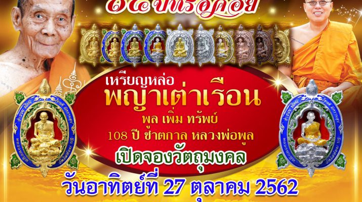 นครปฐม วัดไผ่ล้อม เปิด40ศูนย์ให้จองวัตถุมงคล เหรียญหล่อพญาเต่าเรือน “พูล เพิ่ม ทรัพย์” ในวันอาทิตย์ ที่ 27 ตุลาคม 2562ที่จะถึงนี้