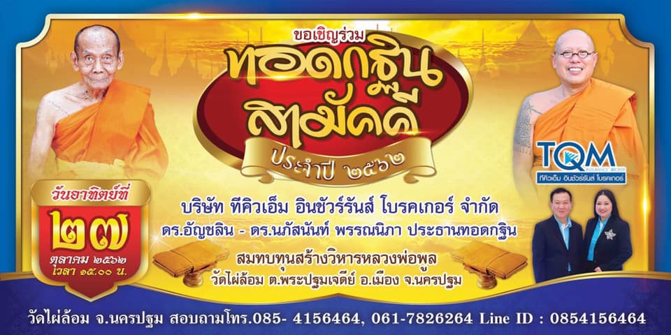 นครปฐม วัดไผ่ล้อม ขอเชิญร่วมทอดกฐินสามัคคี27 ตุลานี้เวลาบ่ายสามโมงตรง