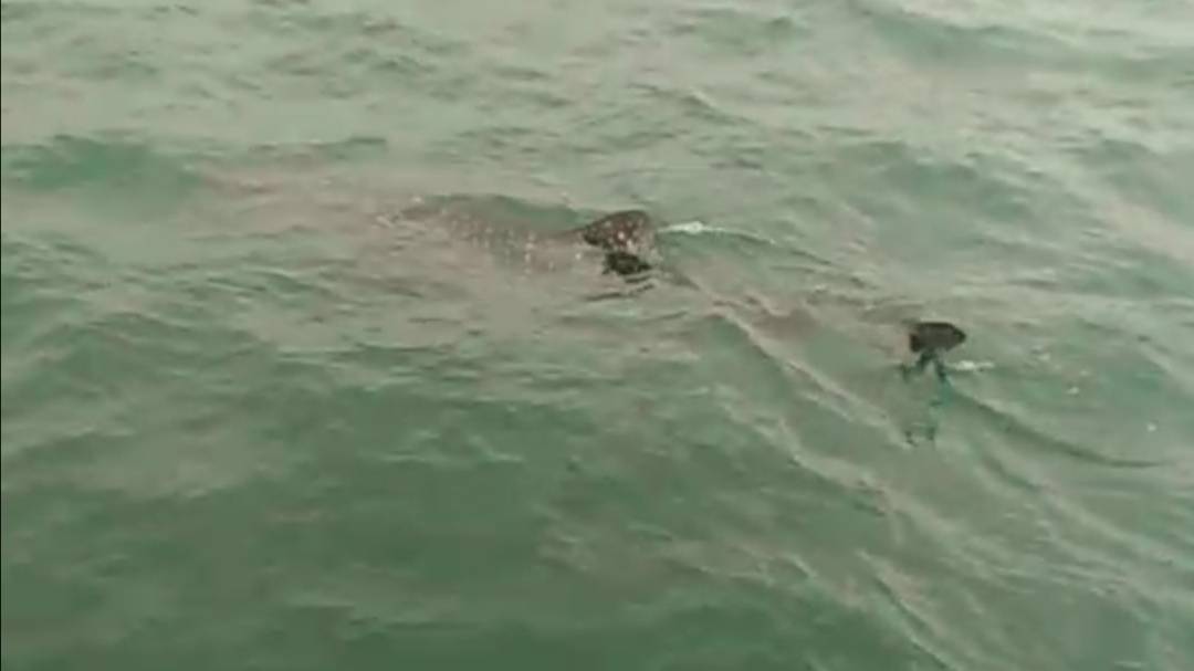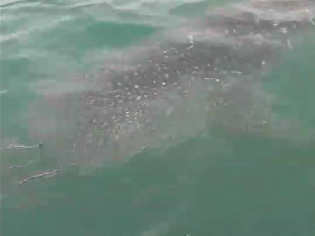 ฉลามวาฬพร้อมฝูงปลาบริวาร แหวกว่ายทะเลห้วยยาง ให้นักท่องเที่ยวยลโฉม ห่างฝั่ง 600 เมตร