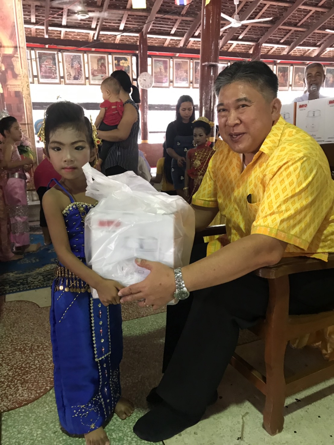 โดยมีพระครูกาญจนาคีรีรักษ์ เป็นประธานฝ่ายสงฆ์ มีผู้ใหญ่บ้านองค์กรปกครองส่วนท้องถิ่นพุทธศาสนิกชนมาร่วมทำบุญเป็นจำนวนมาก