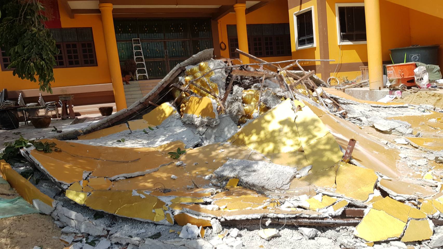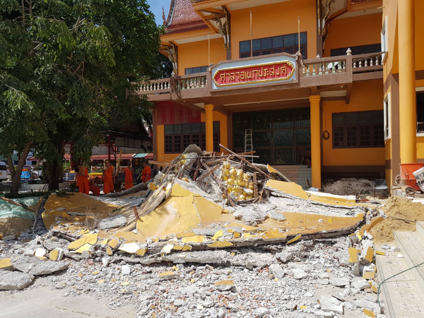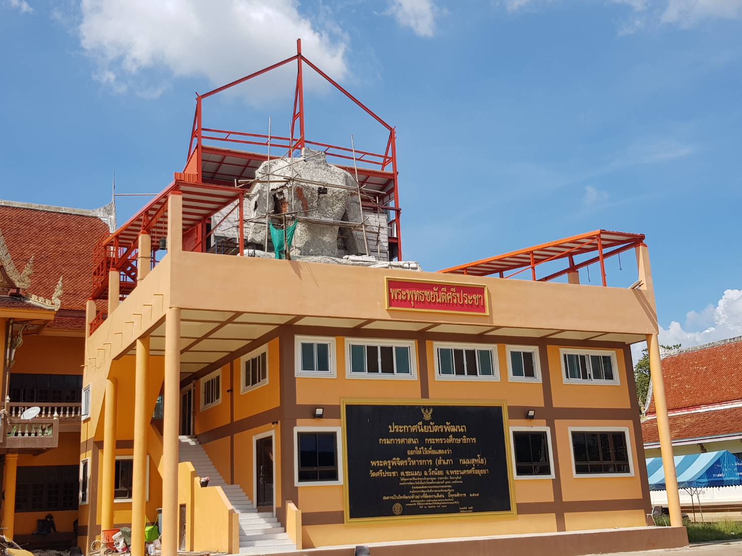 เปรียญที่สร้างขึ้นใหม่ ในช่วงย้ายเศียรได้แต่เกิดการผิดพลาดทำให้เศียรพระถล่มล้มลงมา