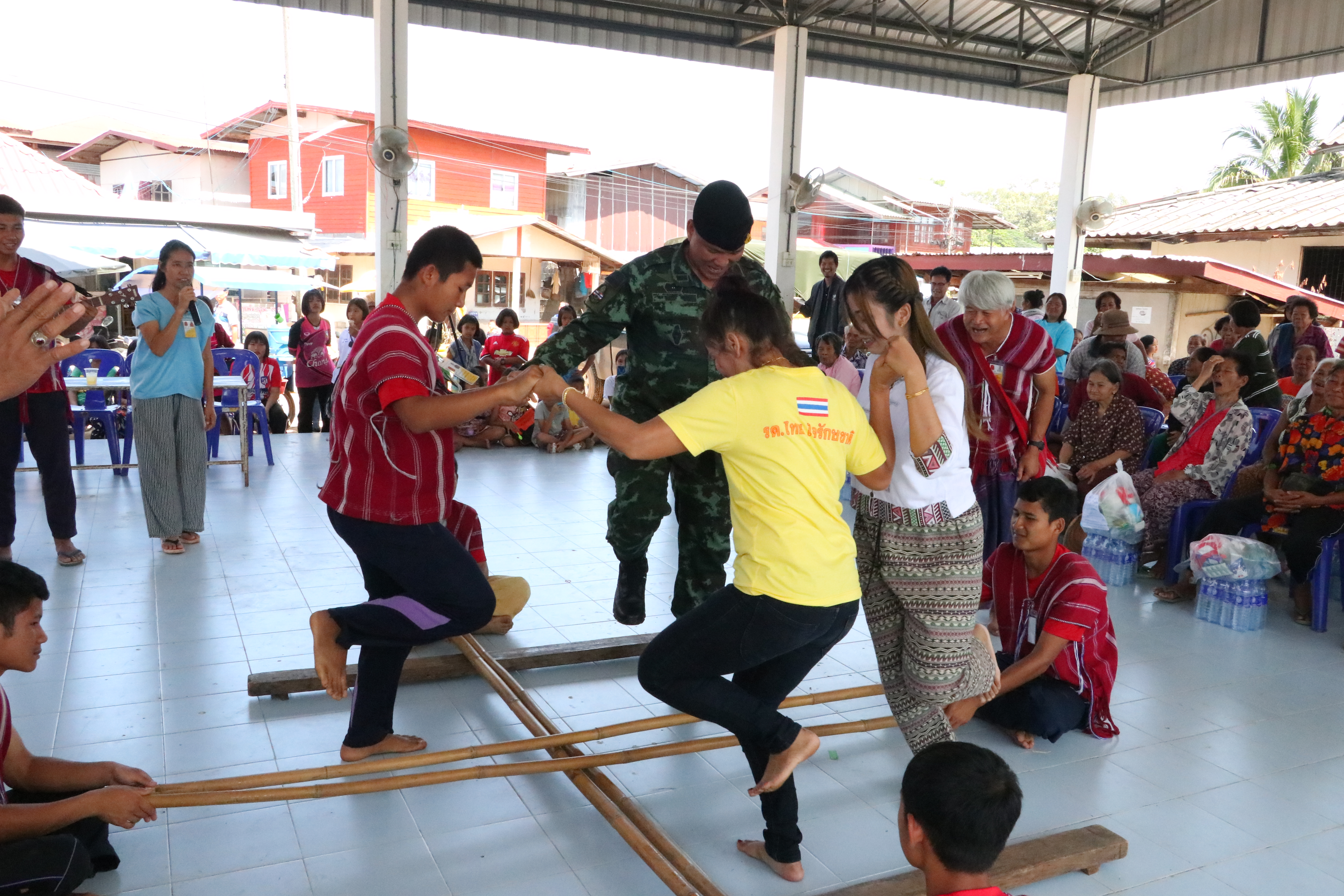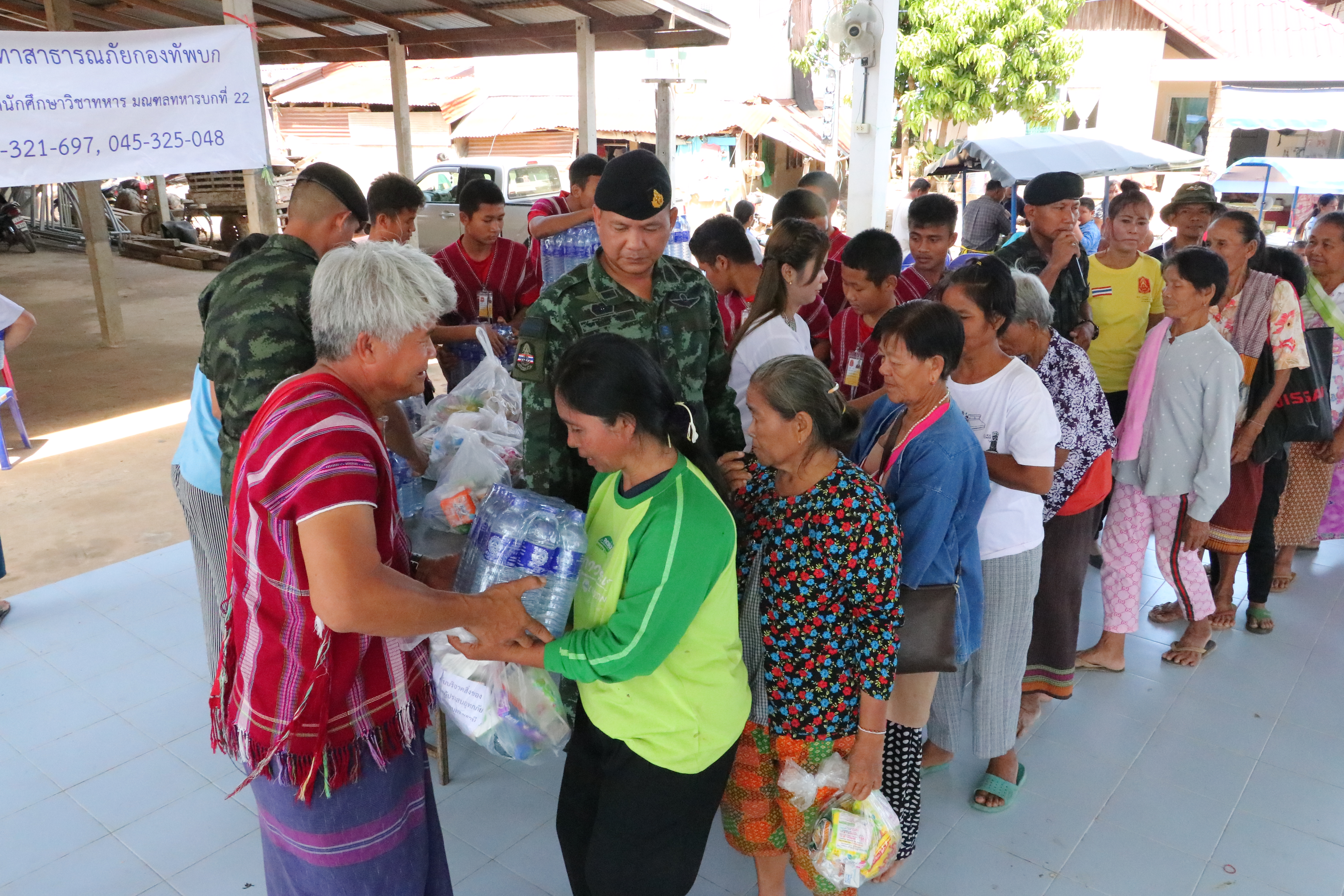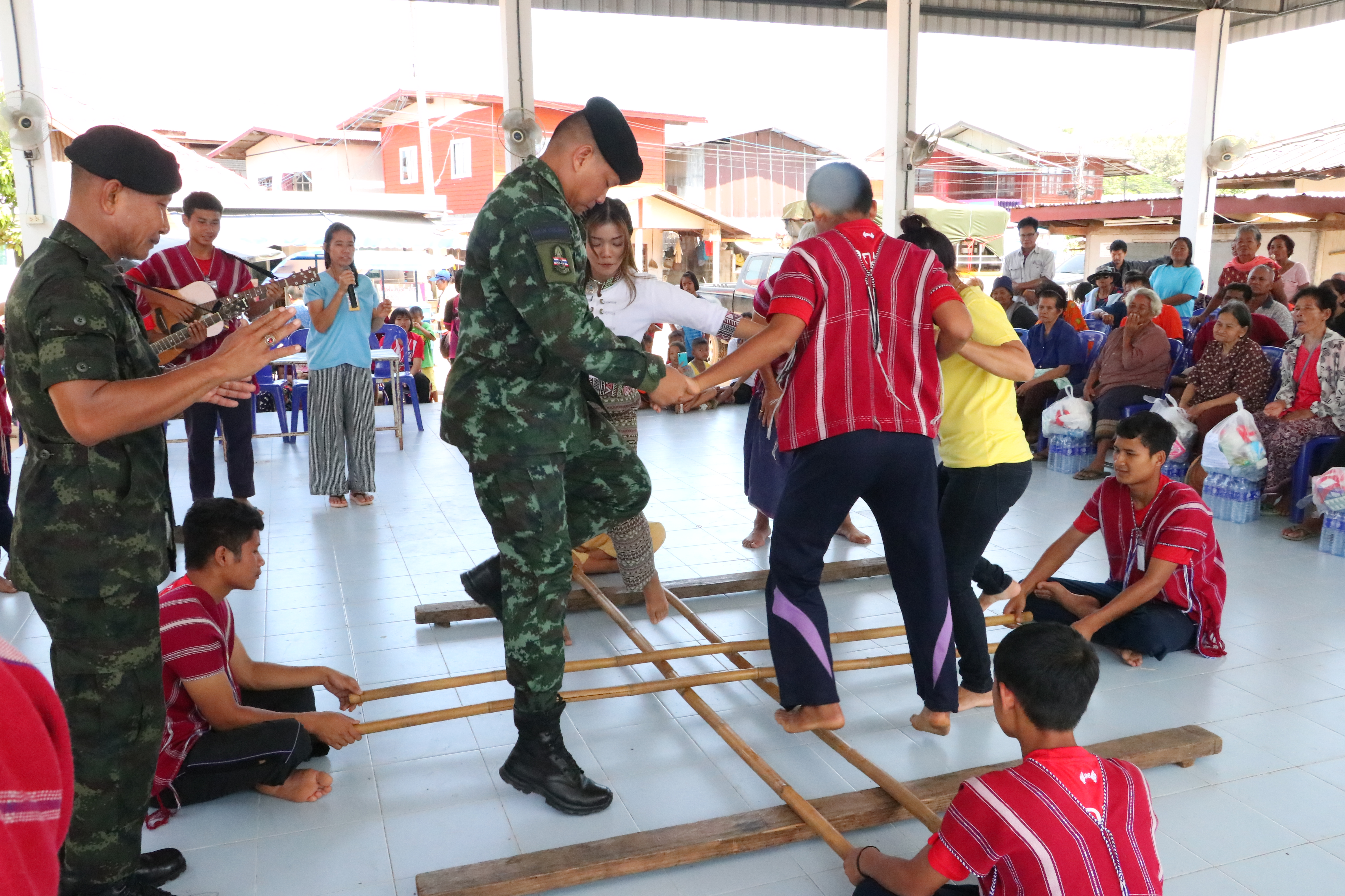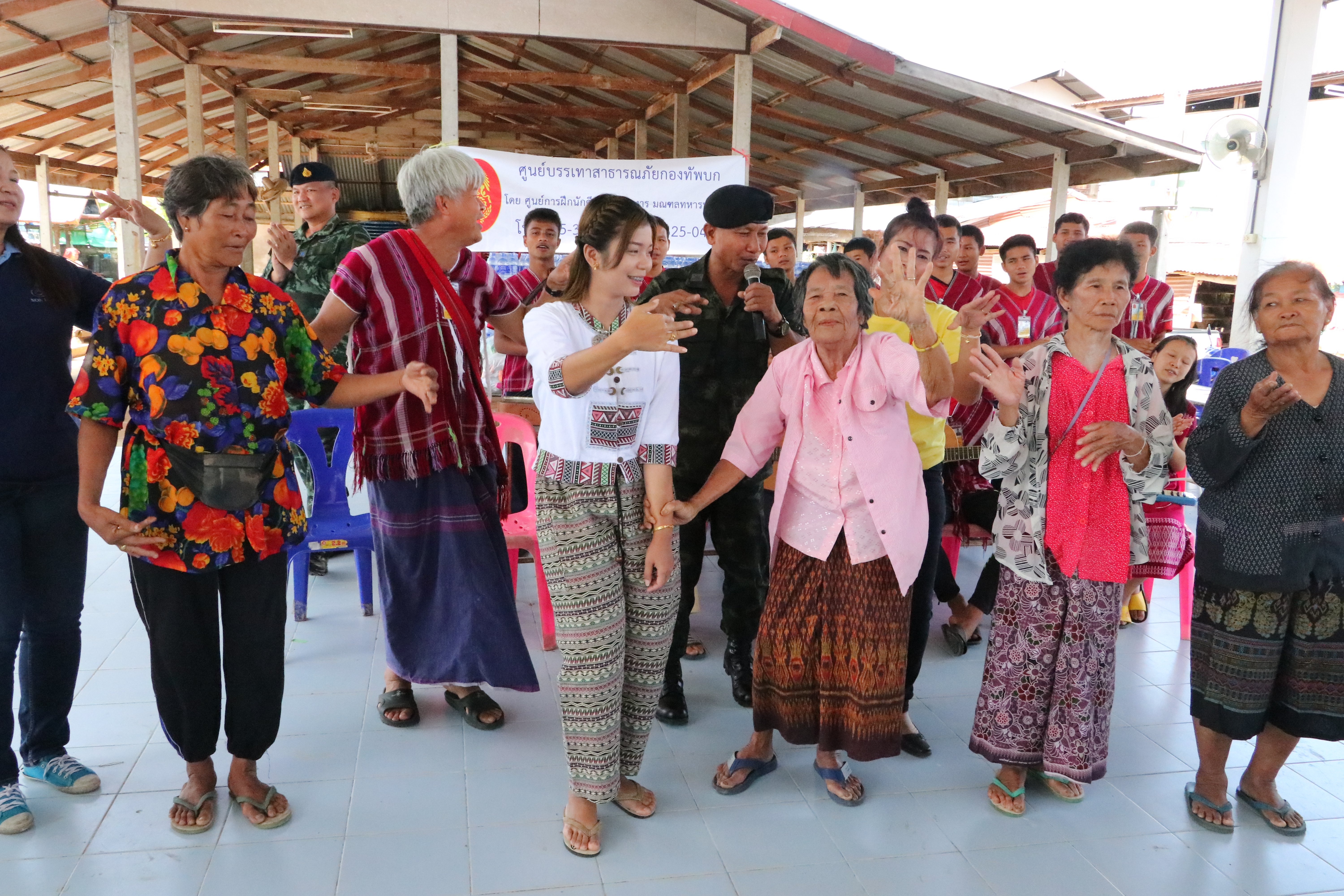 ที่ ศาลากลางบ้านหนองกินเพลหมู่ 3 ต.หนองกินเพล อ.วารินชำราบ จ.อุบลราชธานี พ.อ.กล้าณรงค์ วิสุตกุล ผู้บังคับศูนย์การฝึกนักศึกษาวิชาทหาร มณฑลทหารบกที่ 22 อุบลราชธานี พร้อมด้วย ครูเจต บุญเป็ง โค้ชฟุตบอลเด็กชนเผ่าปกากะญอ นำเยาวชนชาวกระเหรี่ยง และทหาร มอบความความสุข สร้างรอยยิ้ม คลายเครียด ด้วยการ นำการแสดง ดนตรีพื้นบ้าน ระบำไม้ไผ่ชาวกระเหรี่ยง ร้องเพลง เต้นรำ มอบเครื่องอุปโภค บริโภค ให้กับ ชาวผู้ประสบภัย ในพื้นที่ พ.อ.กล้าณรงค์ วิสุตกุล ผู้บังคับศูนย์การฝึกนักศึกษาวิชาทหาร มณฑลทหารบกที่ 22 อุบลราชธานี กล่าวว่า กิจกรรมในครั้งนี้ เป็นอีกหนึ่งกิจกรรมตามนโยบายของกองทัพบกในการช่วยเหลือพี่น้องประชาชนที่ประสบอุทกภัยให้มีขวัญกำลังใจในช่วงของการฟื้นฟู ซึ่ง พล.ต.รณกร ปานกุล ผู้บัญชาการมณฑลทหารบกที่ 22 ได้มอบหมายให้ตนเป็นผู้ดำเนินการ โดยจะเป็นกิจกรรมที่ชาวกระเหรี่ยง เผ่าปกากะญอ จาก จ.เชียงใหม่ นำโดย ครูเจต บุญเป็ง ครูดอยผู้เสียสละ โค้ชฟุตบอลเด็กชนเผ่าปกากะญอ ได้นำเด็ก เยาวชน มาสร้างความสุขให้กับชาวบ้านผู้ประสบภัยในพื้นที่ เป็นการสร้างขวัญ กำลังใจ หลังจากที่สถานการณ์น้ำท่วมได้คลี่คลายลง ซึ่งได้รับความบันเทิง อิ่มอกอิ่มใจ ด้วยน้ำใจไมตรี มาเล่นดนตรี และการแสดงพื้นบ้าน สร้างความสนุกสนานและสร้างกำลังใจให้กับชาวบ้านเป็นอย่างดี