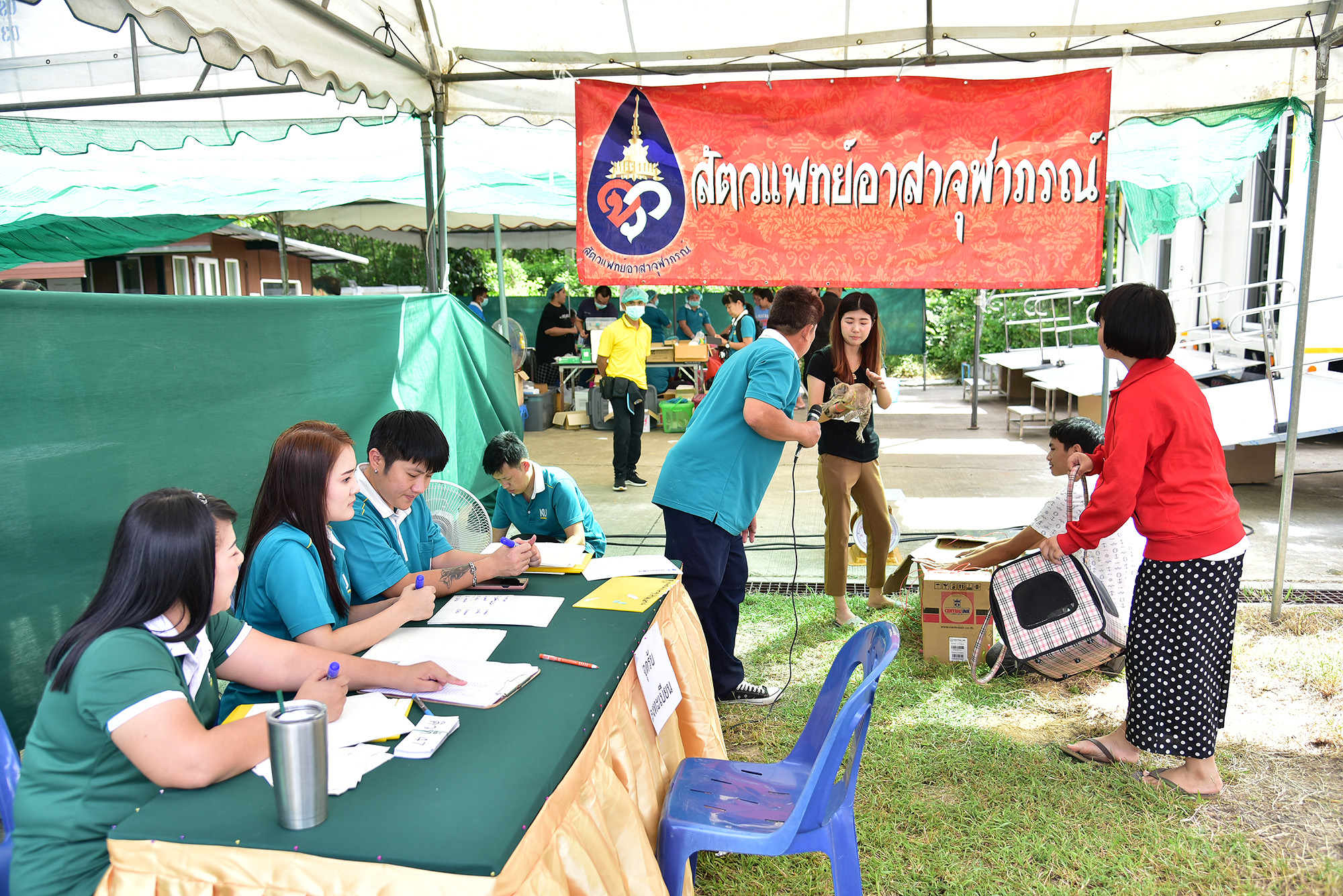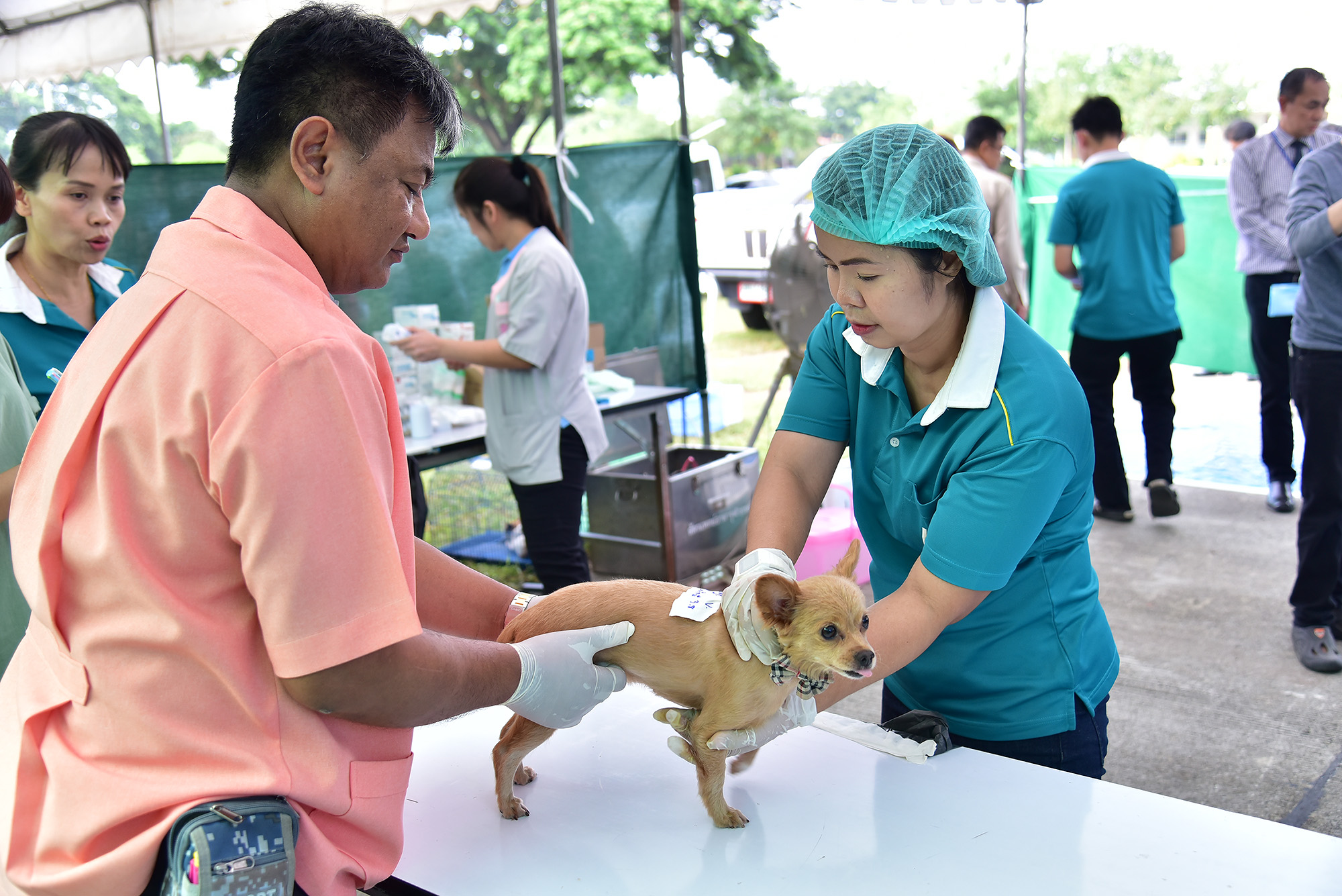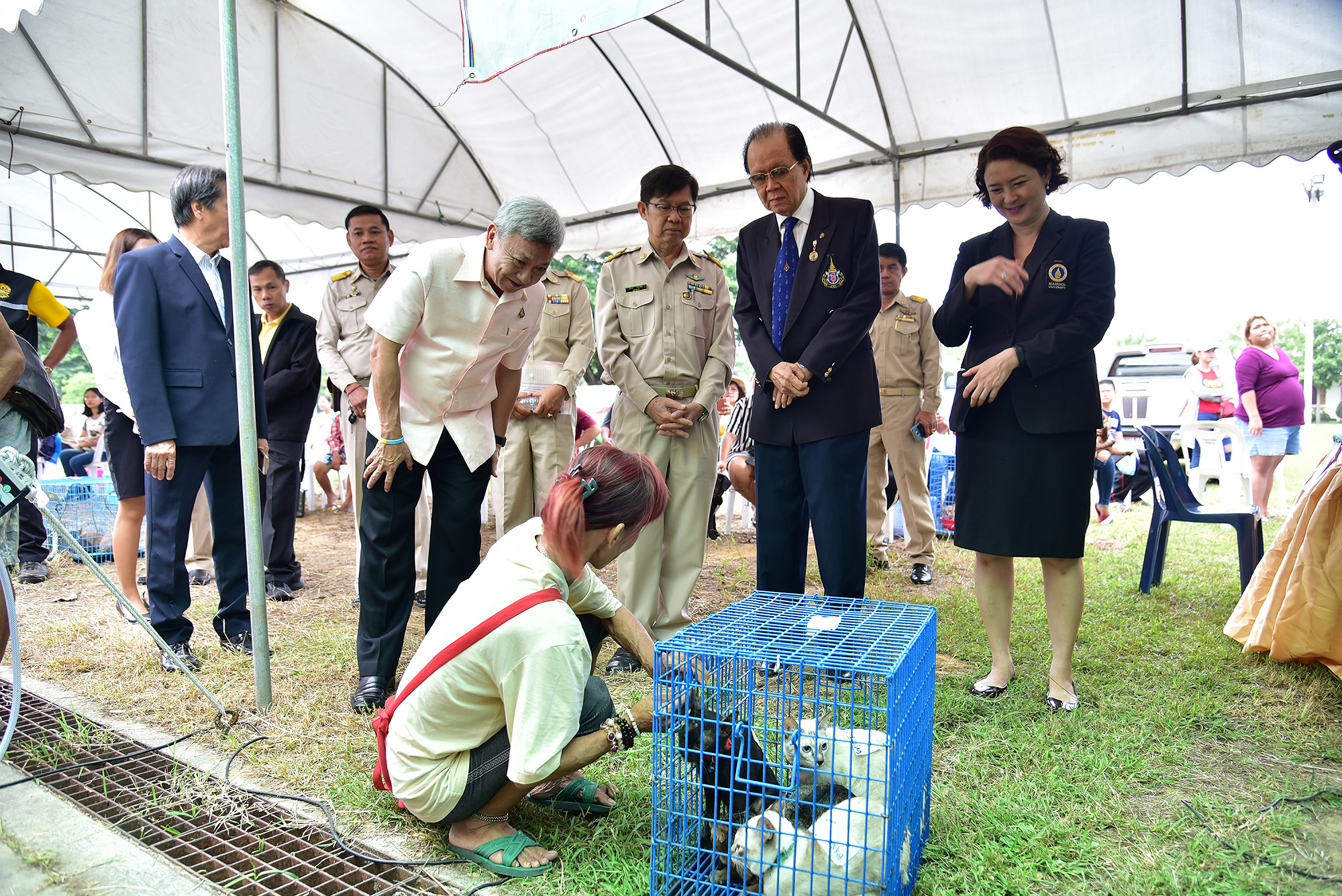 จากนั้น นายอนุรักษ์ ธนานันท์ ตรวจเยี่ยมการปฏิบัติงานของหน่วยสัตวแพทย์อาสาจุฬาภรณ์ โดยมีการฉีดวัคซีนป้องกันโรคพิษสุนัขบ้า การรักษาโรค และการทำหมันสุนัขและแมว ซึ่งมีเจ้าของนำสัตว์เลี้ยงเข้ารับบริการเป็นจำนวนมาก