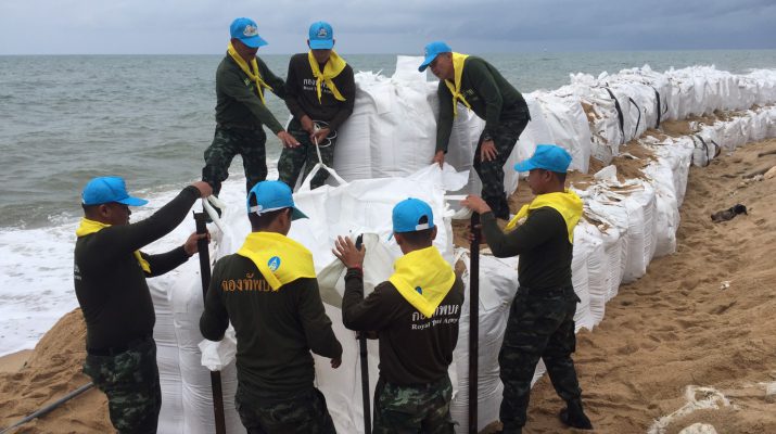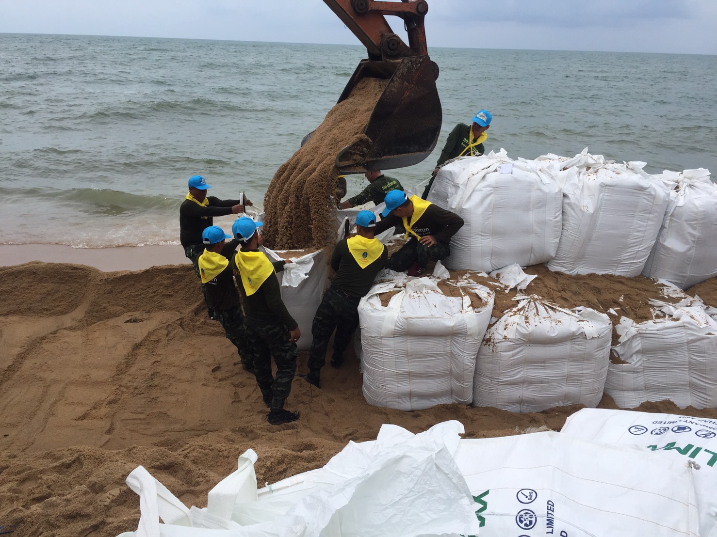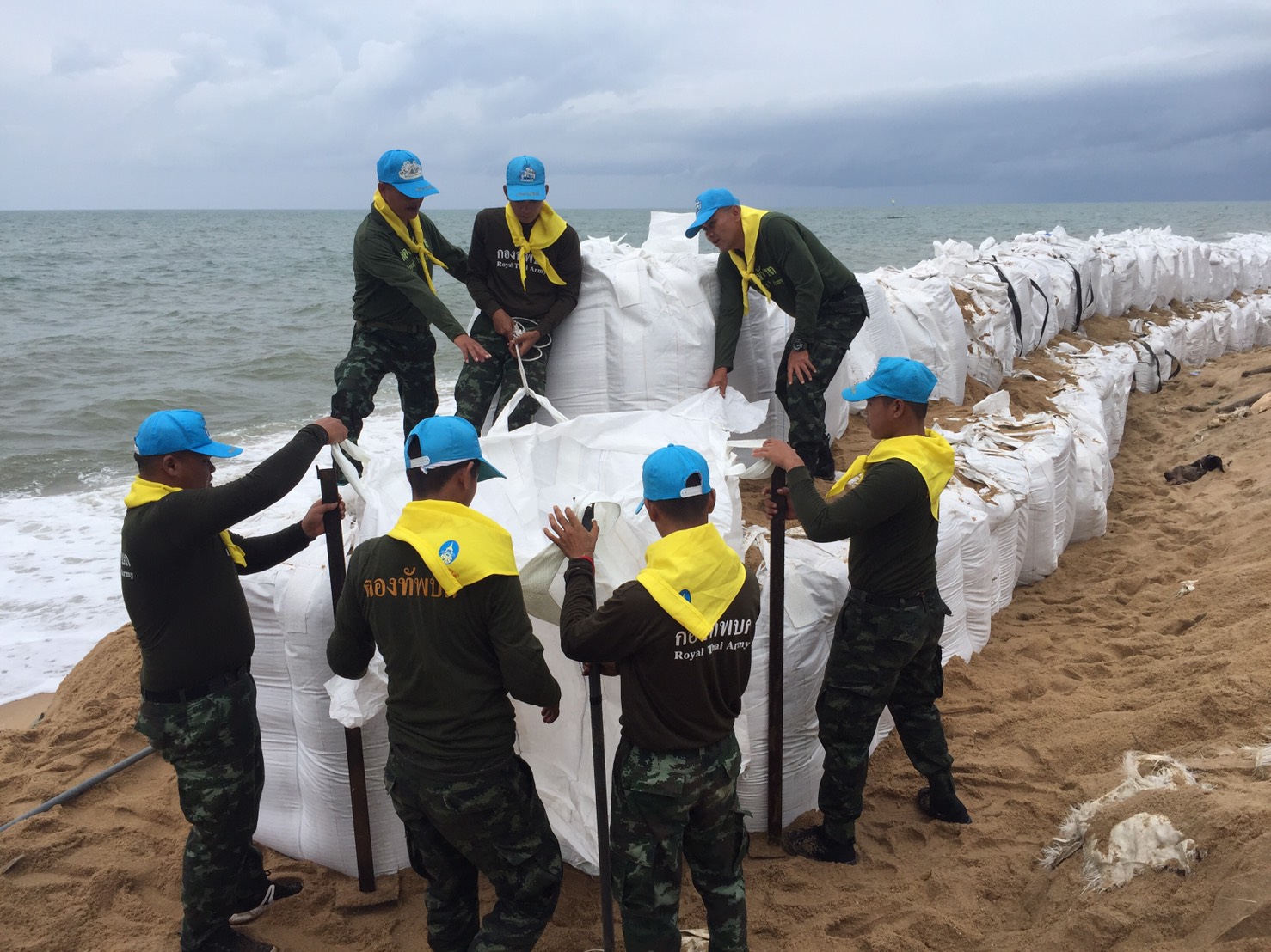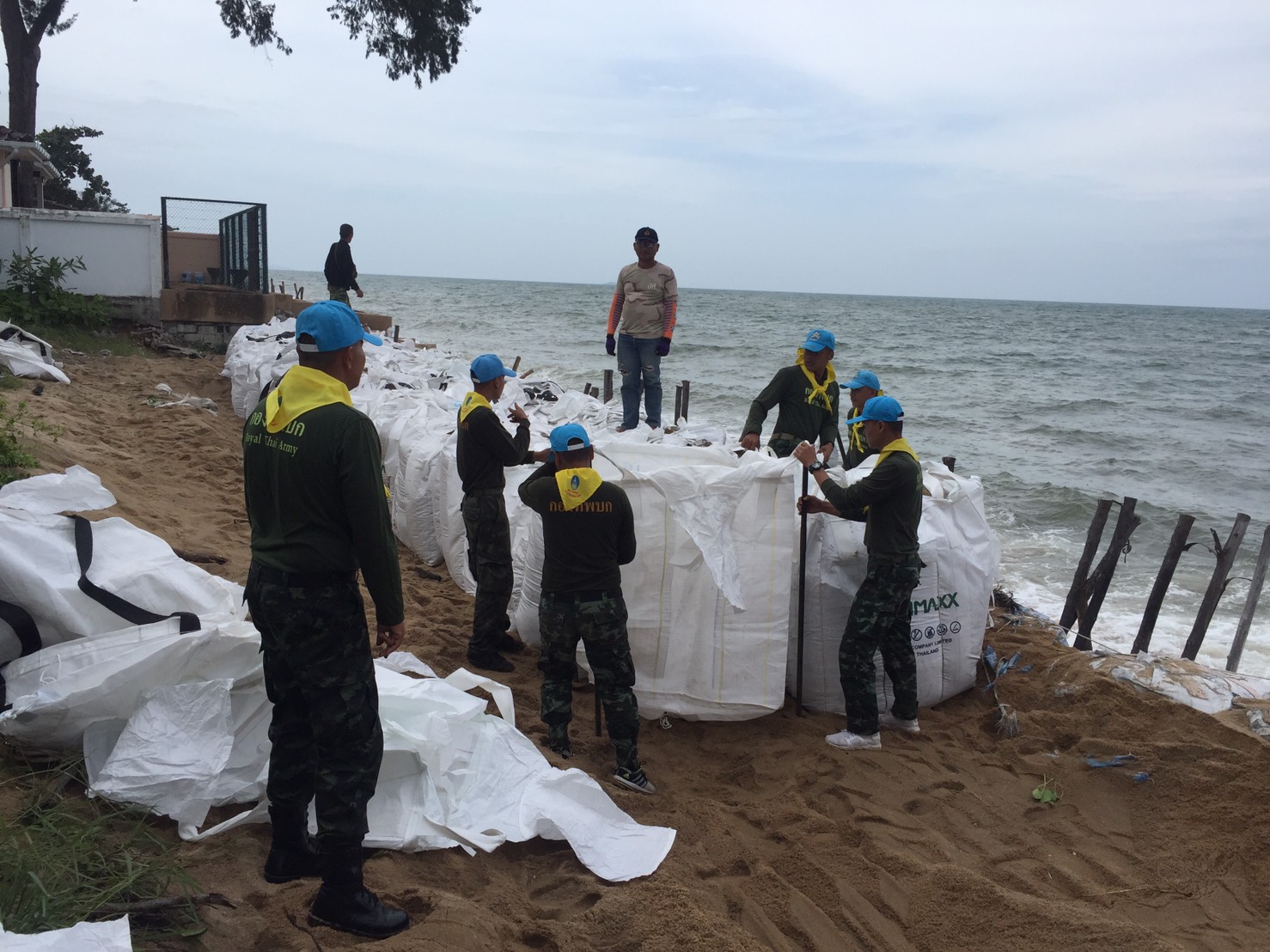 ประจวบคีรีขันธ์ ทหารกองกำลังสุรสีห์ เข้าช่วยอำเภอทับสะแก ในการเปลี่ยนถุงบิ้กแบ็คสีดำเป็นสีขาว เพื่อป้องกันคลื่นลมกัดเซาะชายฝั่ง ในช่วงฤดูมรสุมซึ่งจะส่งผลกระทบต่อบ้านเรือนและทรัพย์สินของชาวบ้านที่อาศัยอยู่ริมชายหาดได้รับความเสียหายได้ ซึ่งล่าสุดมีความคืบหน้าไปมากแล้ว