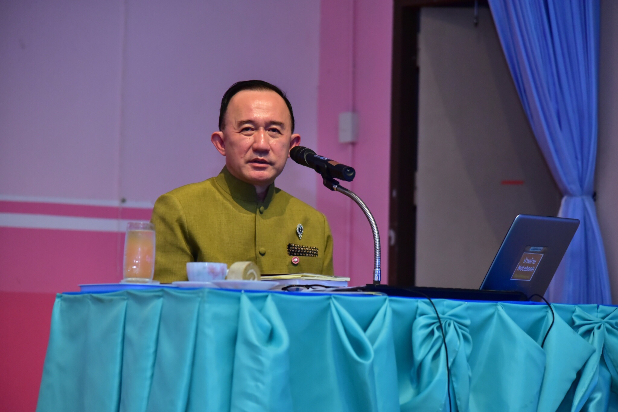 “สุภาษิตไทย ‘สำเนียงส่อภาษา กิริยาส่อสกุล’ ไม่ได้หมายความว่าเป็นภาษาของท้องถิ่นใด ชาติใด ตระกูลวงศ์ใด เป็นคนสำคัญหรือไม่ ครอบครัวเล็กหรือใหญ่ ยากดีมีจนคือคนเหมือนกัน ฯลฯ แต่มีความหมายที่ลึกซึ้งกว่านั้นมาก กล่าวคือ “สำเนียงส่อภาษา” มีความหมายว่า การพูดด้วยวาจาที่สุภาพเรียบร้อย น้ำเสียงน่าฟัง น่าสนทนาด้วย จะอยู่ในสังคมใดก็เป็นที่นิยม เป็นที่เอ็นดูรักใคร่ แม้การกล่าวสุนทรพจน์ก็กล่าวด้วยความสำรวม ใช้ปัญญานำทาง ชวนติดตามฟังตั้งแต่ปฐมบทจนจบ แต่ถ้าเป็นการพูดด้วยวาจาที่ไม่สุภาพ เห่อเหิม คุยโวโอ้อวด ใส่ร้ายป้ายสีบุคคลอื่น ปราศจากเหตุผล ว่ากล่าวขนบธรรมเนียมประเพณีของชาติ ลบหลู่บุพการีชน สำคัญตนผิด รวมถึงการใช้ถ้อยคำ ซึ่งหมายถึงการใช้คำศัพท์ที่ไม่น่าฟัง อวดรู้อวดเบ่ง อวดมั่งอวดมี ทำให้คนที่ได้ยินเสียงแต่ไม่ทันเห็นตัวยังเกิดความรู้สึกที่ไม่ดีและไม่อยากพบเจอตัวจริง จึงกล่าวได้ว่า การพูดด้วยภาษาที่น่าฟัง มีความเหมาะสม ย่อมเป็นที่ชื่นชอบของผู้คนทั่วไป ส่วน “กิริยาส่อสกุล” มีความหมายว่า อากัปกิริยาท่าทางการแสดงออก คนหลงลืมตัว เป็นประเภทกิ้งก่าได้ทอง เป็นอึ่งอ่างพองลมกระทั่งตัวระเบิด เป็นคางคกขึ้นวอ ย่อมอธิบายให้ผู้พบเห็นหรือสัมผัสรู้ได้ว่า บุคคลผู้นั้นได้รับการอบรมสั่งสอนมาอย่างไร หรือจากใคร กิริยาที่ปรากฏ ถ้อยคำวาจาที่เลือกใช้ จะช่วยนำสิ่งที่ดีสู่ชีวิต เสริมสร้างคุณค่าของการดำรงชีวิตคุณภาพตราบจนวันสุดท้าย ลูกหลานเยาวชนจึงต้องมีความรอบคอบ มีความสุขุมคัมภีรภาพ ในการครองตน ครองคน และครองงาน ต่อการดำรงสัมมาชีพใดก็ตาม รวมถึงการรับราชการ ประการสำคัญ คือ จะไม่ทุจริตคดโกง ไม่กล่าวคำเท็จ ไม่รับสินบาทคาดสินบน ไม่ประจบสอพลอเพื่อให้ตนได้ดีแล้วทำลายล้างผู้อื่น อันถือเป็นบาปมหันต์และความผิดใหญ่หลวงที่ข้าราชการพึงสำนึกตลอดเวลา”